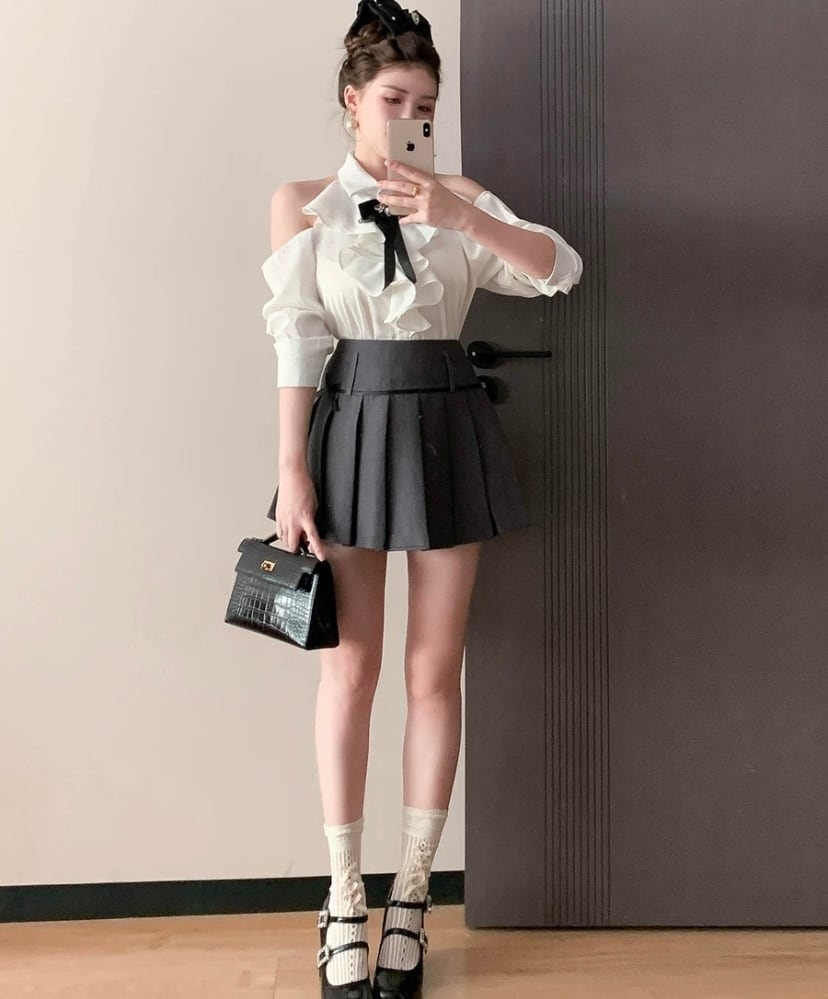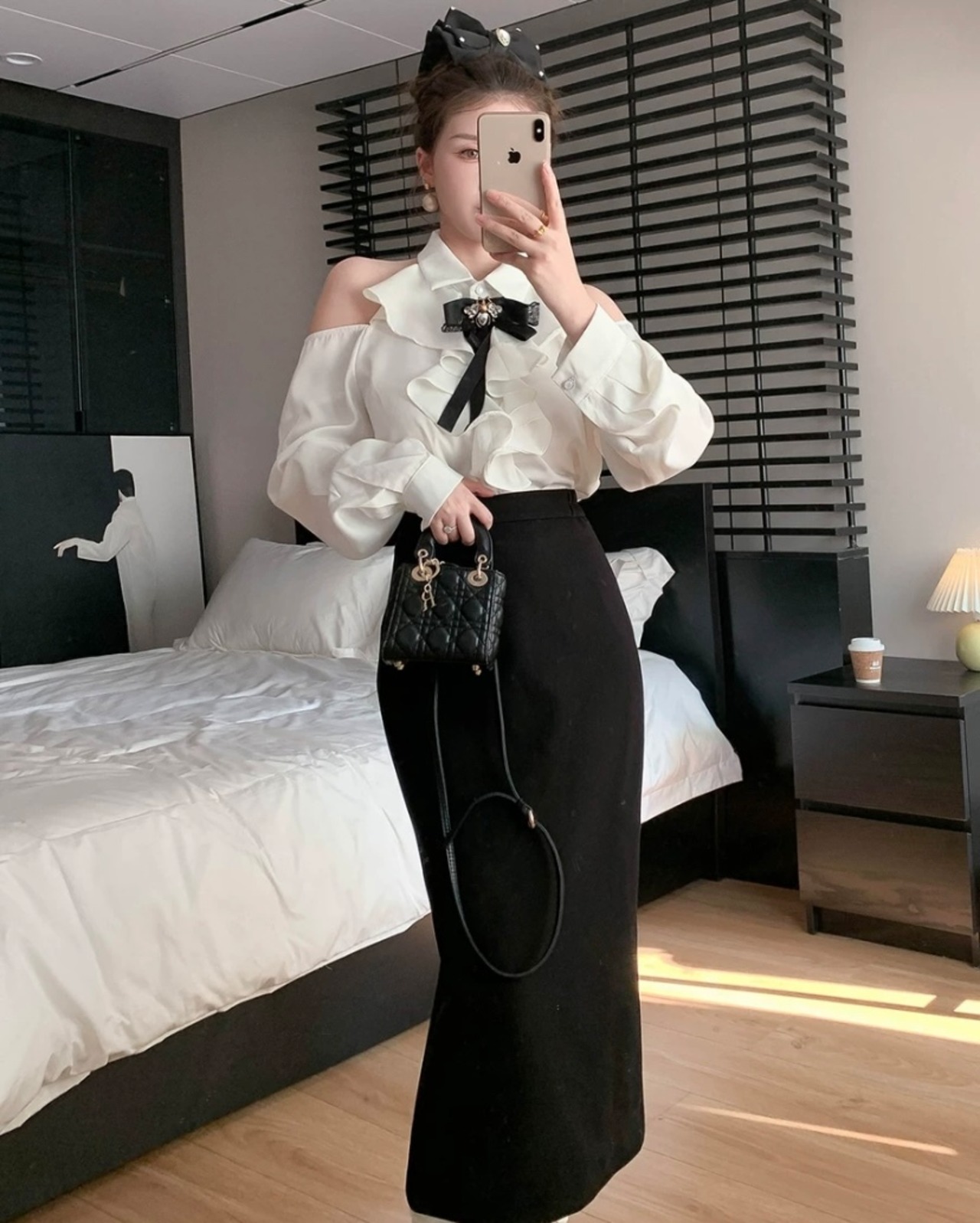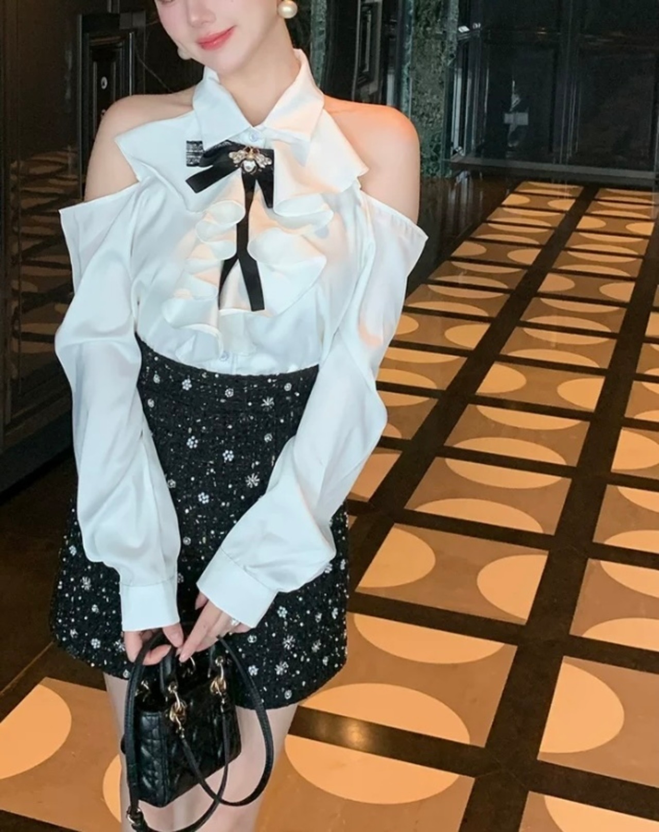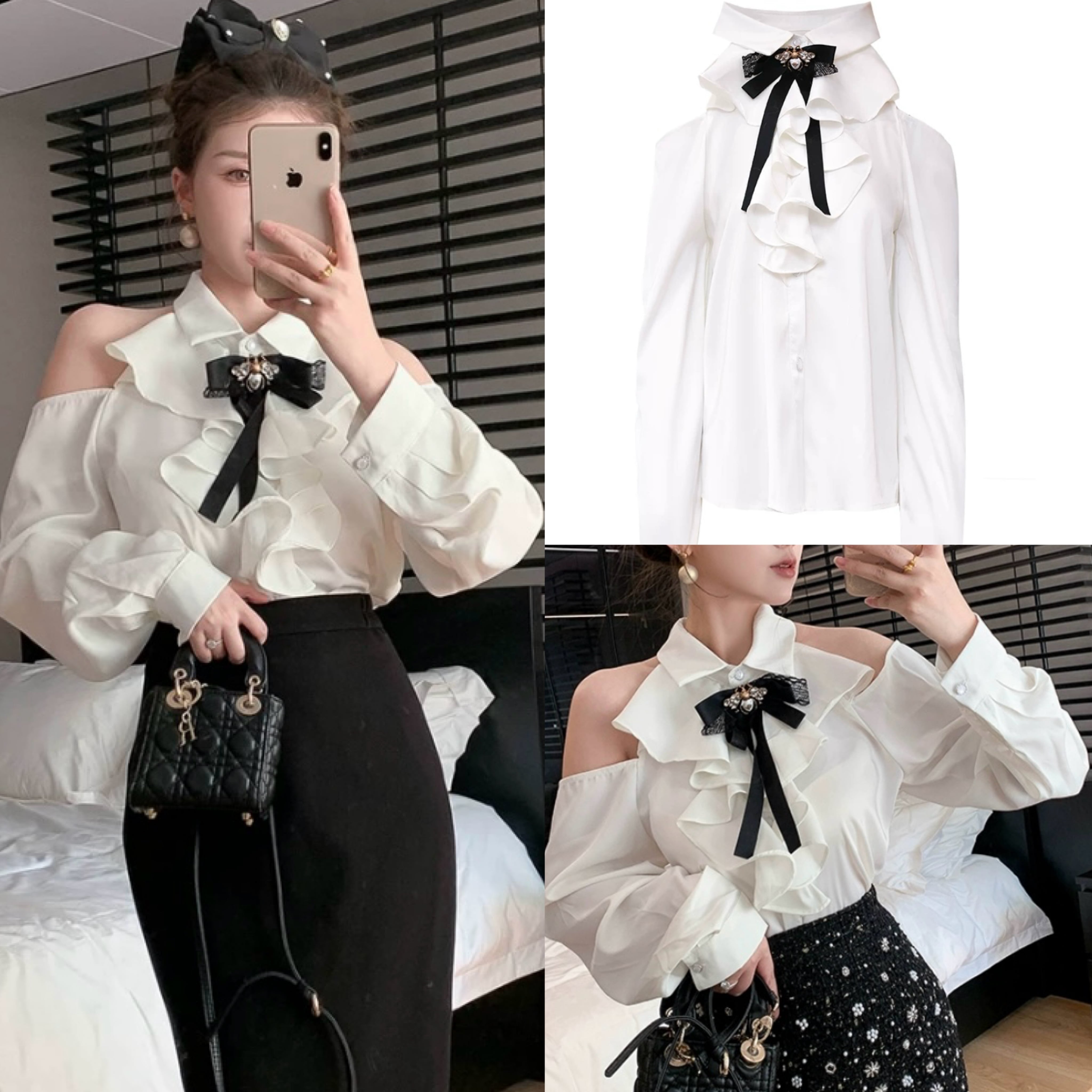 オフショルダー 白 ホワイト お嬢様 ブラウス リボン シャツ トップス ガーリー