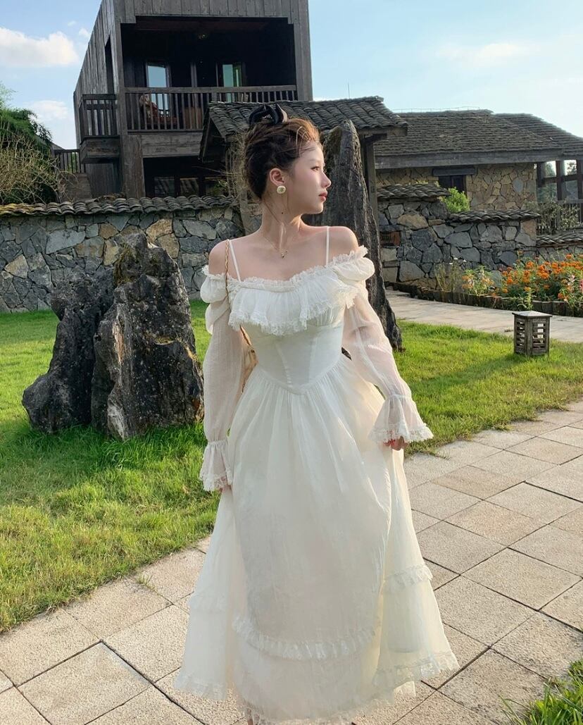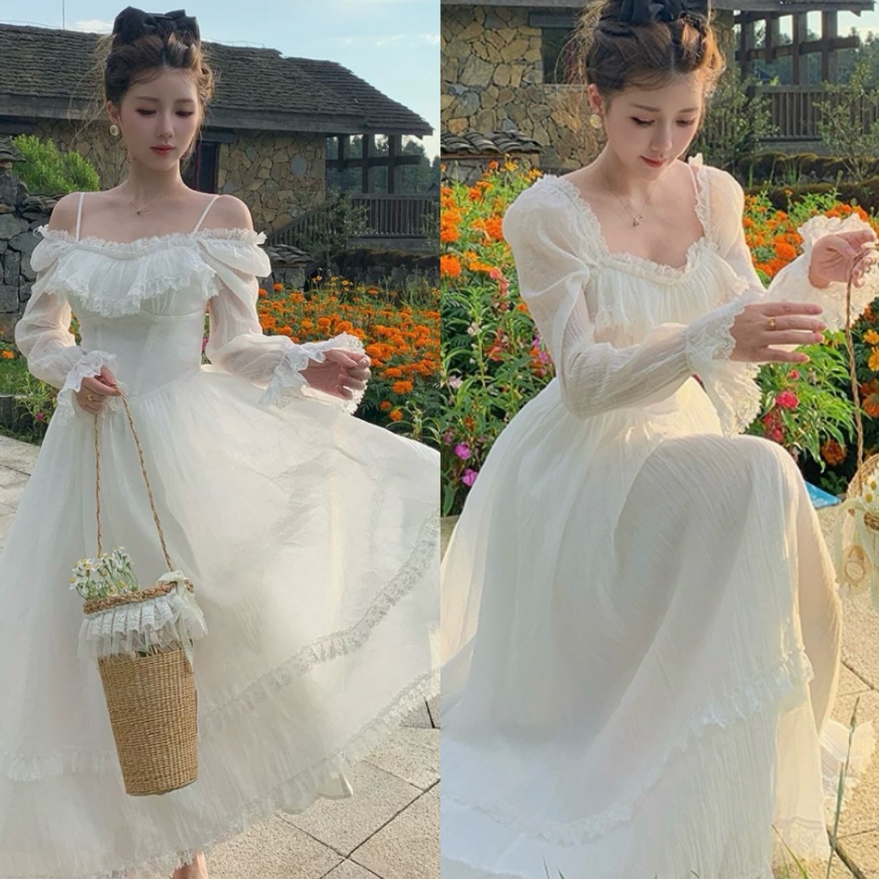 白 ホワイト オフショルダー ドレス シンプル ワンピース 原宿 可愛い ガーリー お嬢様