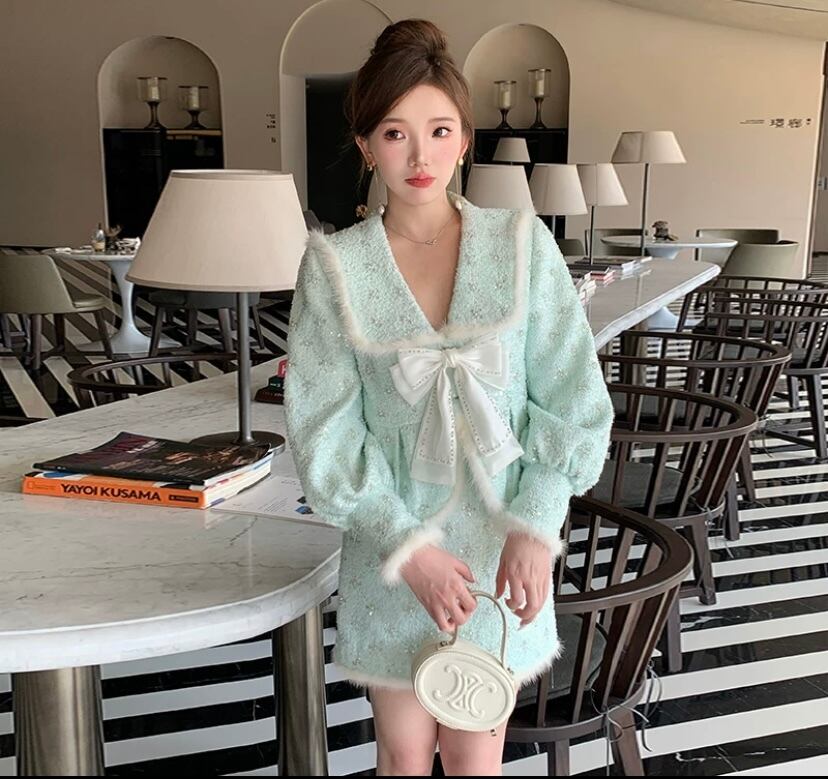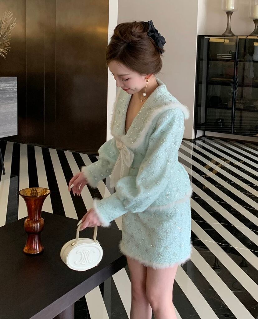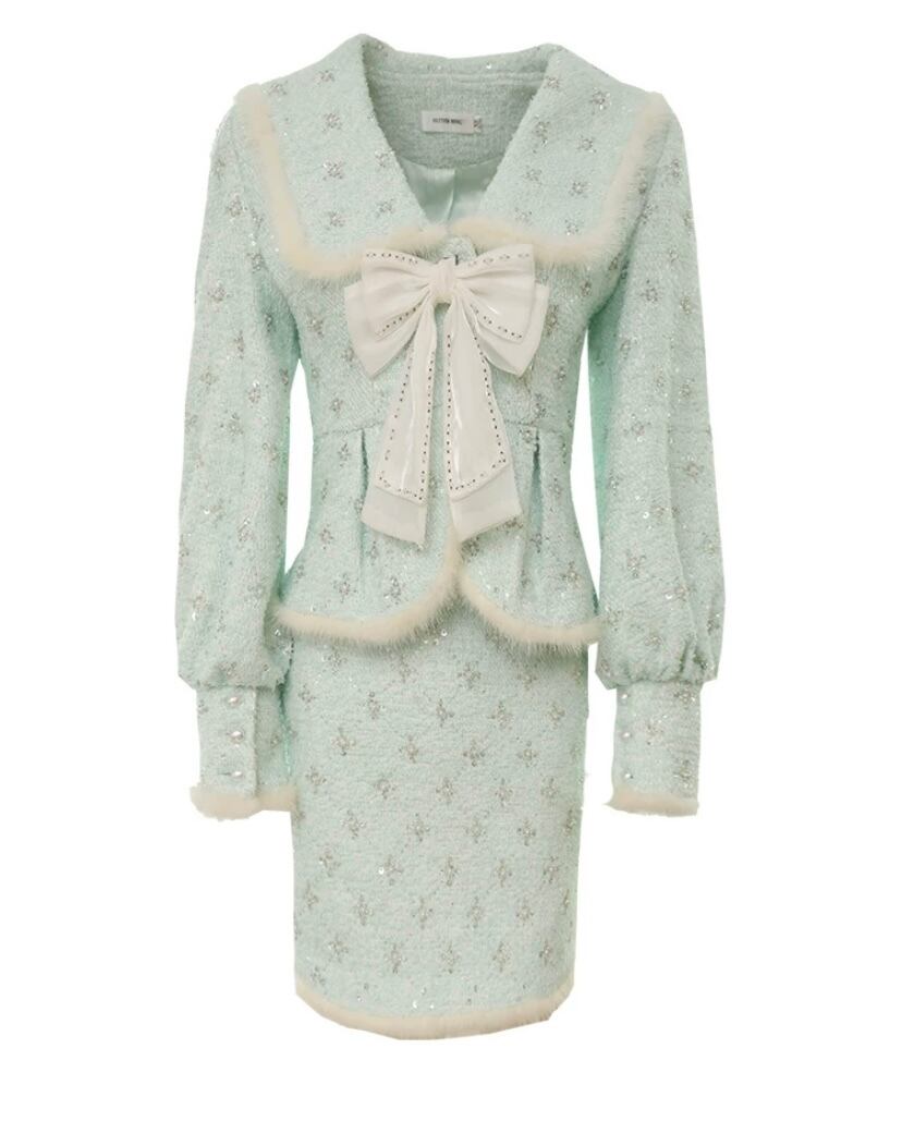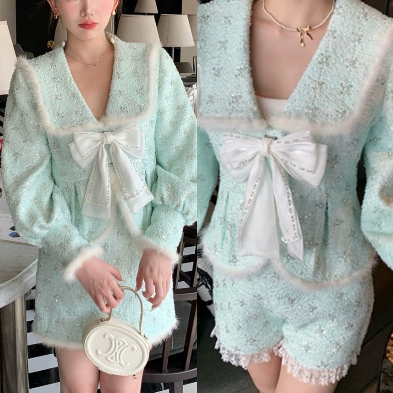 【ジャケット】水色 緑 リボン カーディガン アウター 可愛い お嬢様 コート 白 ファー