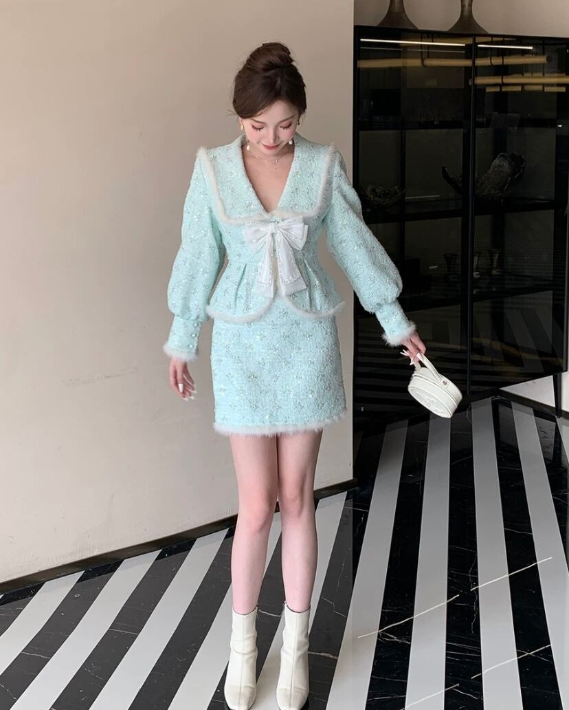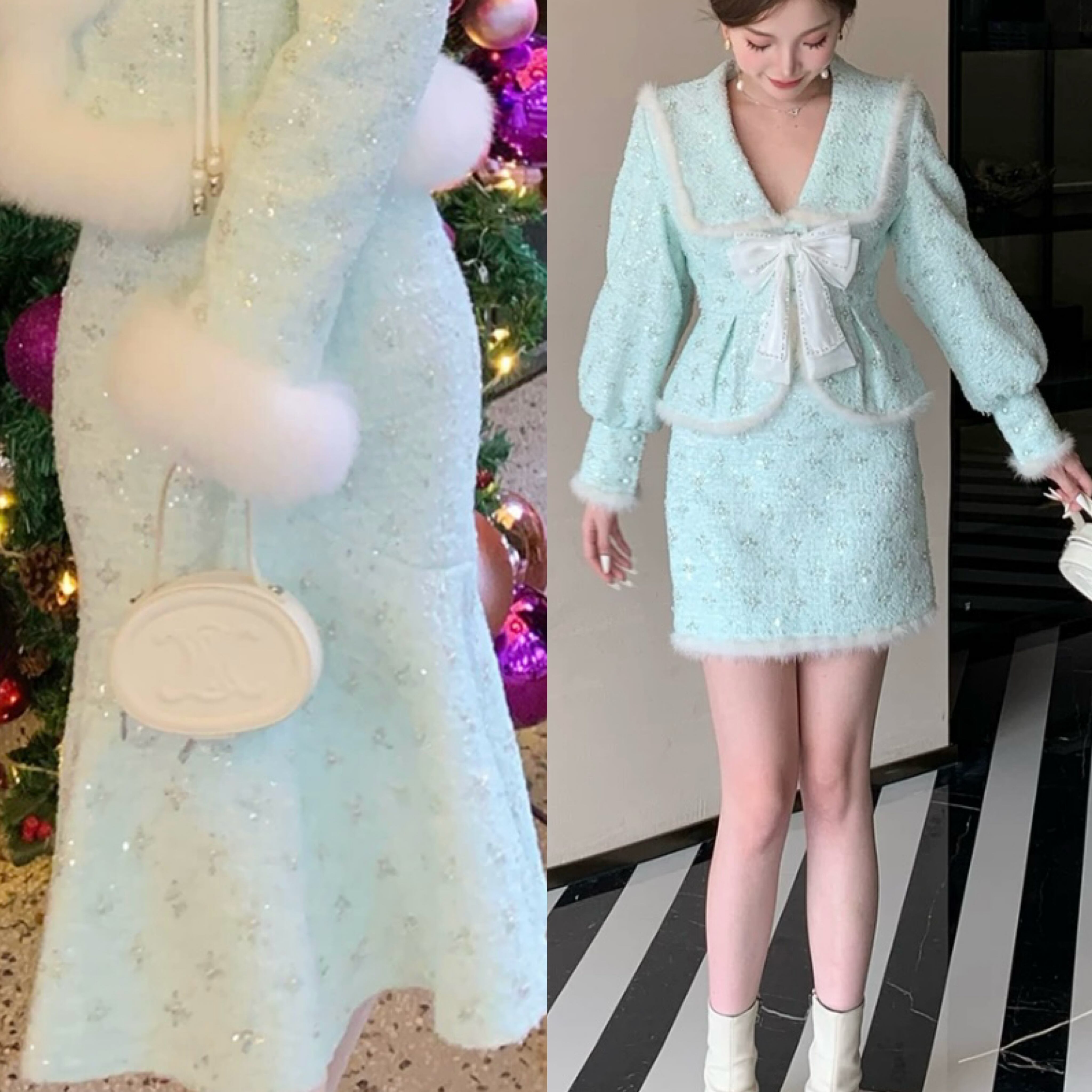【スカート】水色 緑 タイト マーメイド スーツ お嬢様 可愛い