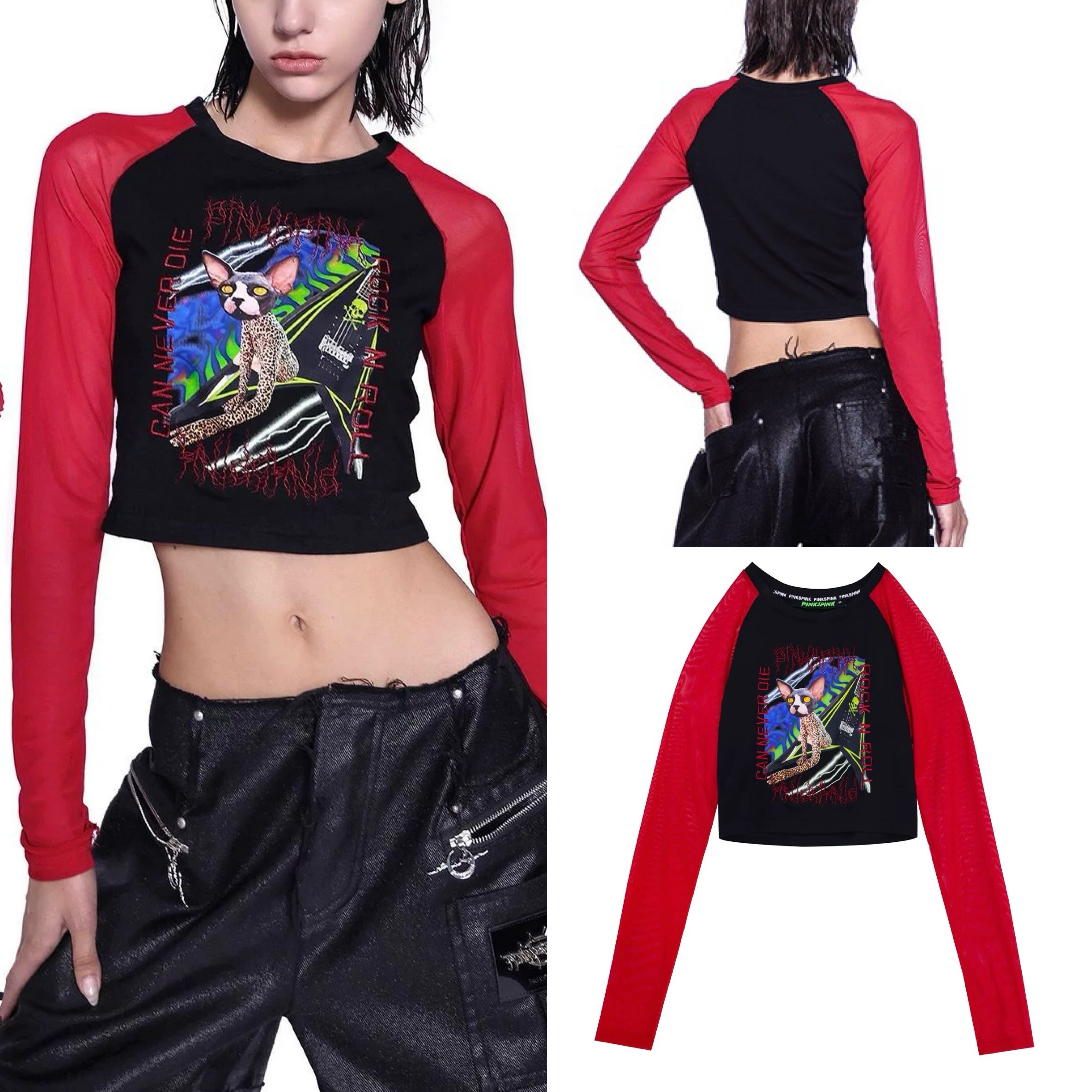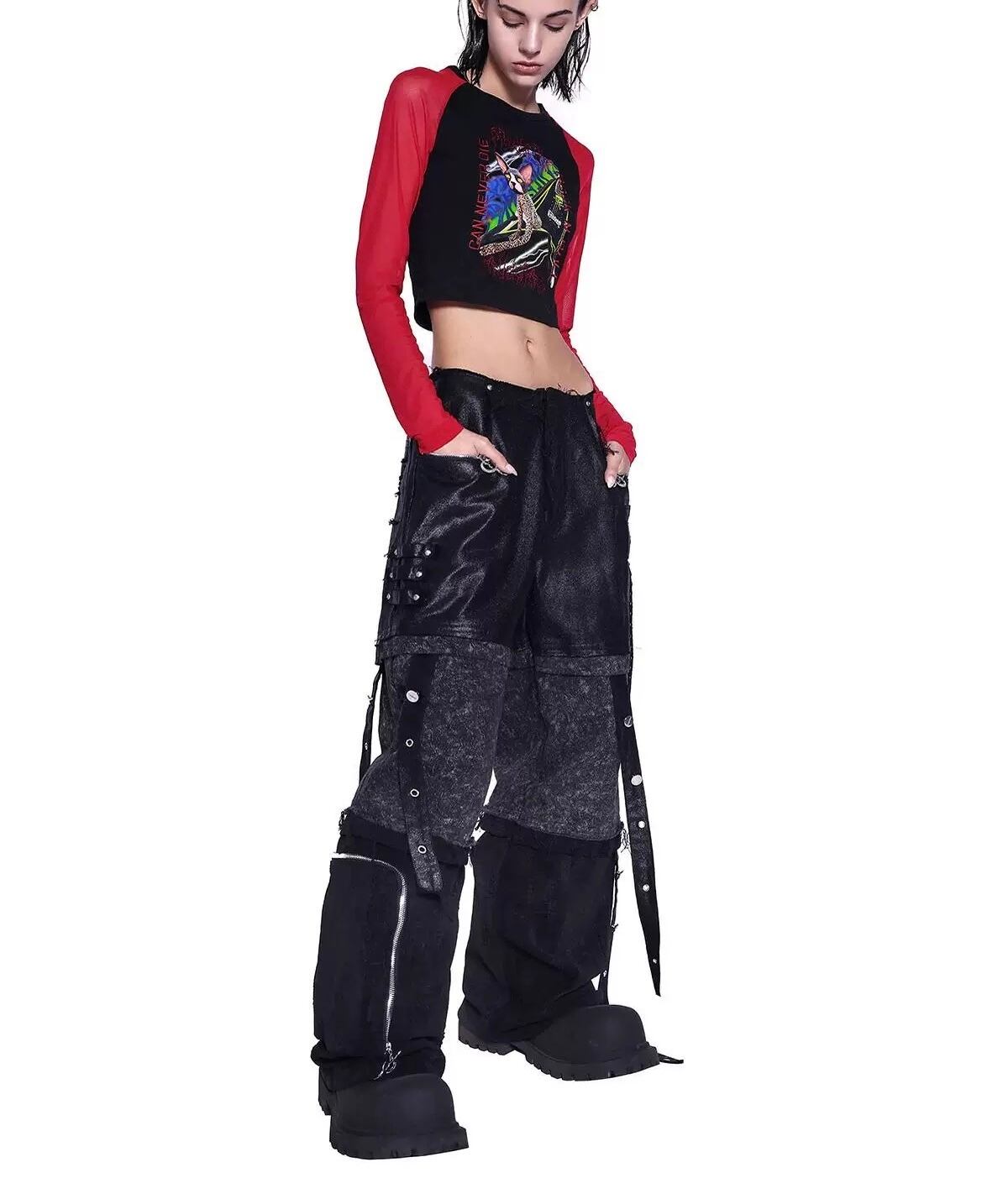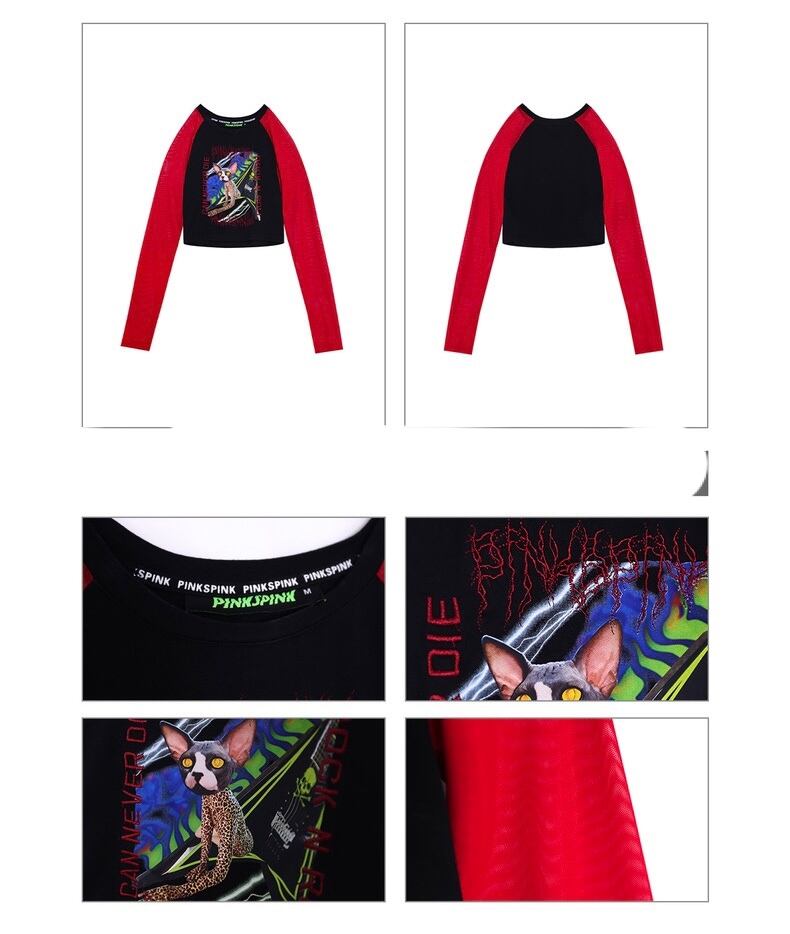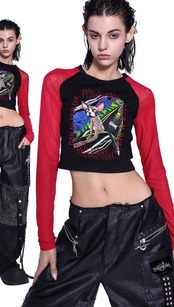 赤 黒 ストリート Tシャツ ブラウス トップス カジュアル サイバー 原宿