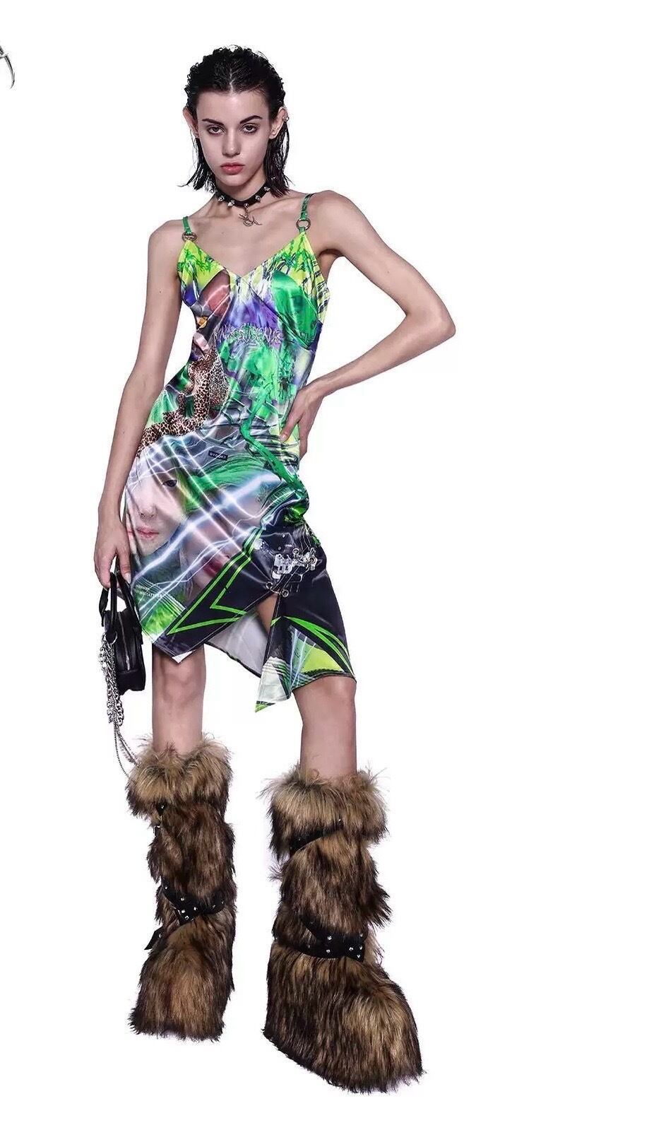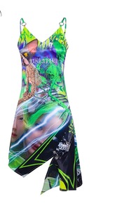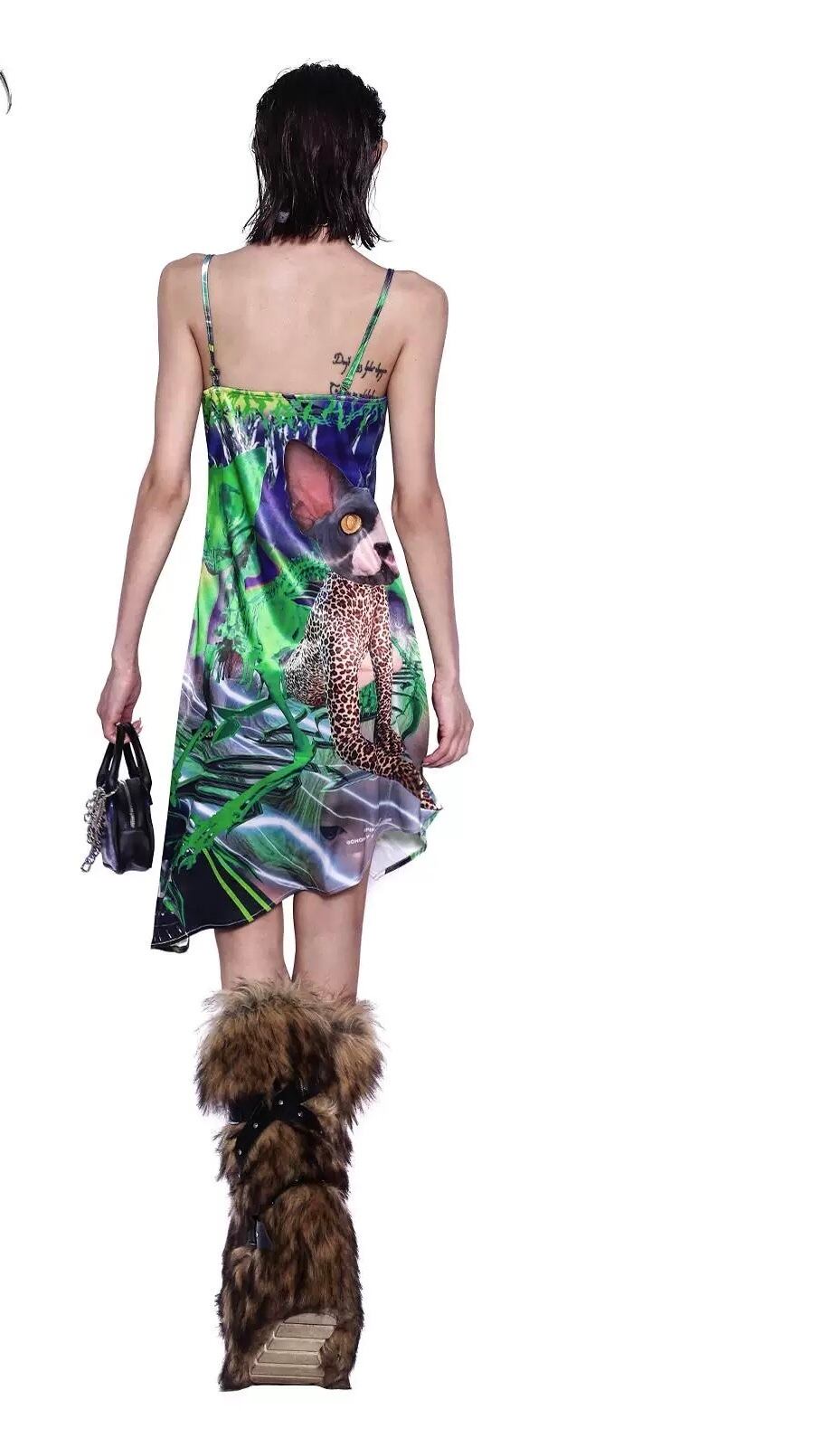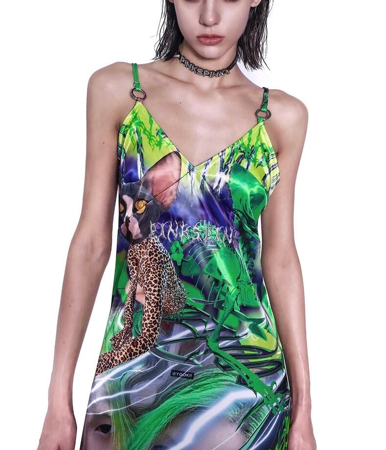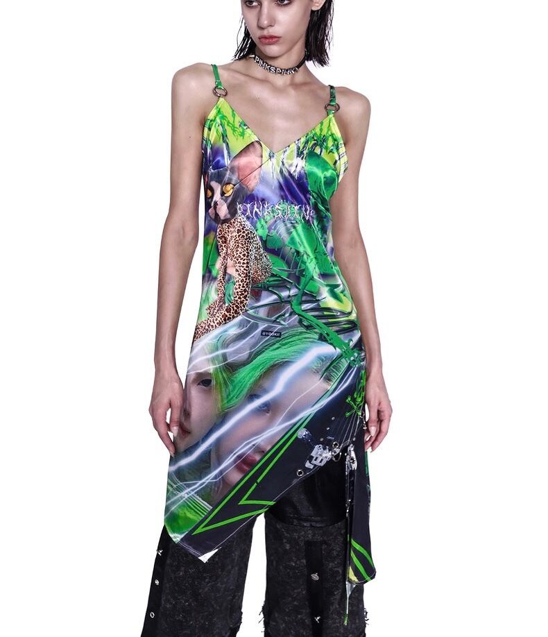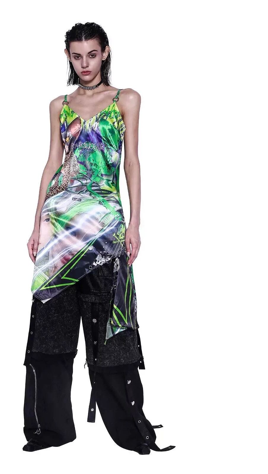 【2way】キャミソール 緑 ワンピース トップス サイバー 原宿 可愛い グリーン ダンス クラブ 渋谷