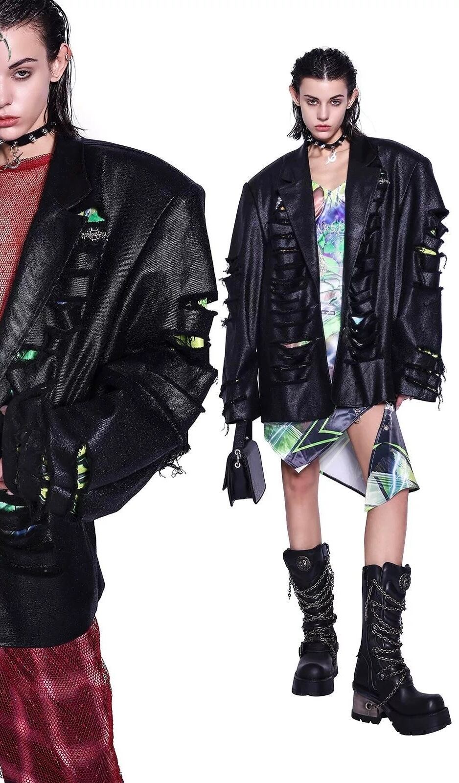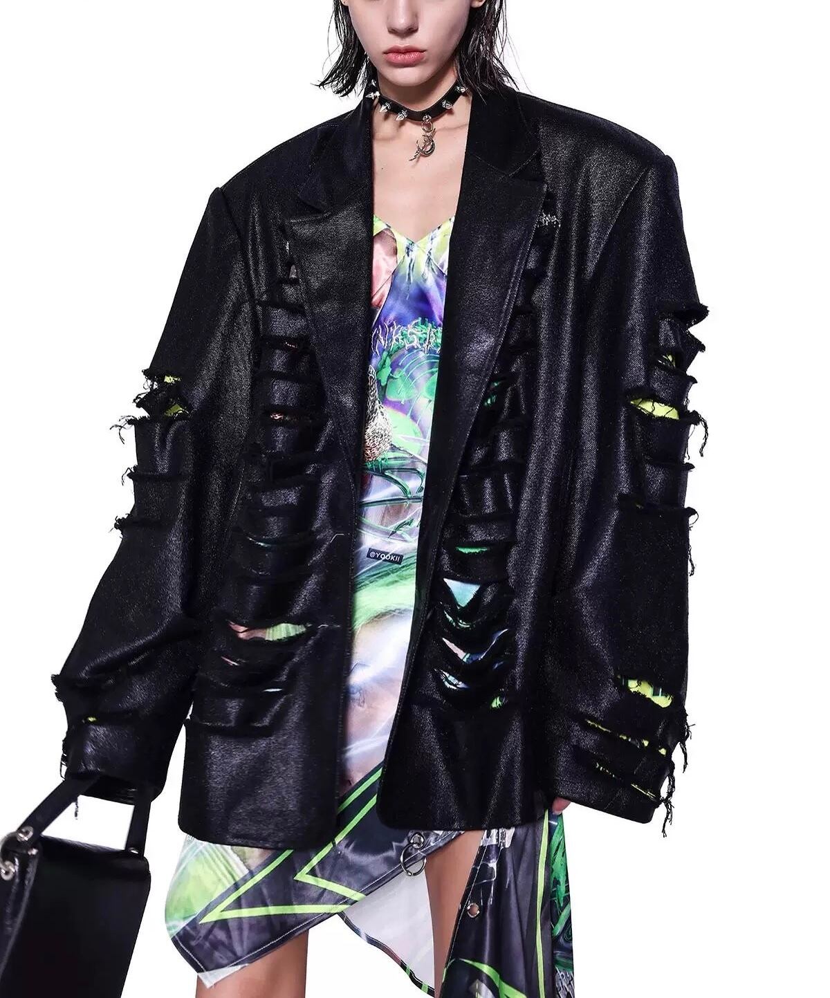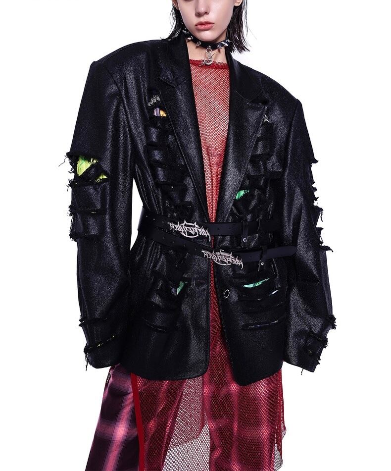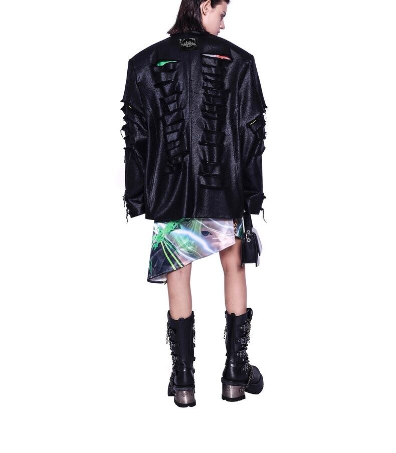 コート アウター ジャケット ブルゾン ワイルド 黒 ダメージ アウター カーディガン 革ジャン レザー