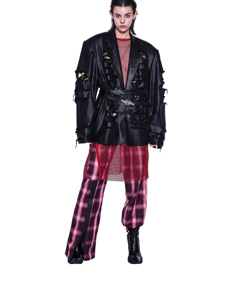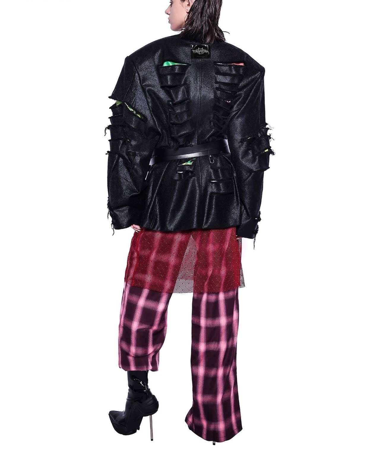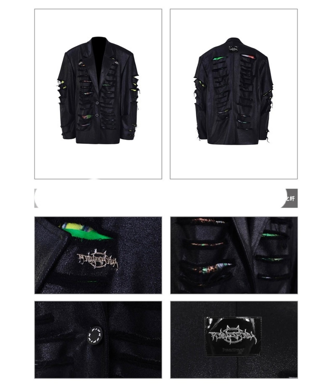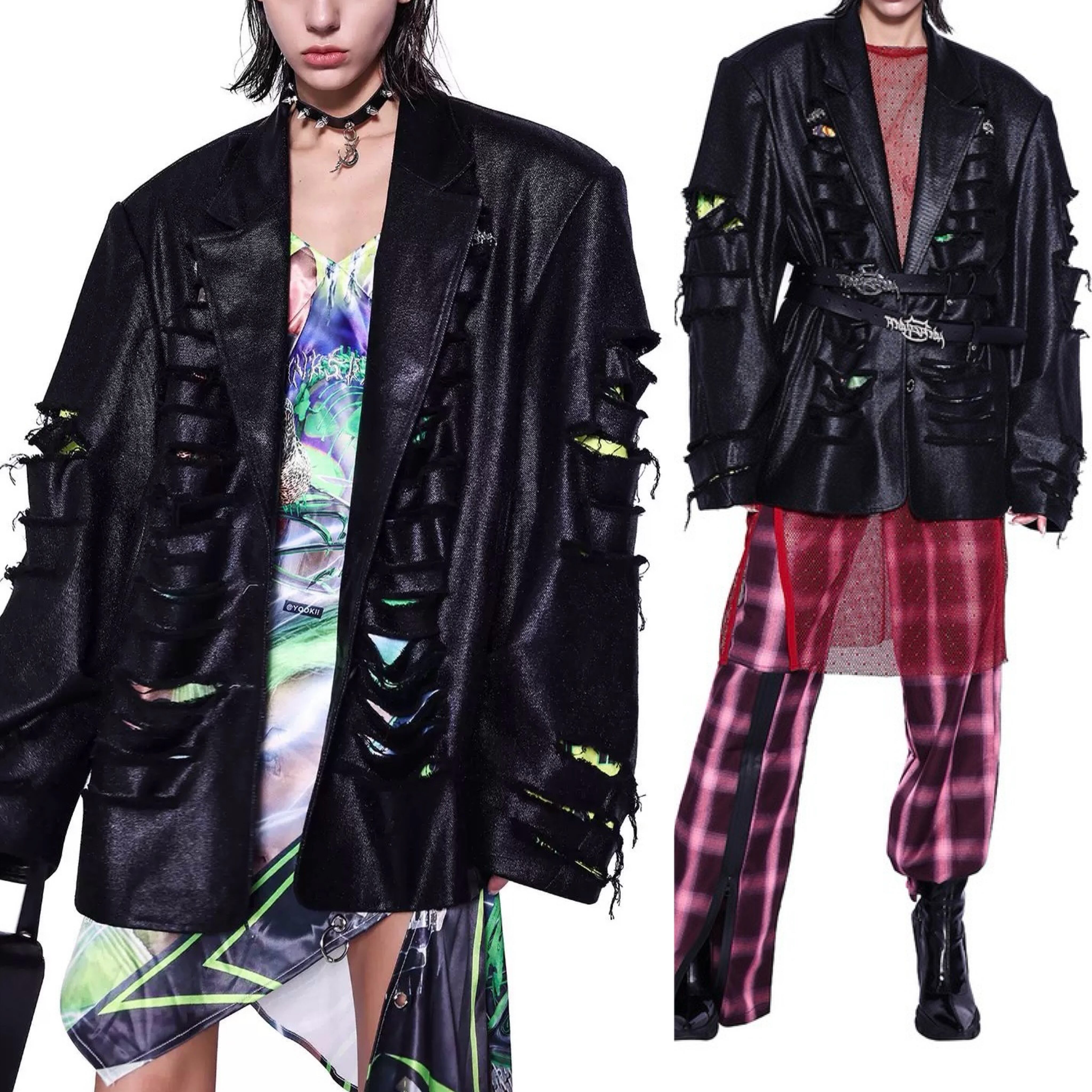 コート アウター ジャケット ブルゾン ワイルド 黒 ダメージ アウター カーディガン 革ジャン レザー