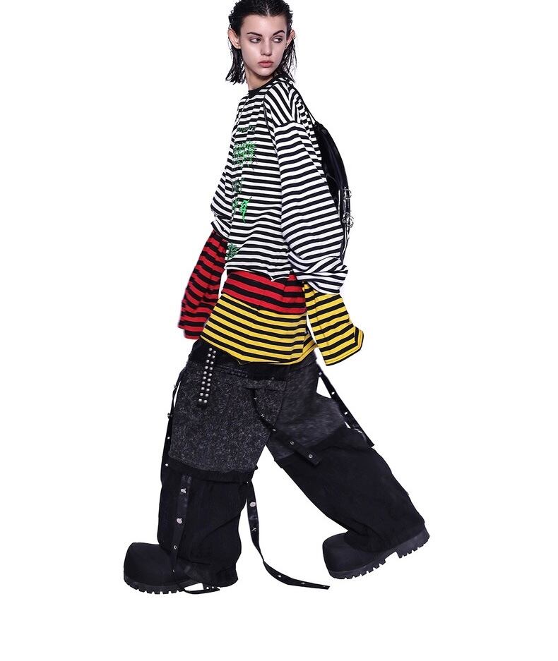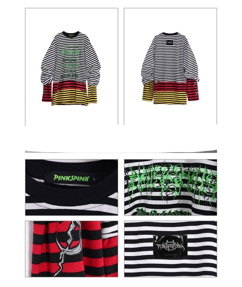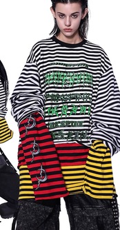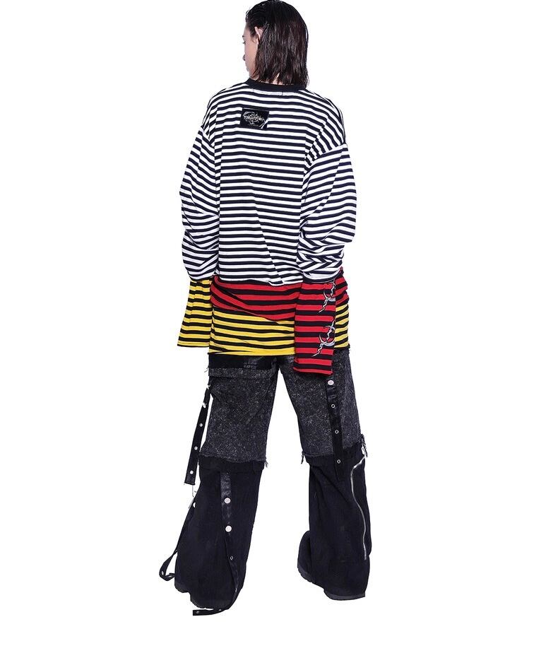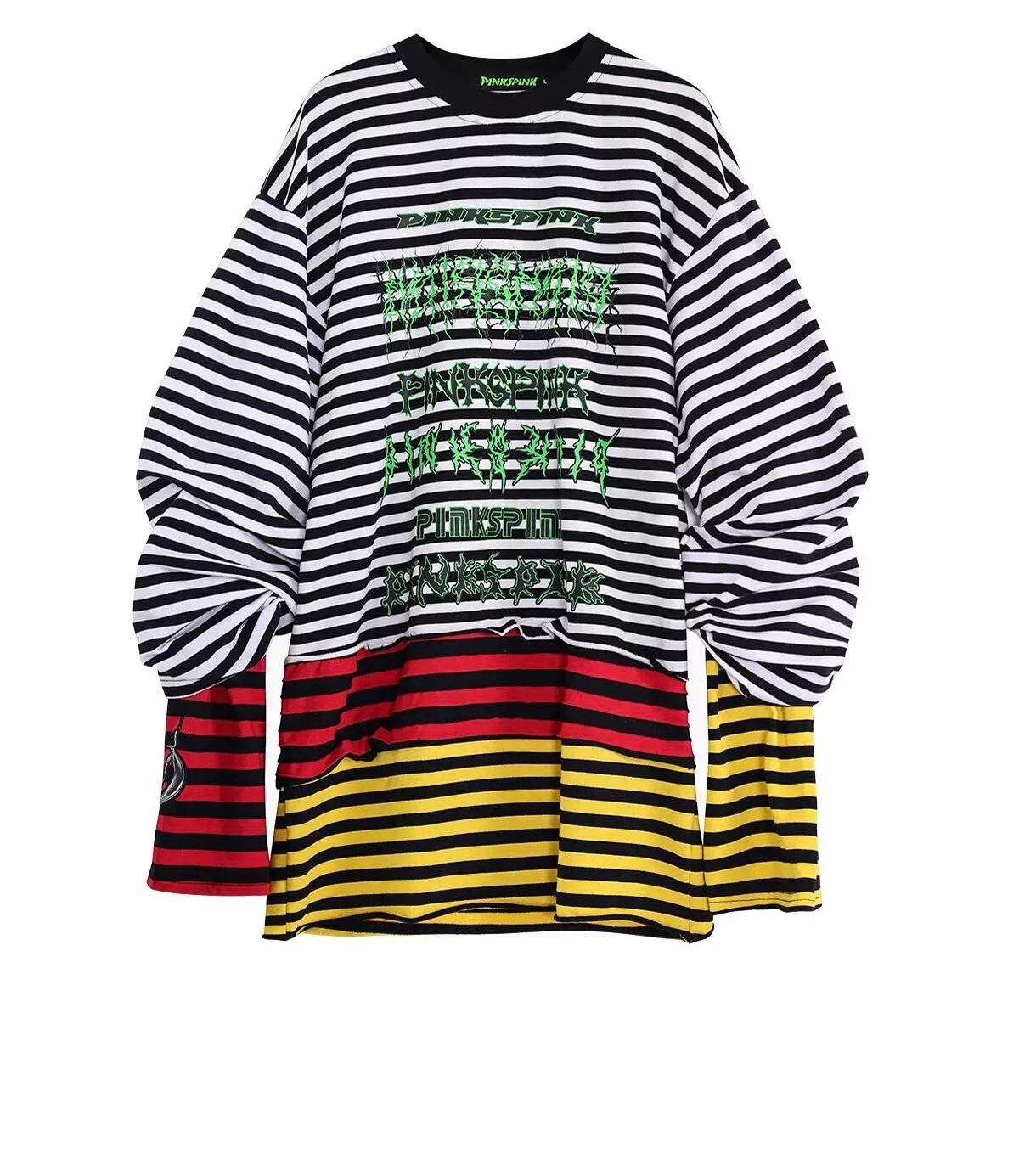 【2way】ボーダー チェック 黄色 赤 白 黒 トップス ワンピース 黒 Tシャツ スウェット トレーナー