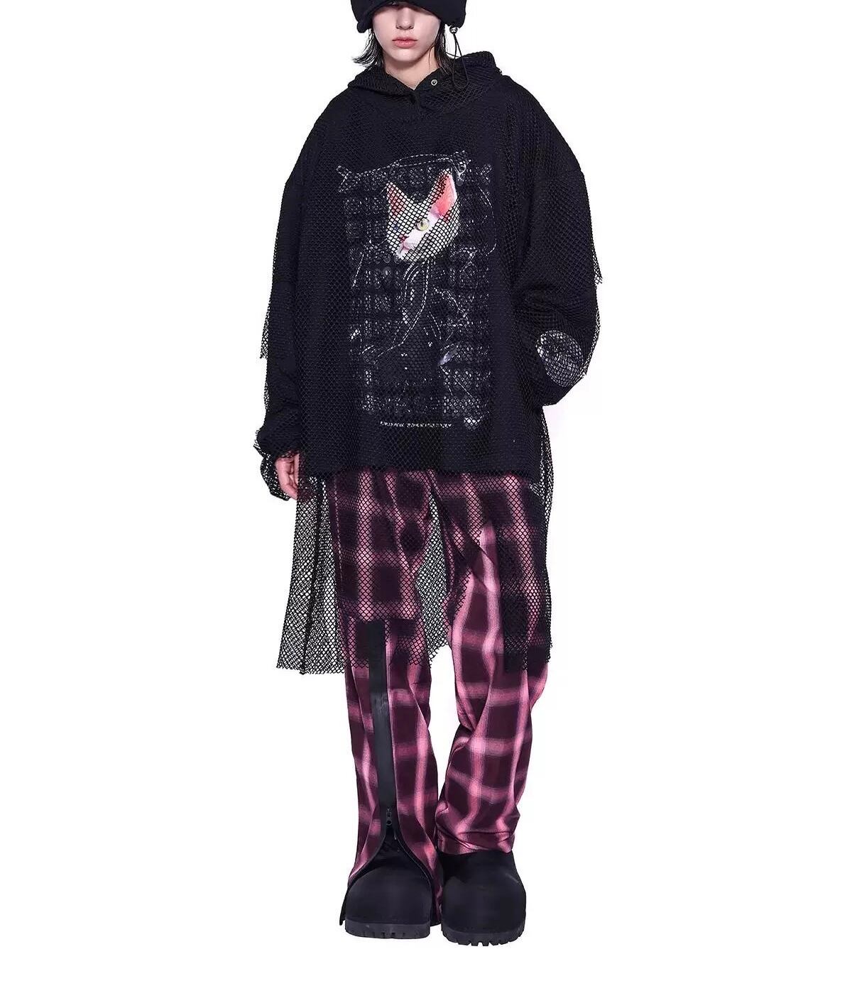 ピンク チェック ボトムス 黒 パンツ スウェット カジュアル 可愛い ストリート ボトムス