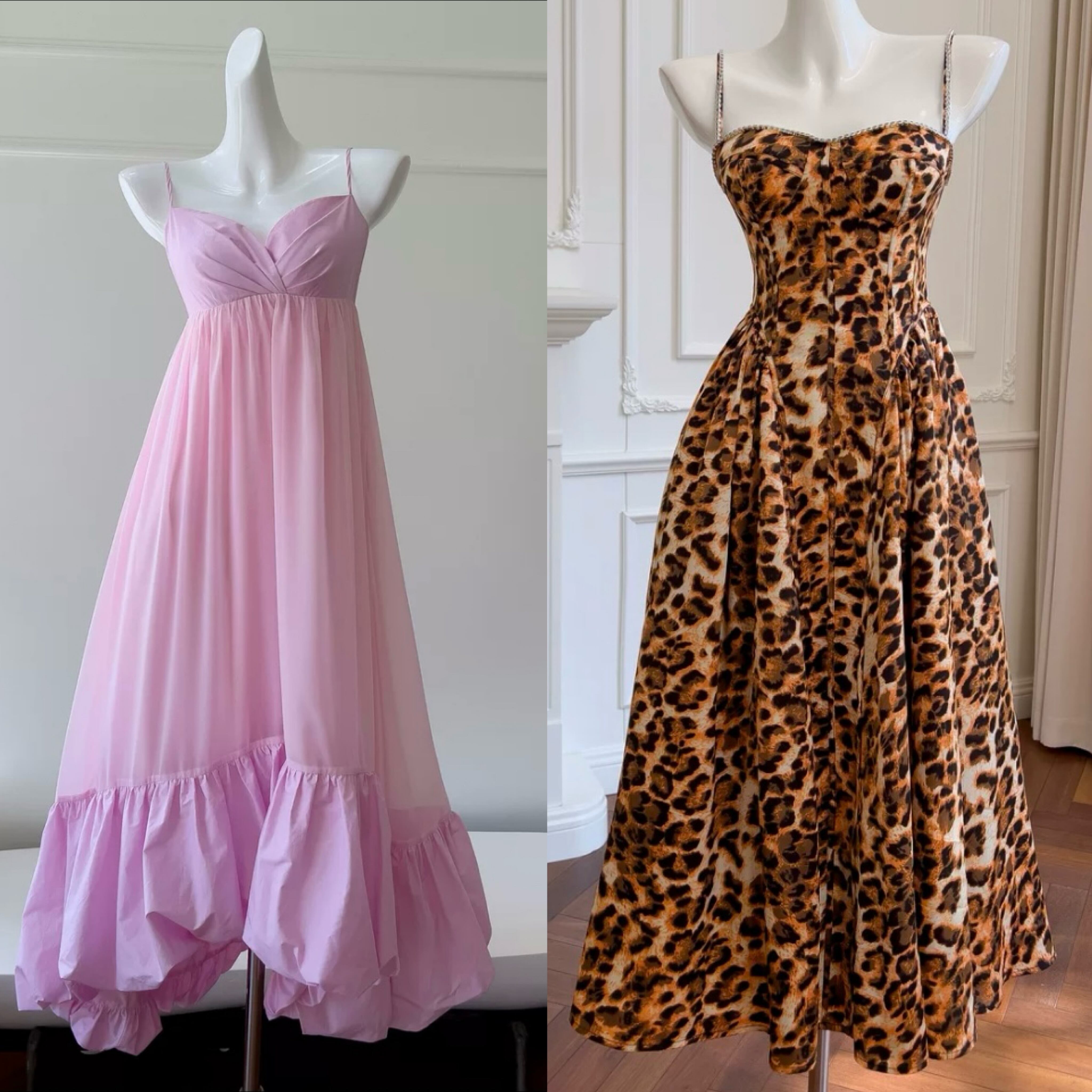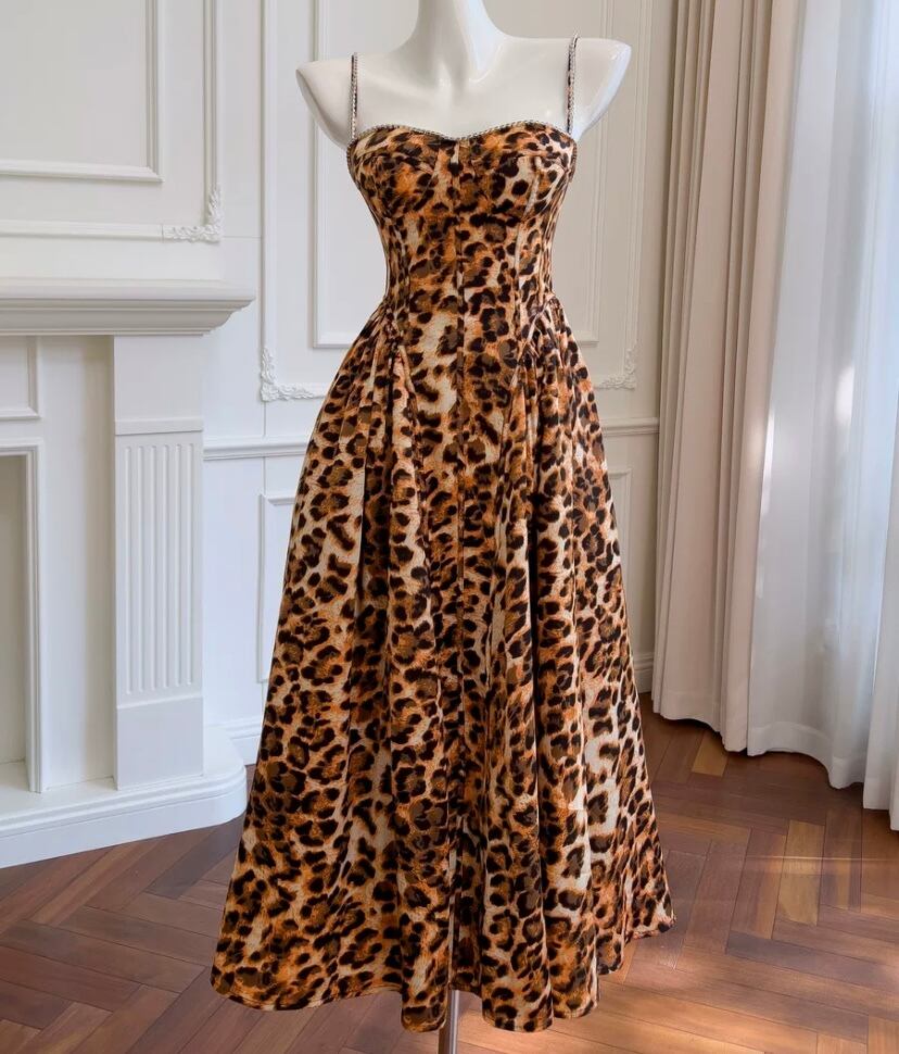 レオパード ヒョウ柄 ピンク キャミソール 茶色 ワンピース ガーリー エレガント ドレス