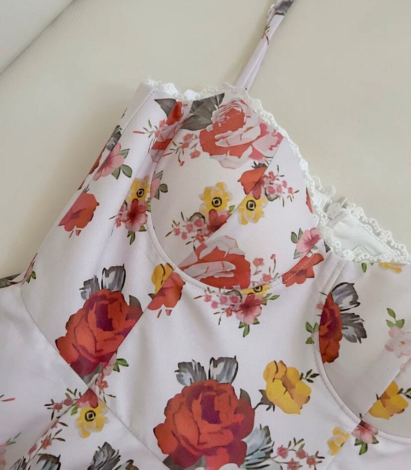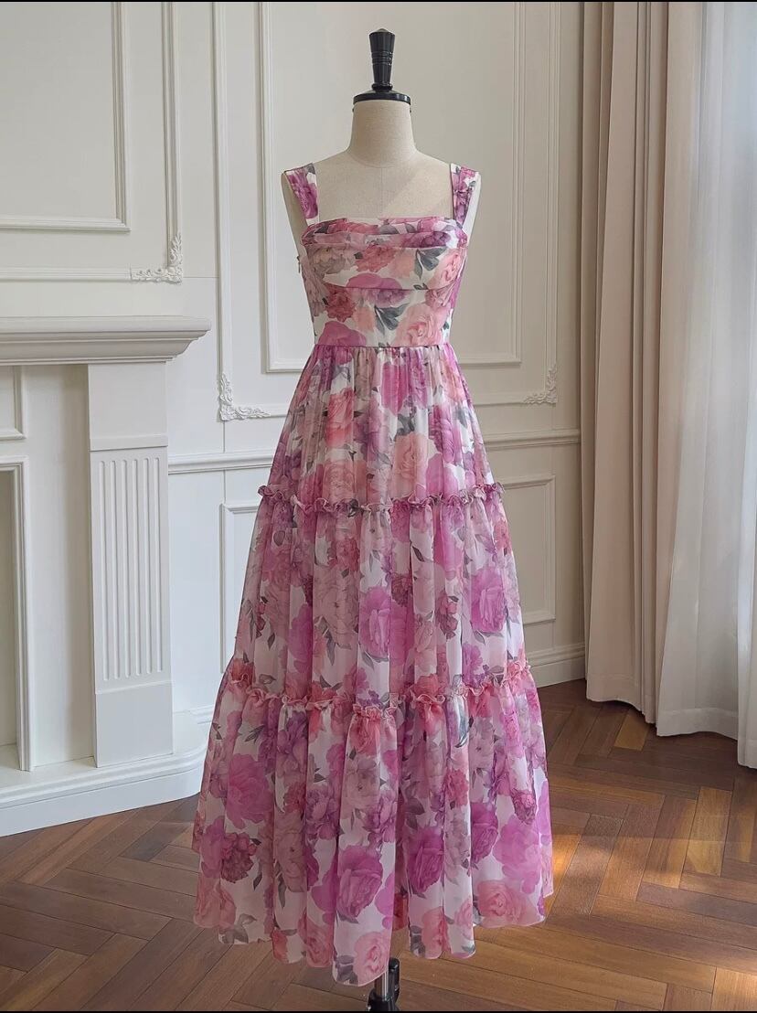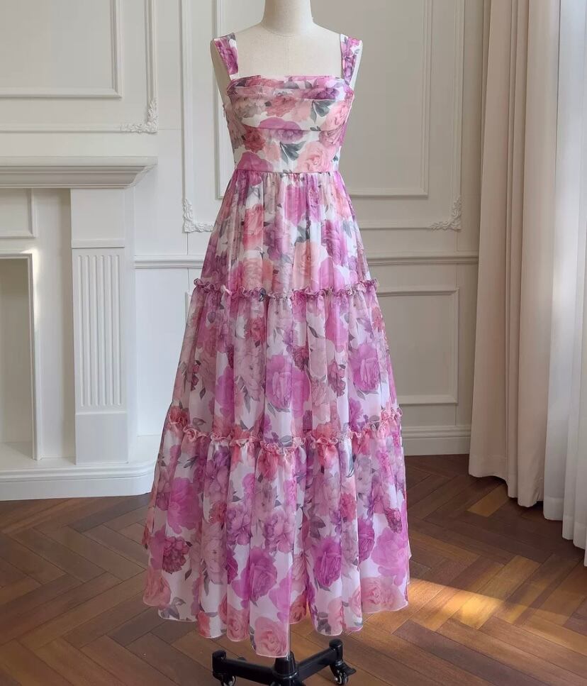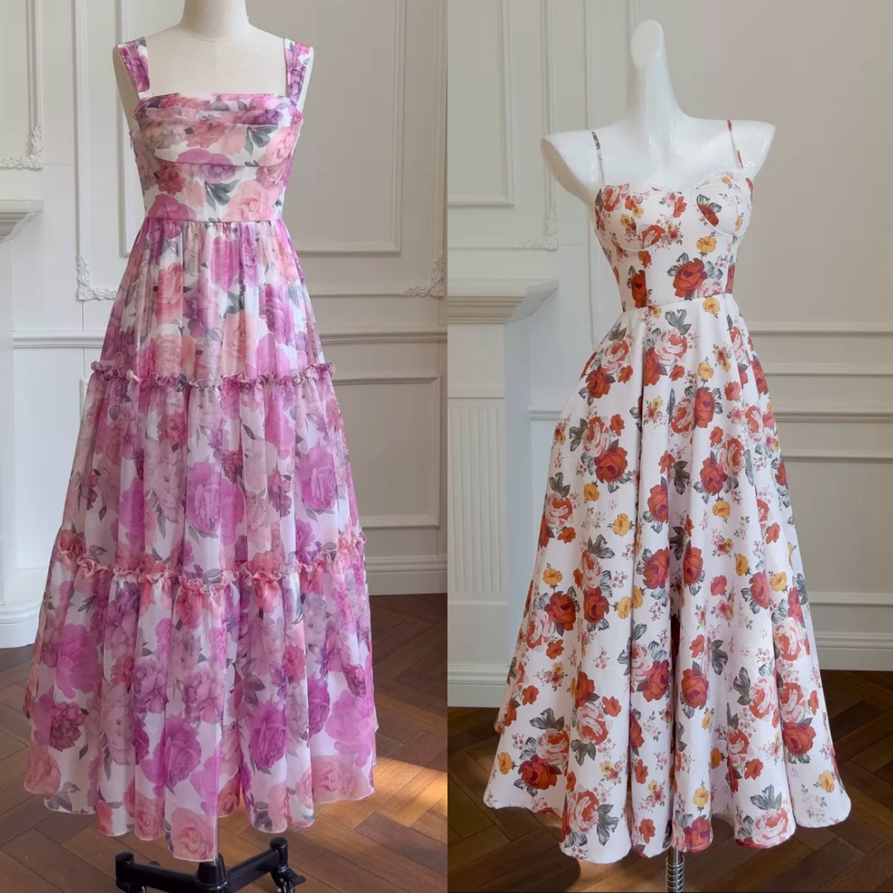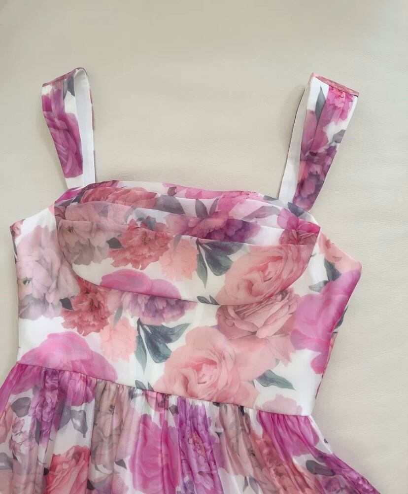 ピンク 紫 薔薇 フラワー キャミソール ドレス エレガント パーティー オレンジ 黄色 花柄