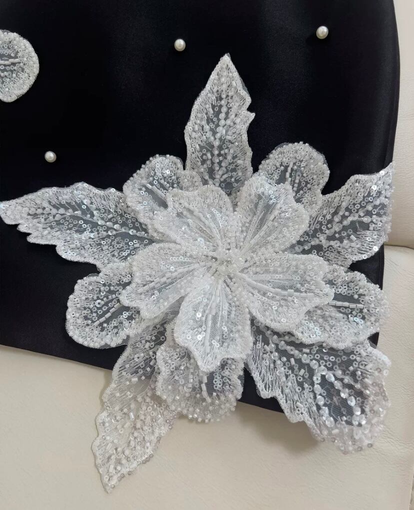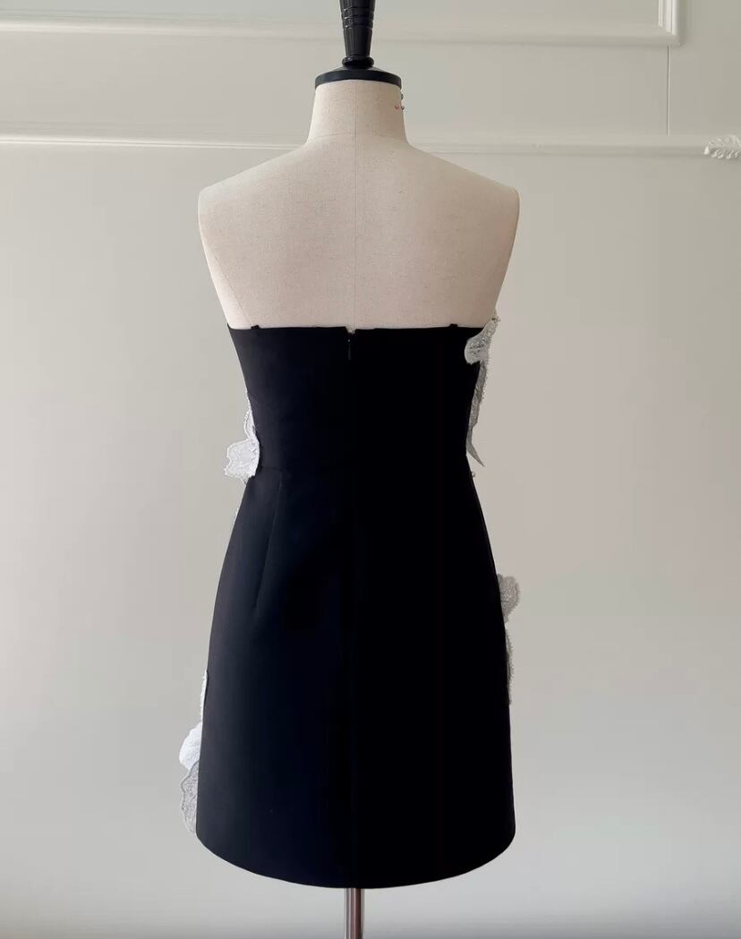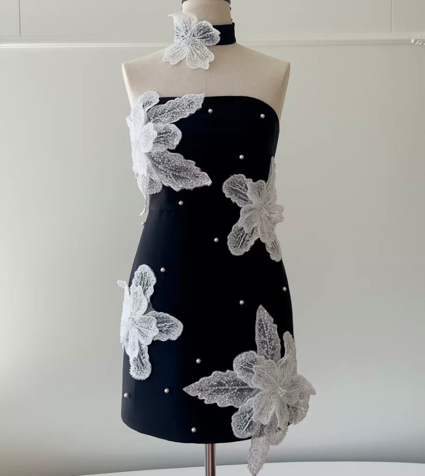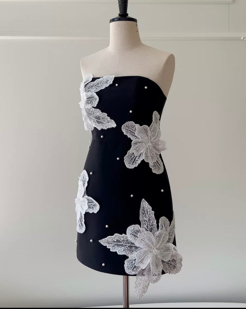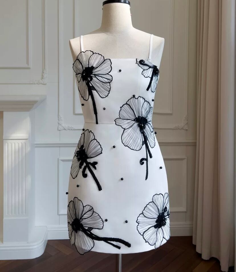 黒 白 フラワー 花柄 キャミソール ドレス ワンピース エレガント デコレーション
