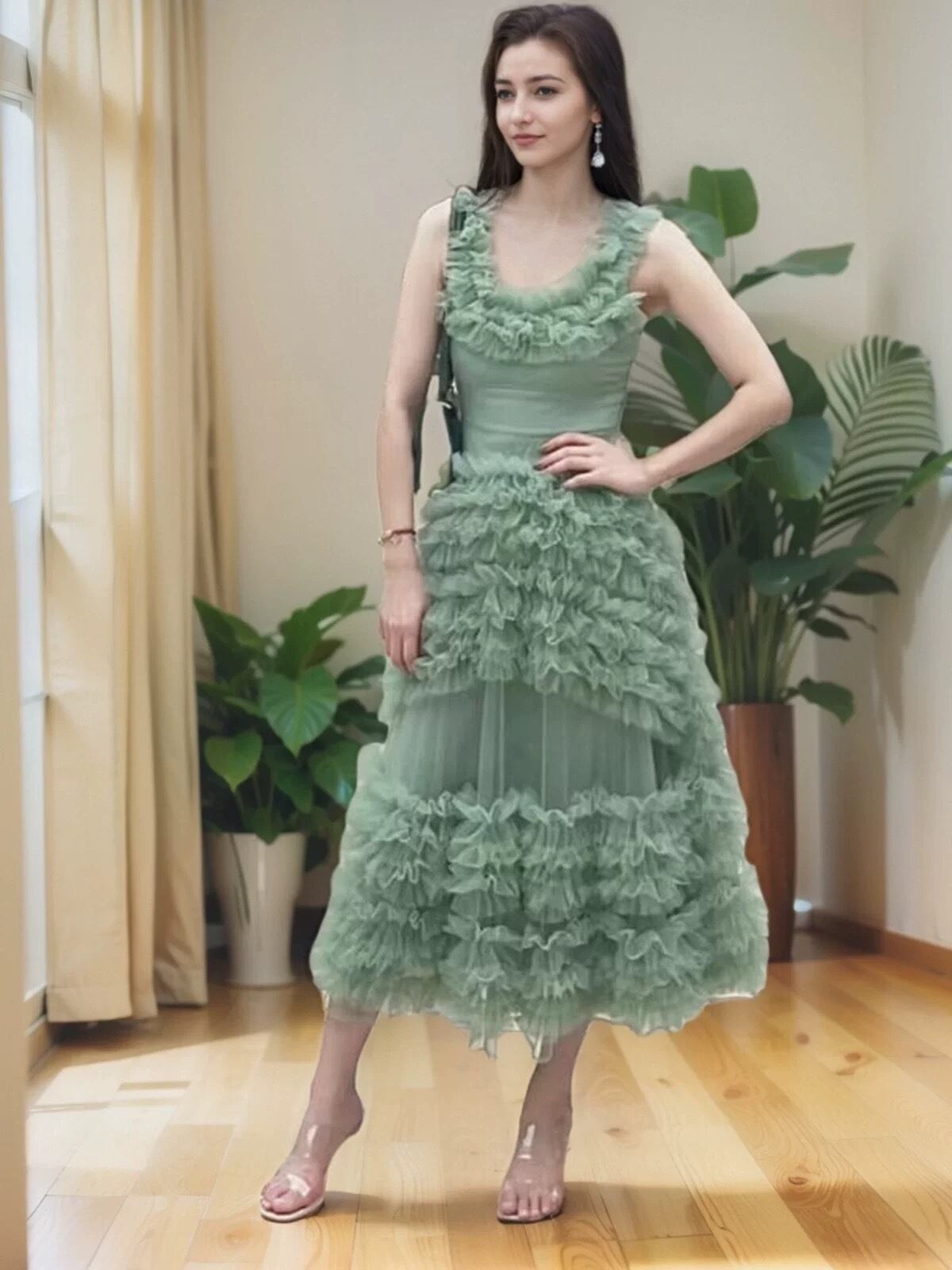 エレガント フリル 緑 黒 ワンピース ドレス ピンク パーティー カジュアル