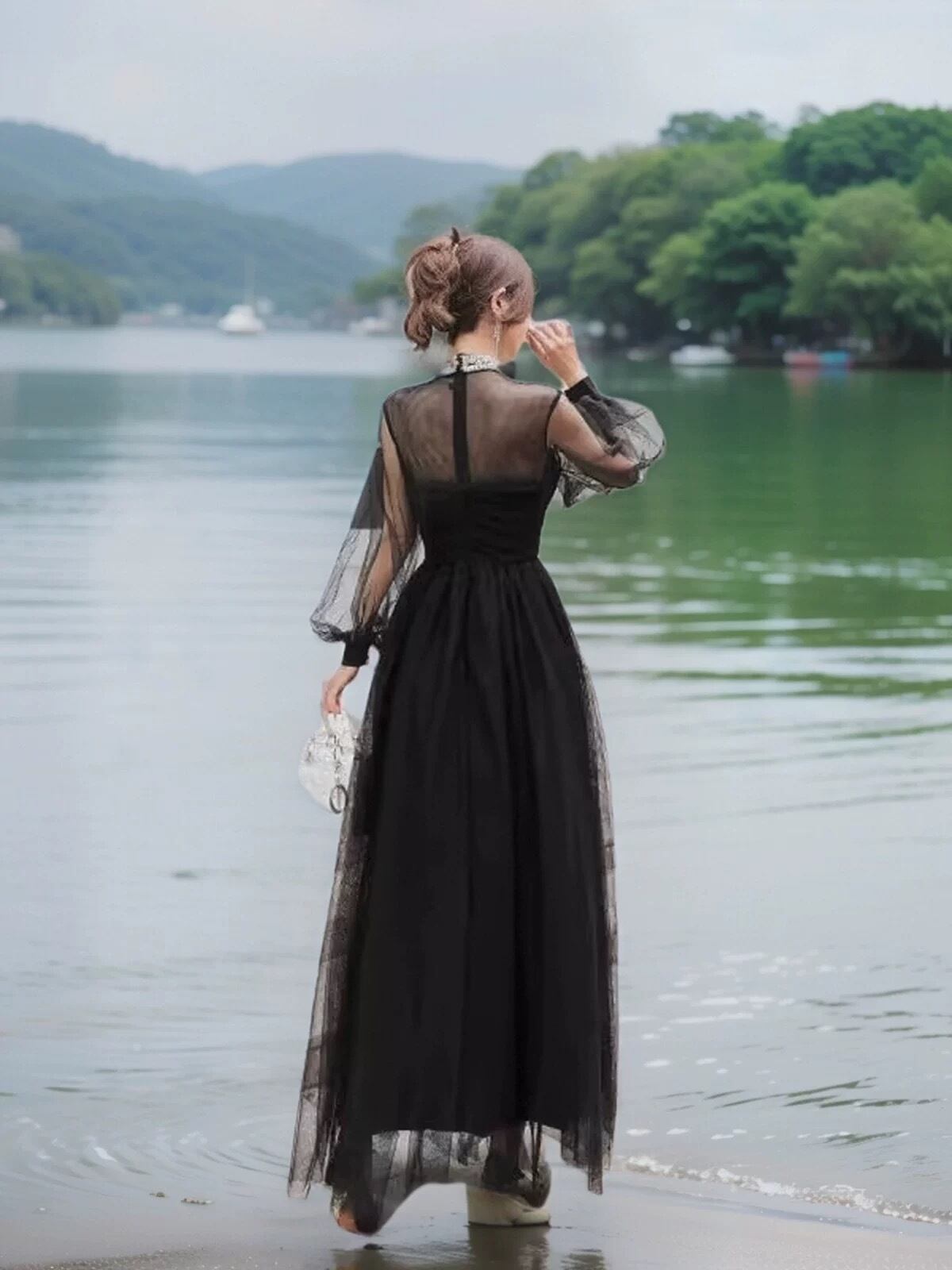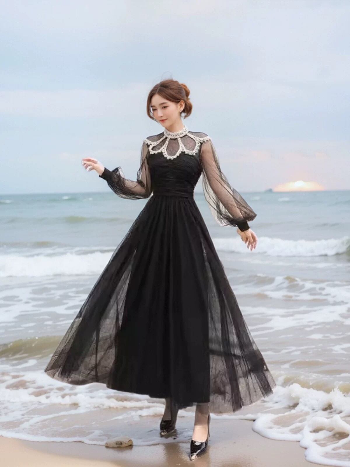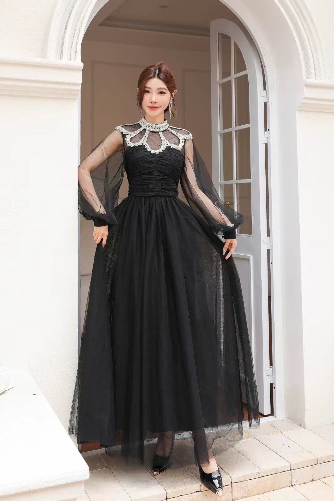 XL 黒 ピンク ドレス ワンピース ブラウス ラインストーン ガーリー エレガント