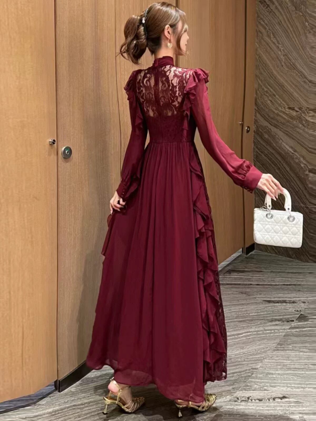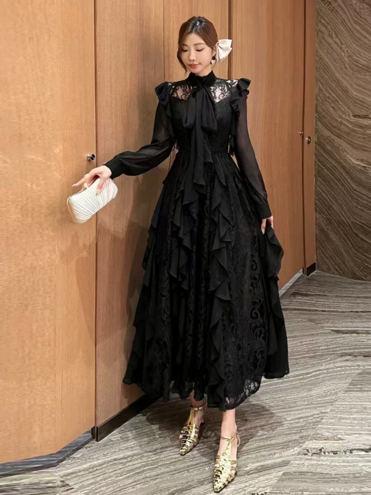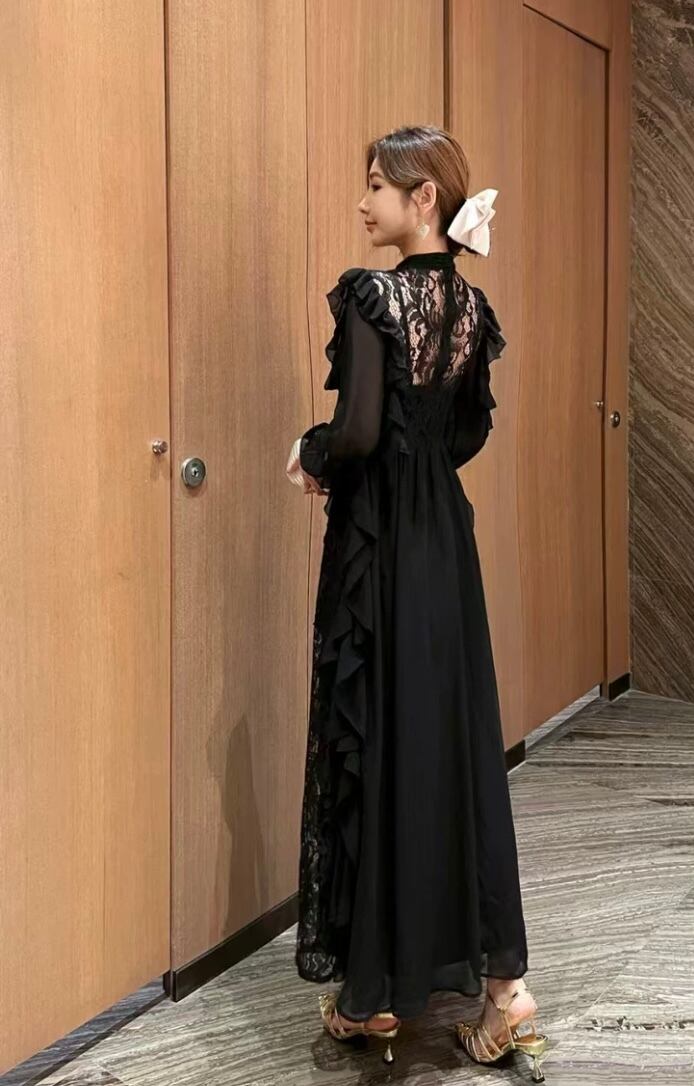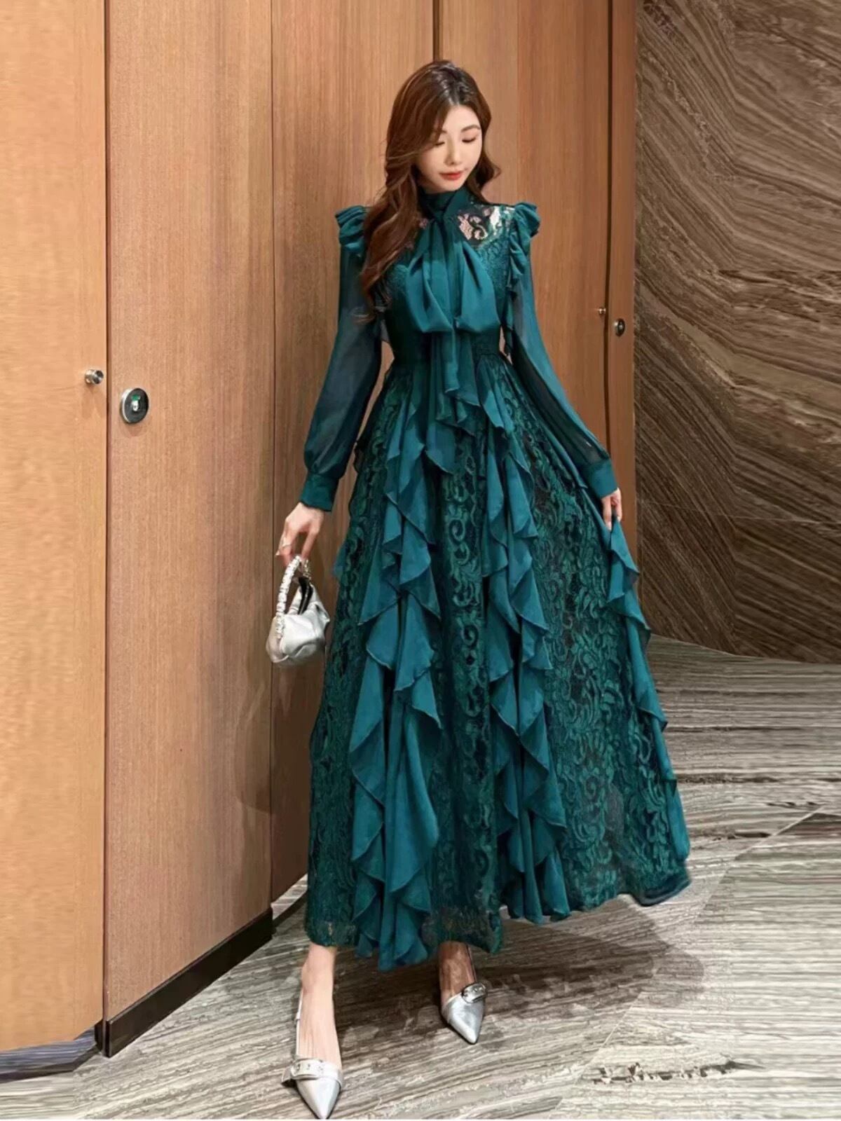 黒 赤 緑 ブラウス レース ワンピース ドレス エレガント XL