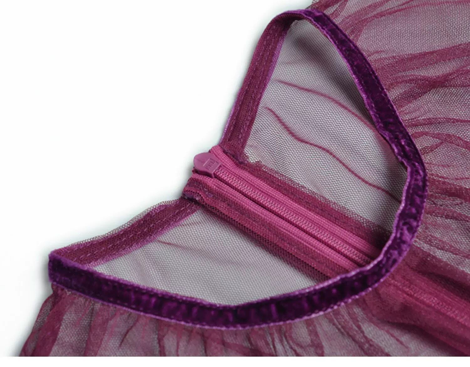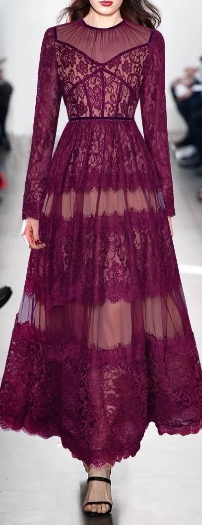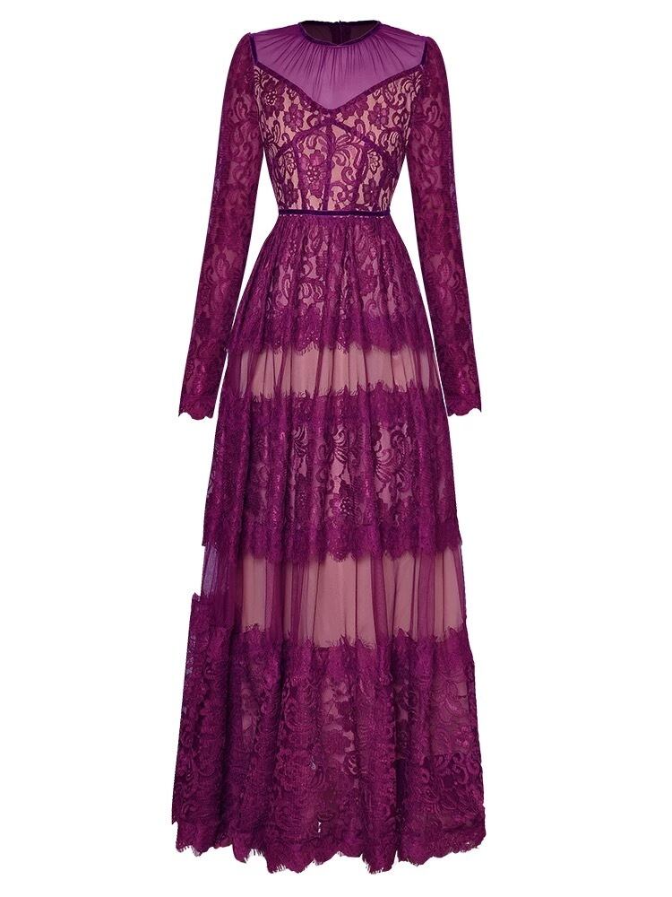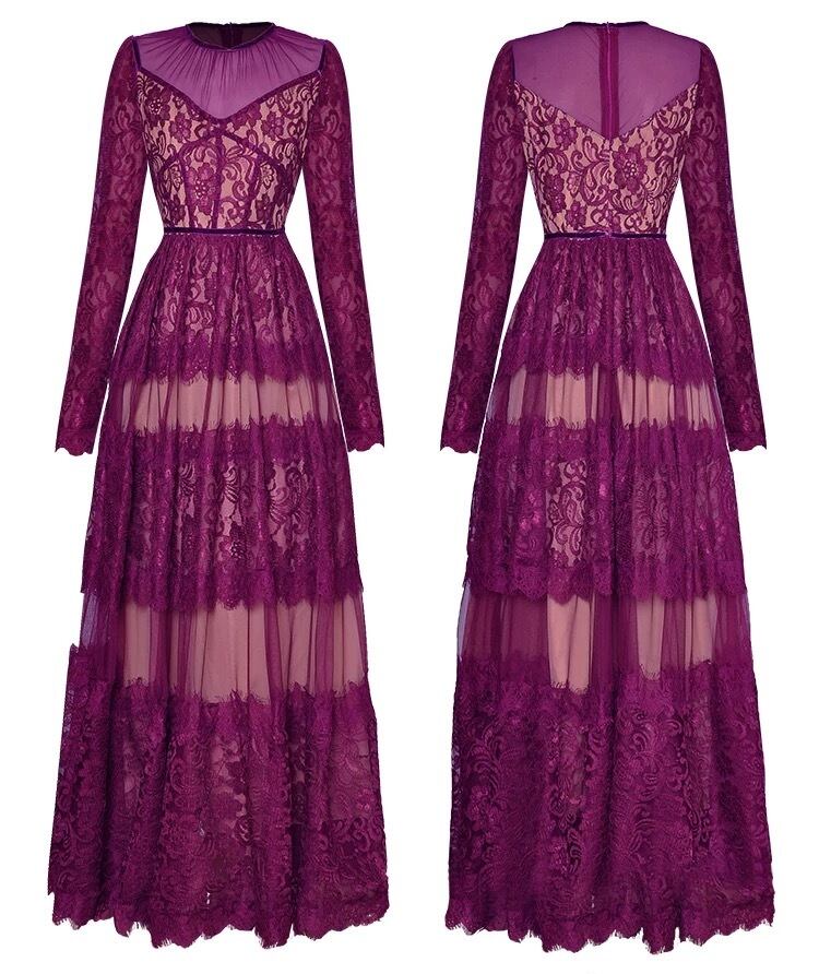 紫色 黒 レース 花柄 フラワー エレガント ワンピース ゴージャス パーティー ドレス