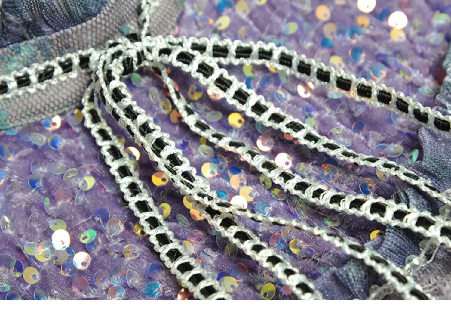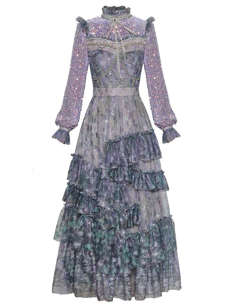 【2XLまで】グレー キラキラ スパンコール ハイネック レース パーティー リボン ドレス ワンピース エレガント ゴージャス XL