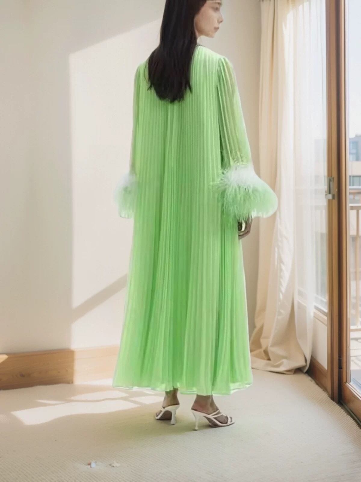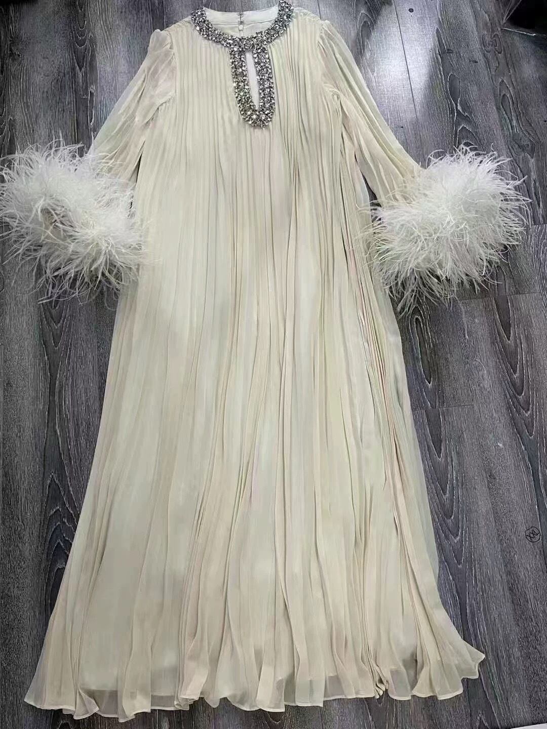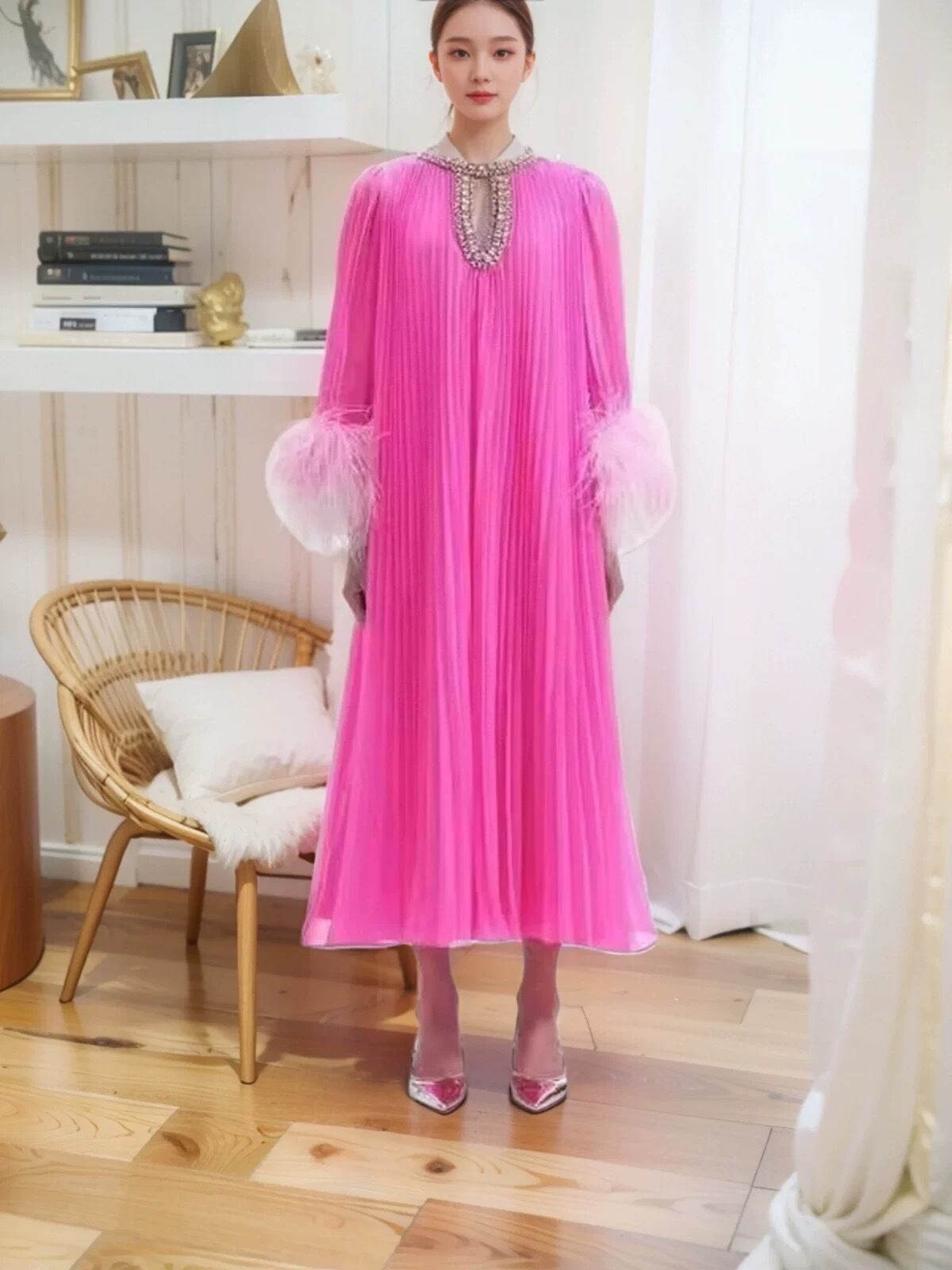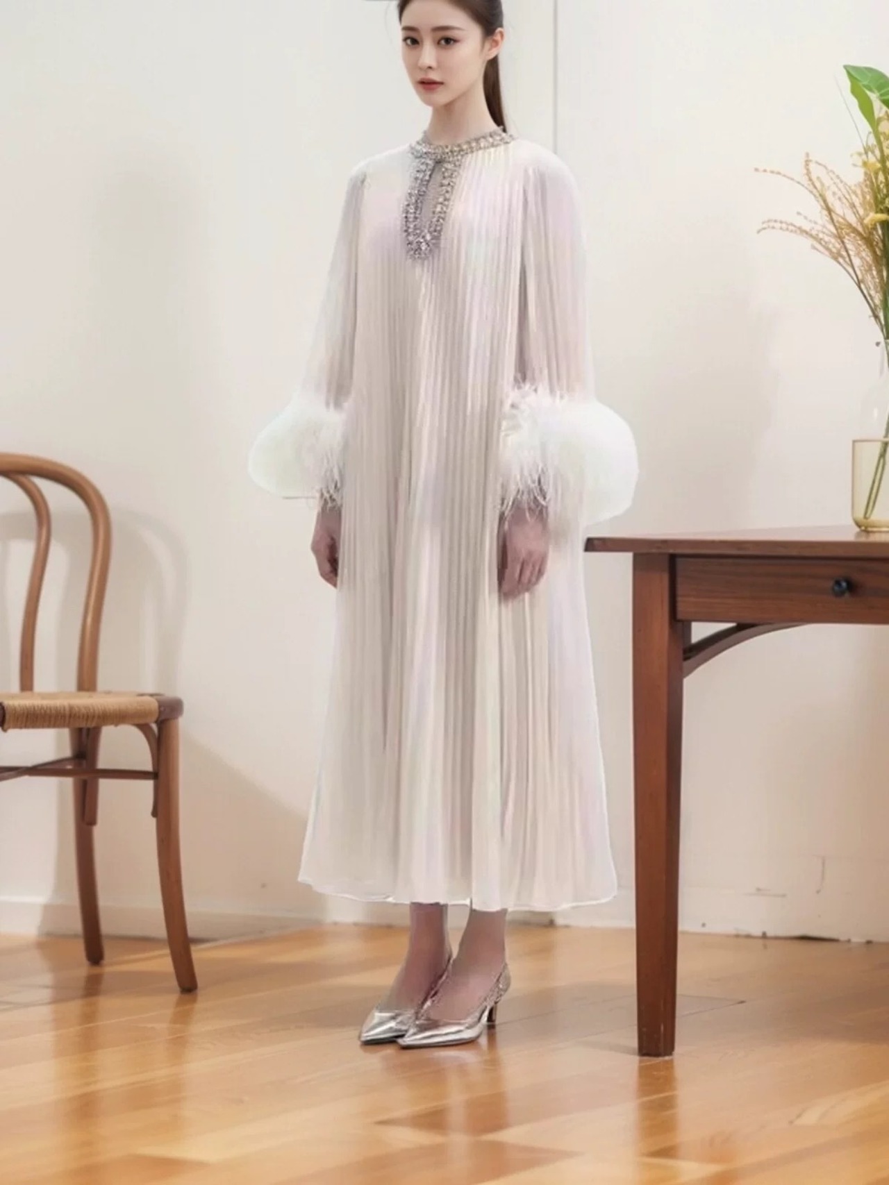 【XLまで】水色 白 ピンク プリーツ ワンピース ラインストーン ゆったり パーティー ドレス 緑