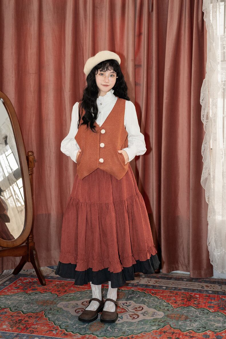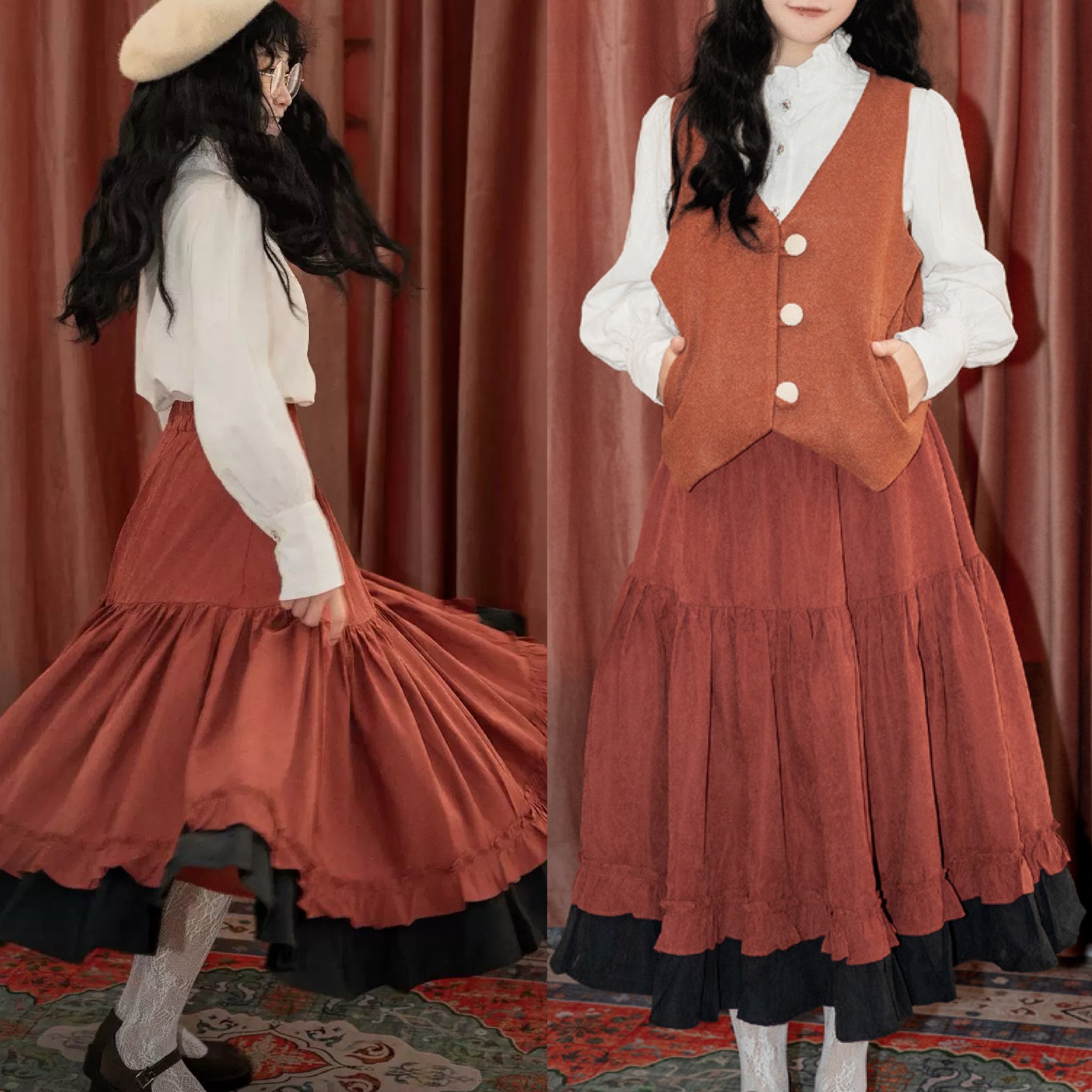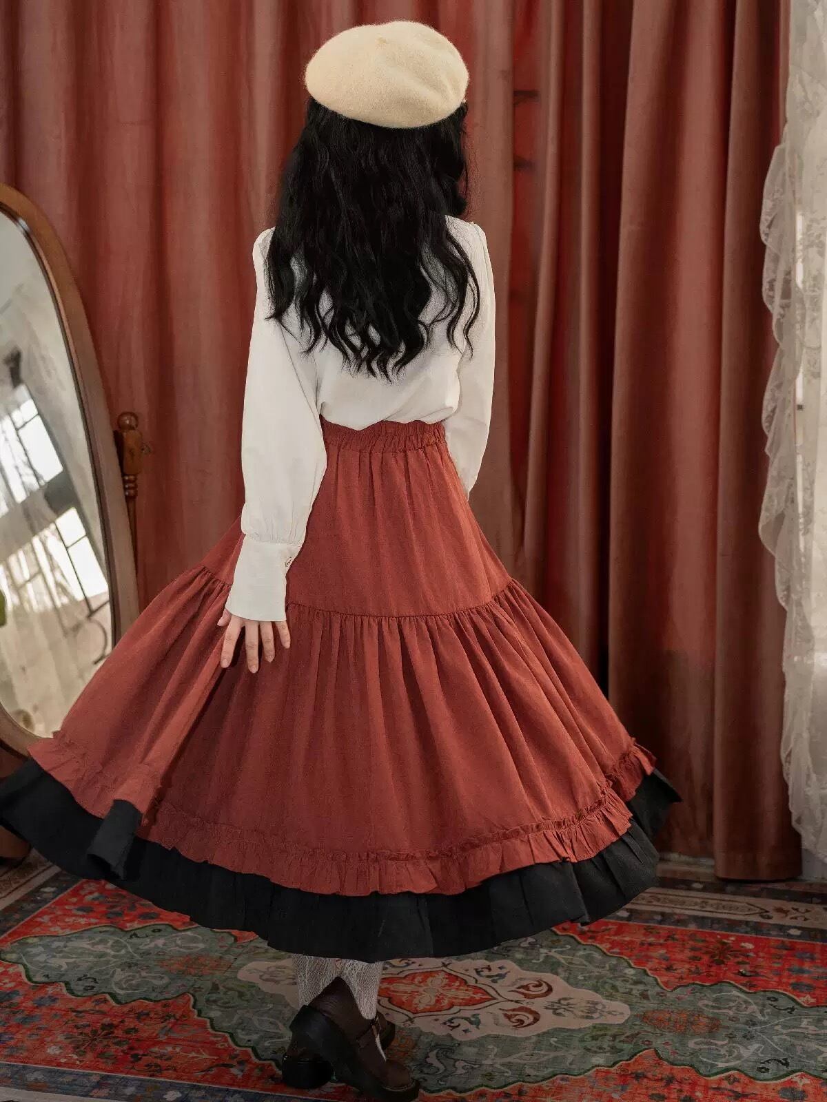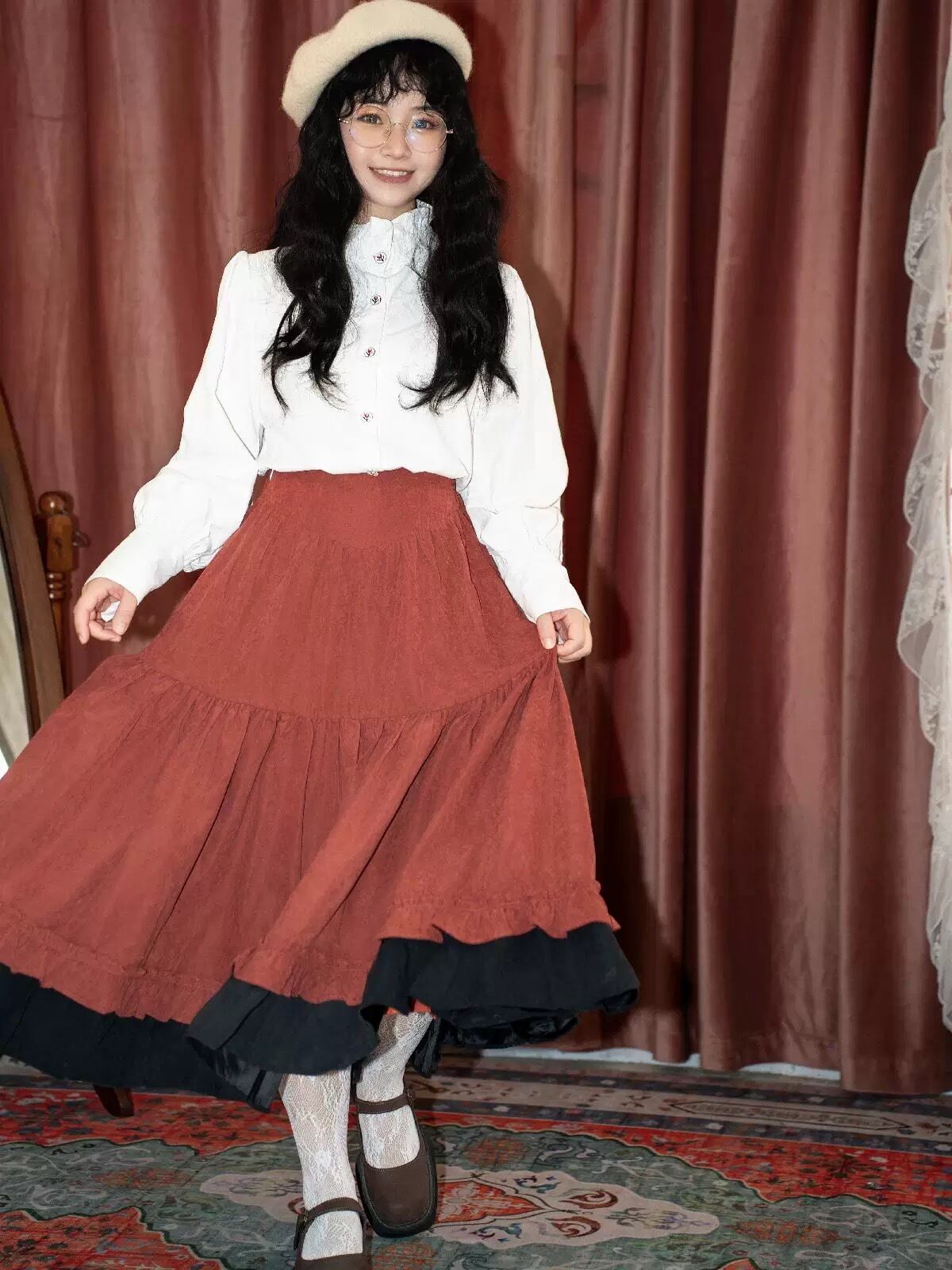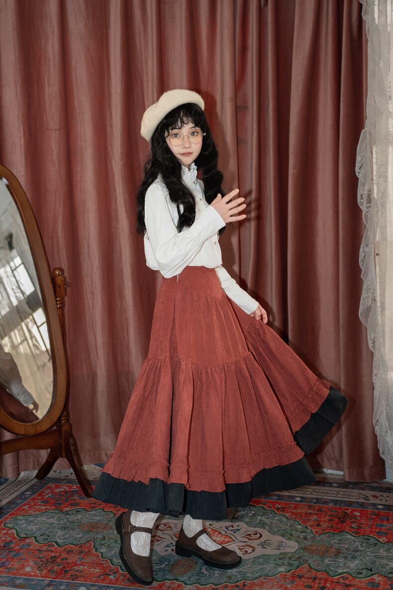 茶色 スカート フレア マキシ ボトムス ガーリー 可愛い 原宿