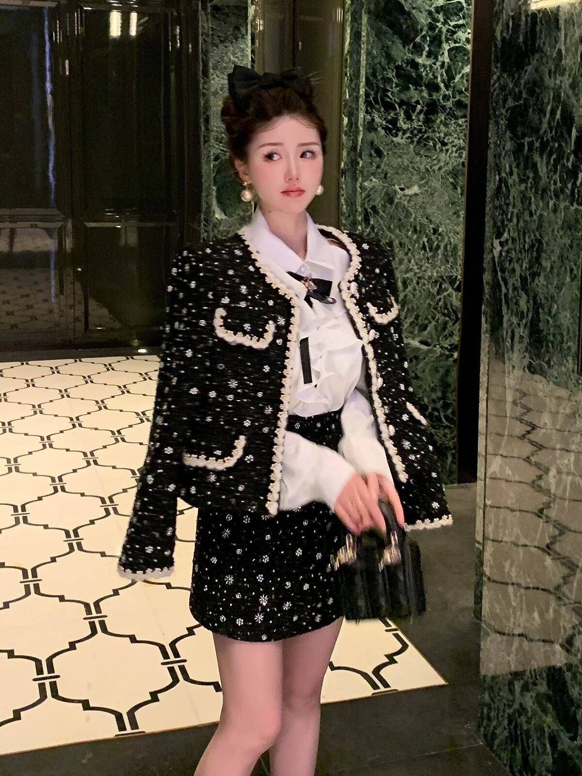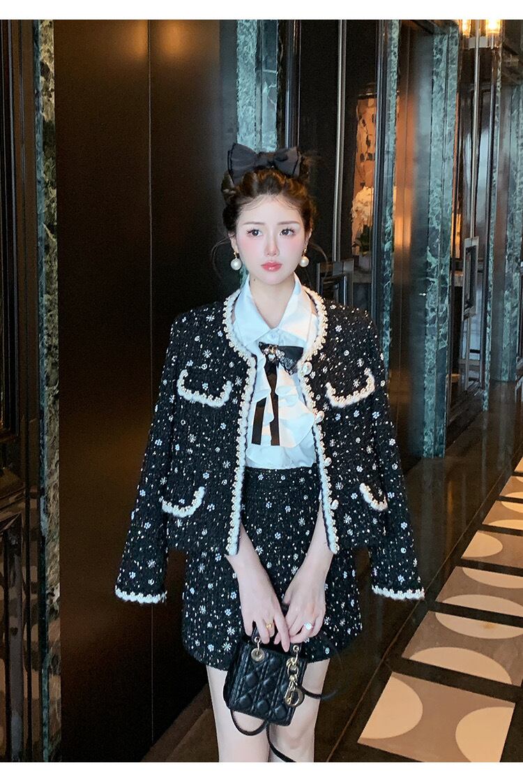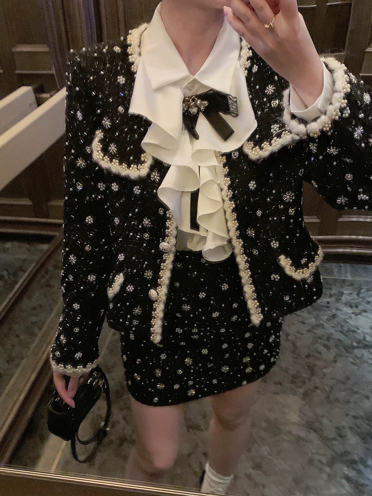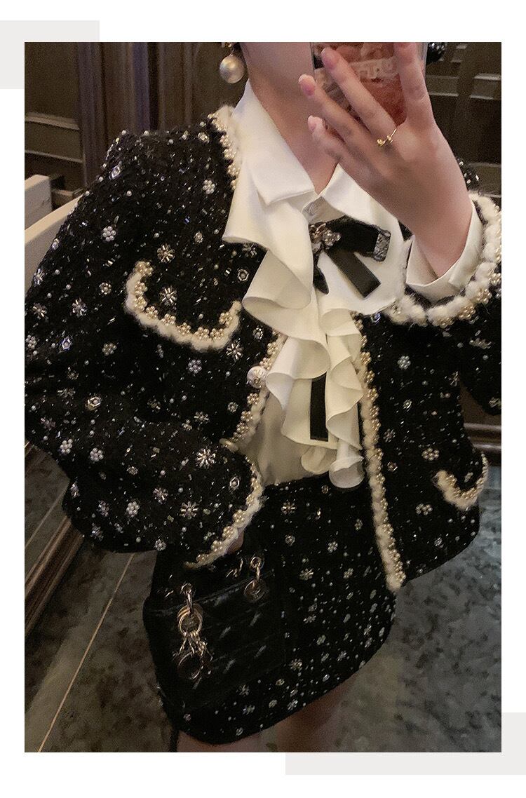 【ジャケット】黒 アウター カーディガン 可愛い 水玉 ドット 渋谷 スーツ