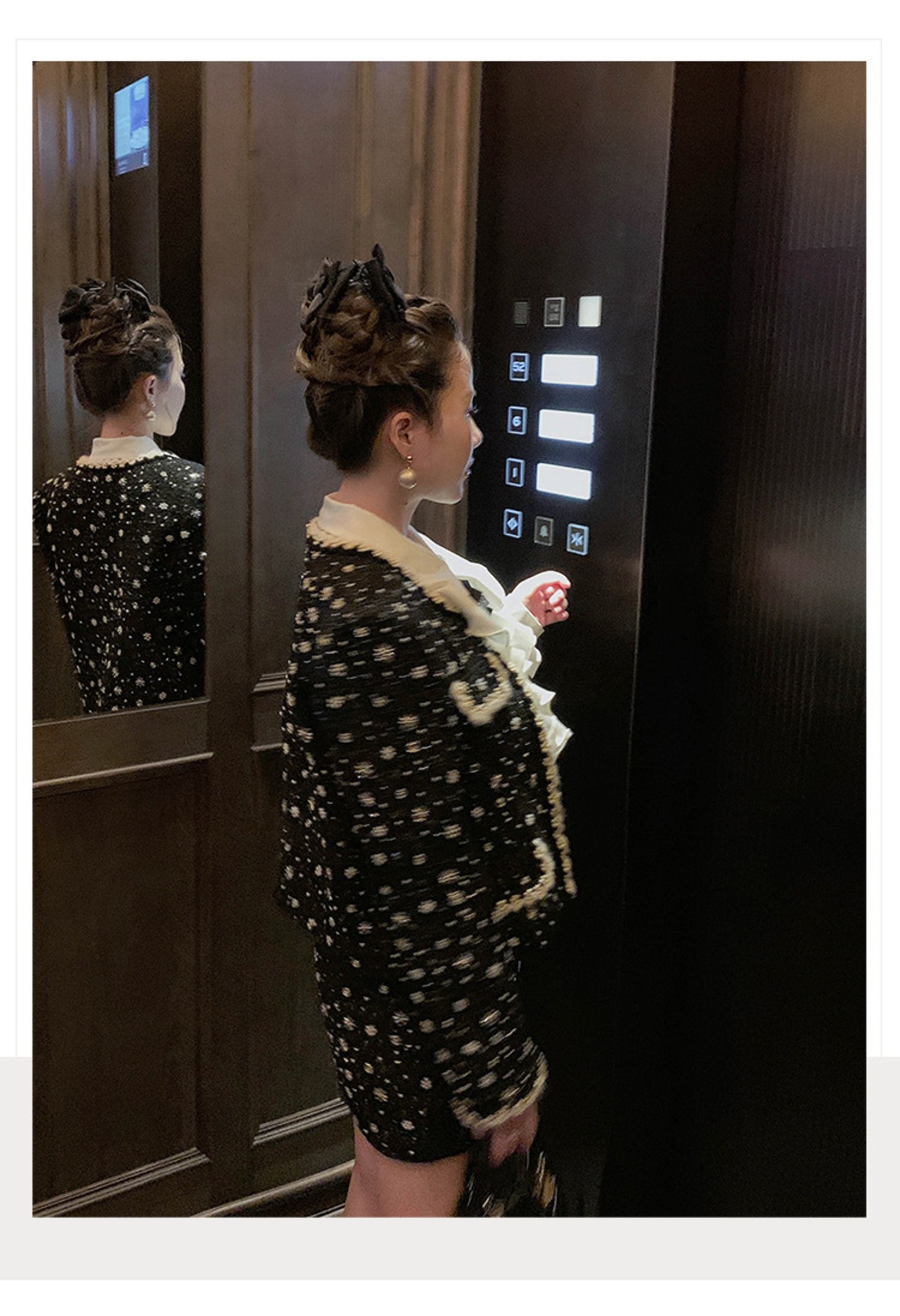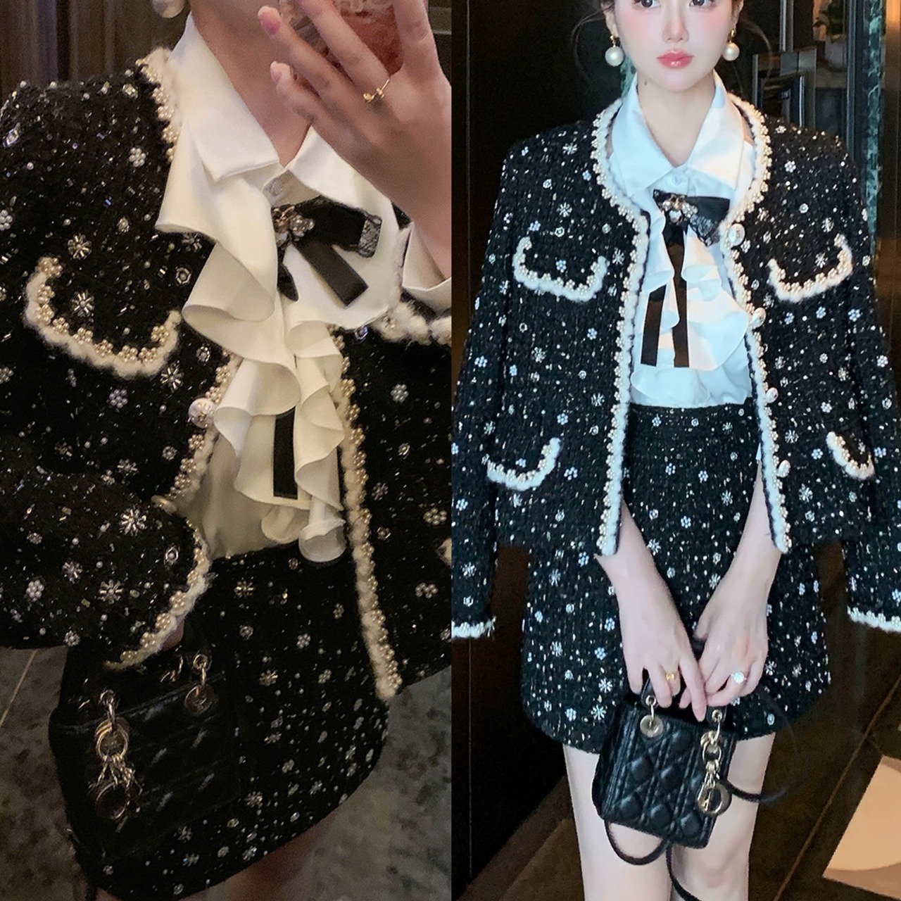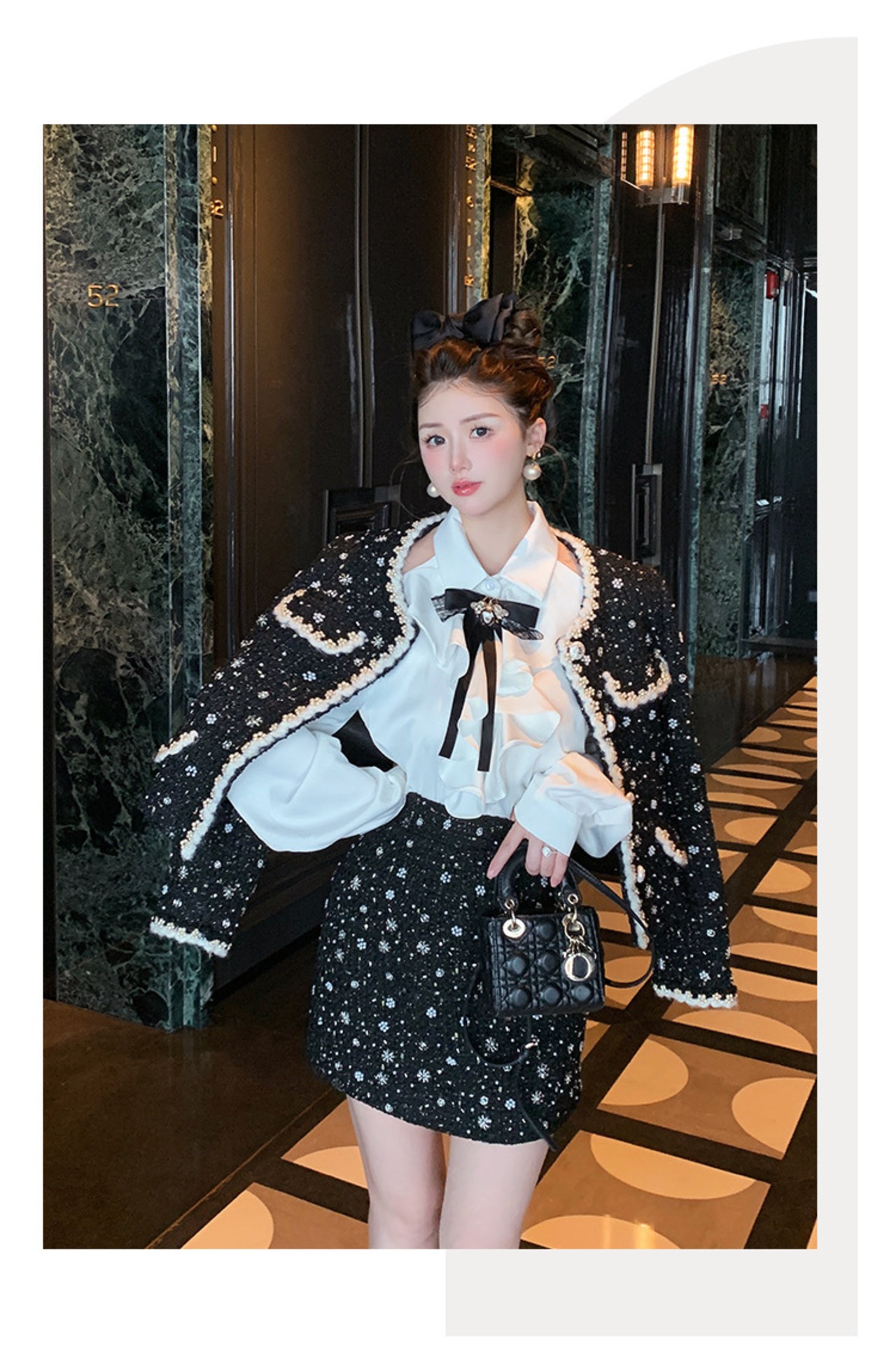 【ジャケット】黒 アウター カーディガン 可愛い 水玉 ドット 渋谷 スーツ