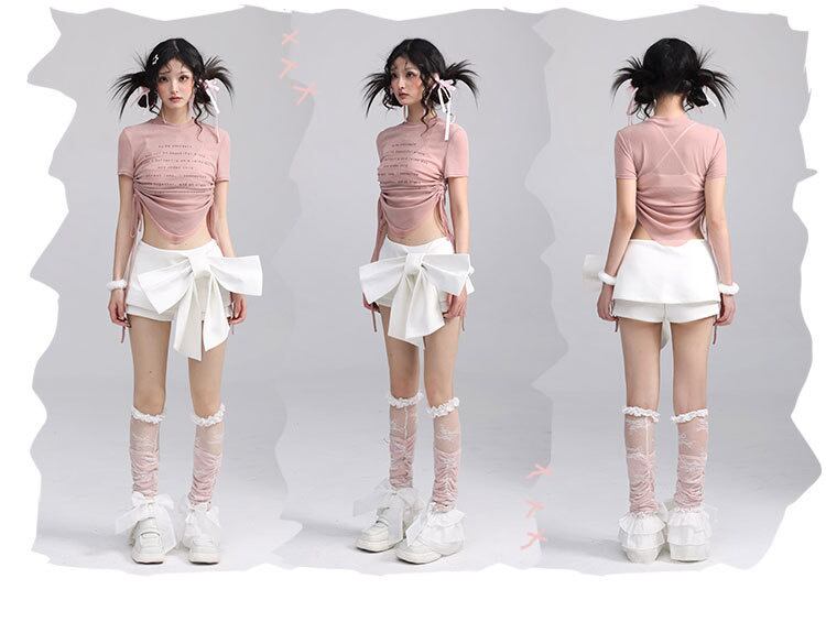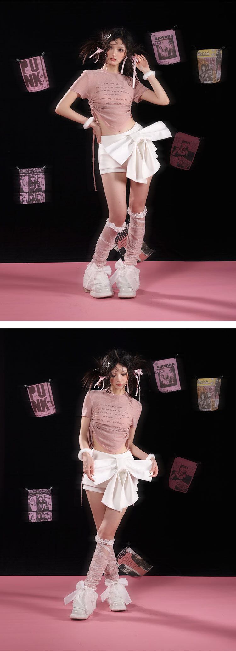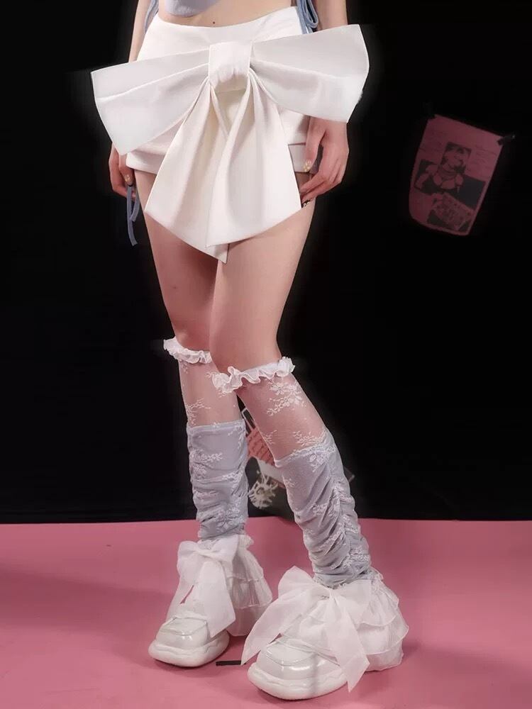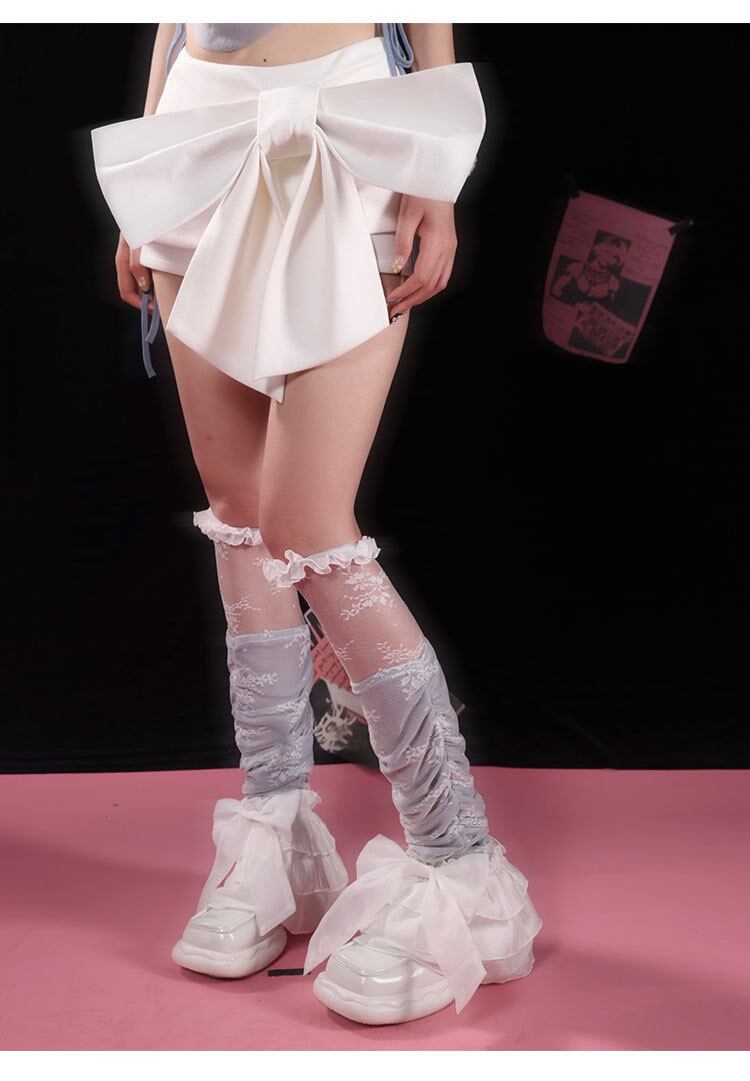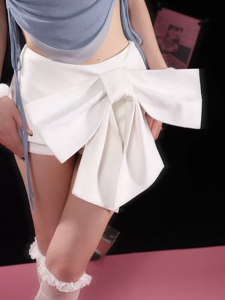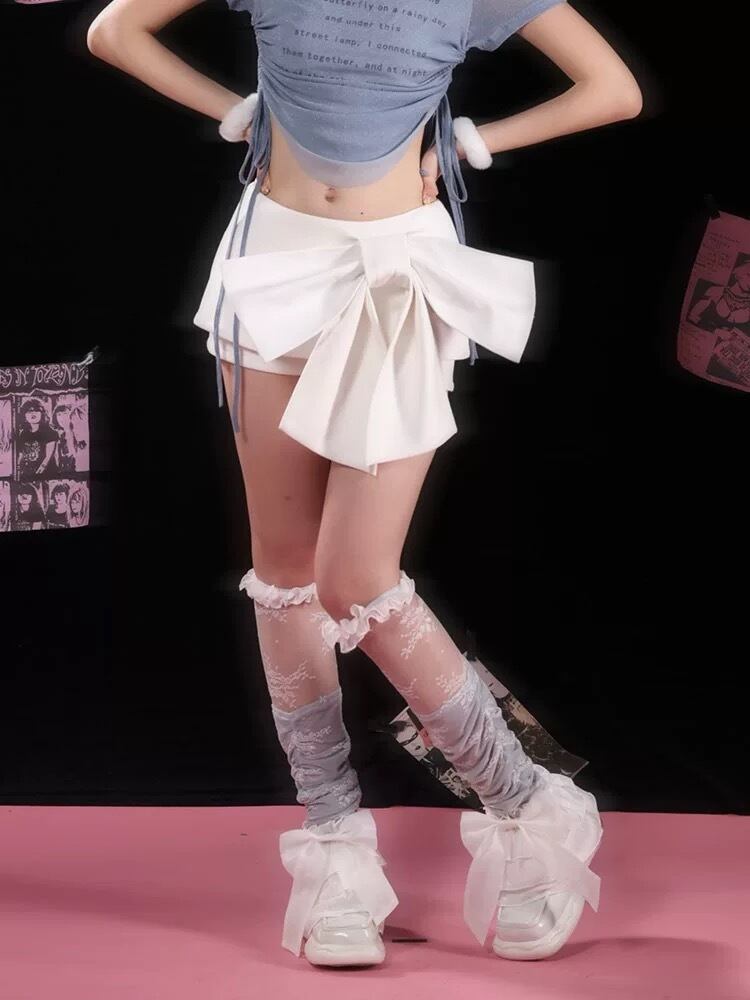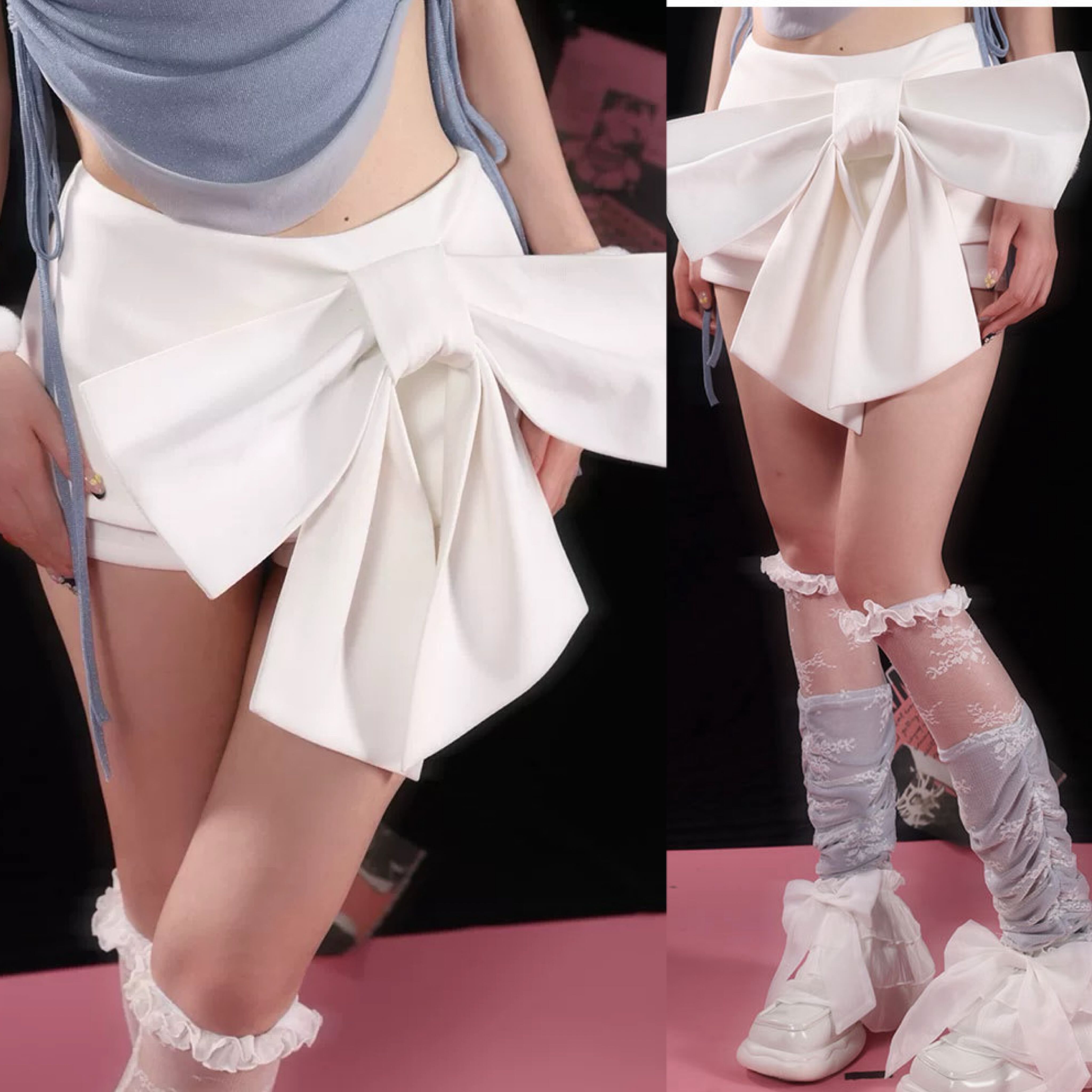 【ボトムス】スカート リボン 白 ホワイト ガーリー 可愛い 原宿 ミニ シンプル ホワイト