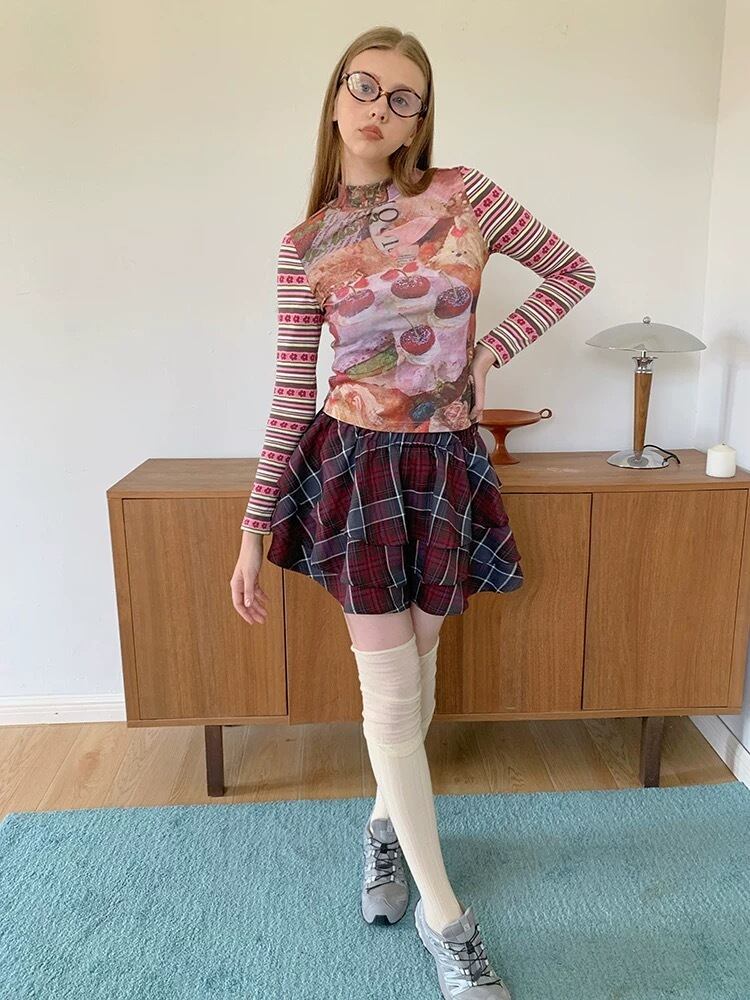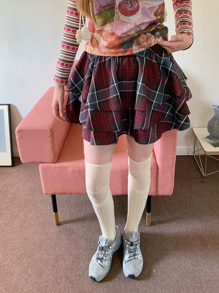 【スカート】赤 チェック ボトムス ガーリー スクール 原宿
