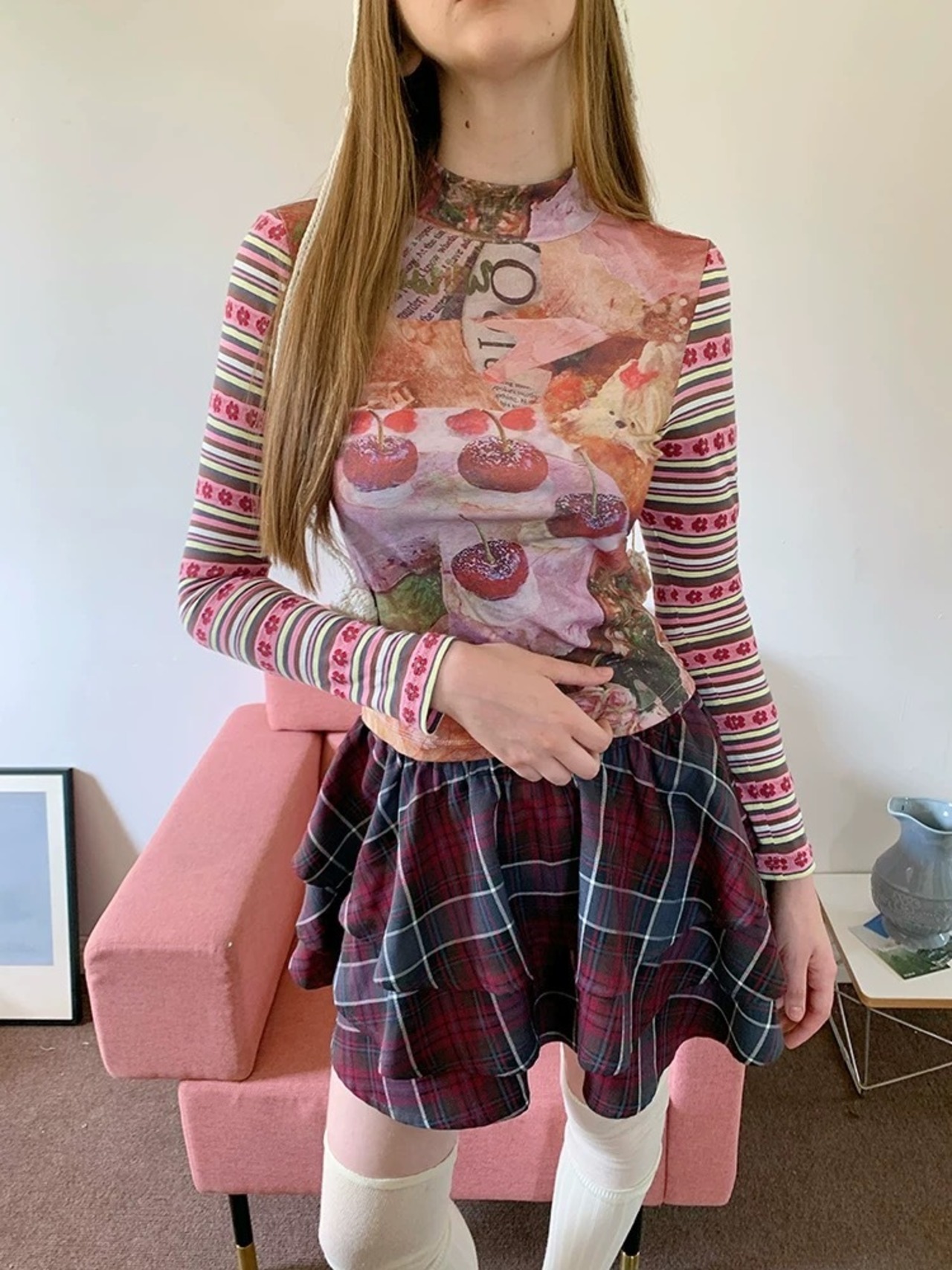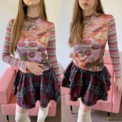 【トップス】ブラウス 可愛い チェック ピンク ガーリー 原宿