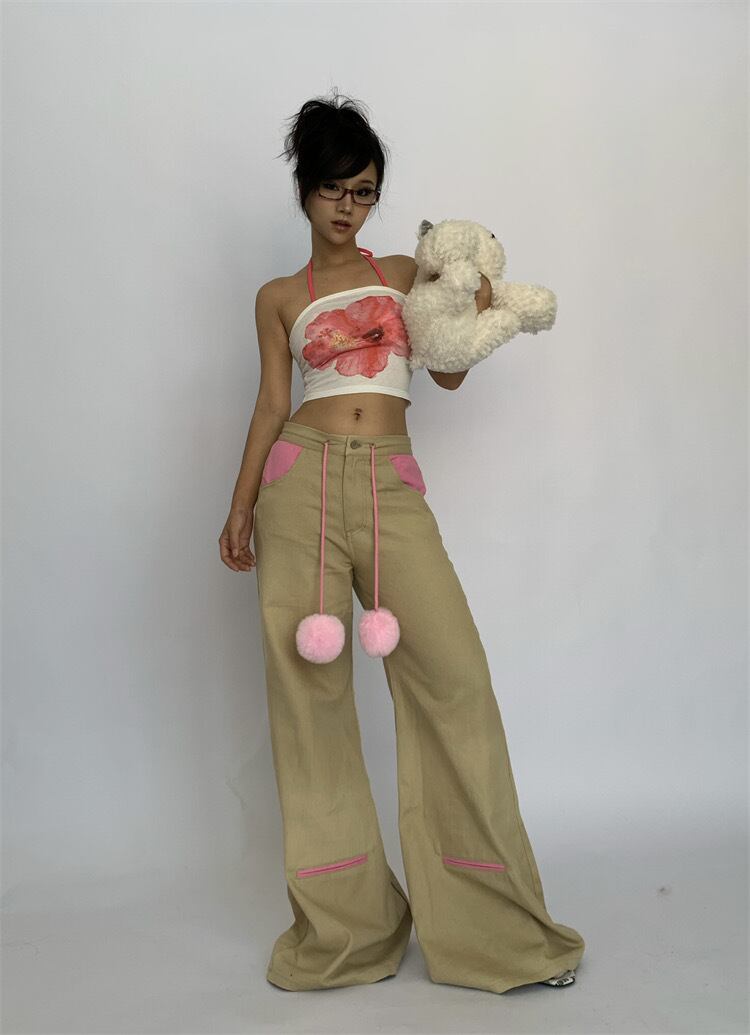 ボトムス ピンク ベージュ カーキ パンツ ズボン ストリート ポンポン 渋谷 原宿 ダンス