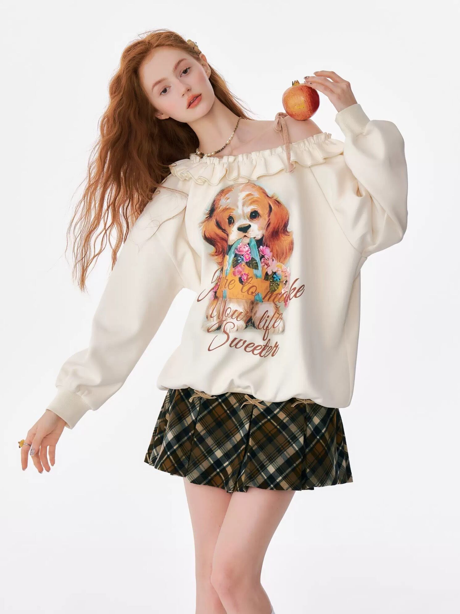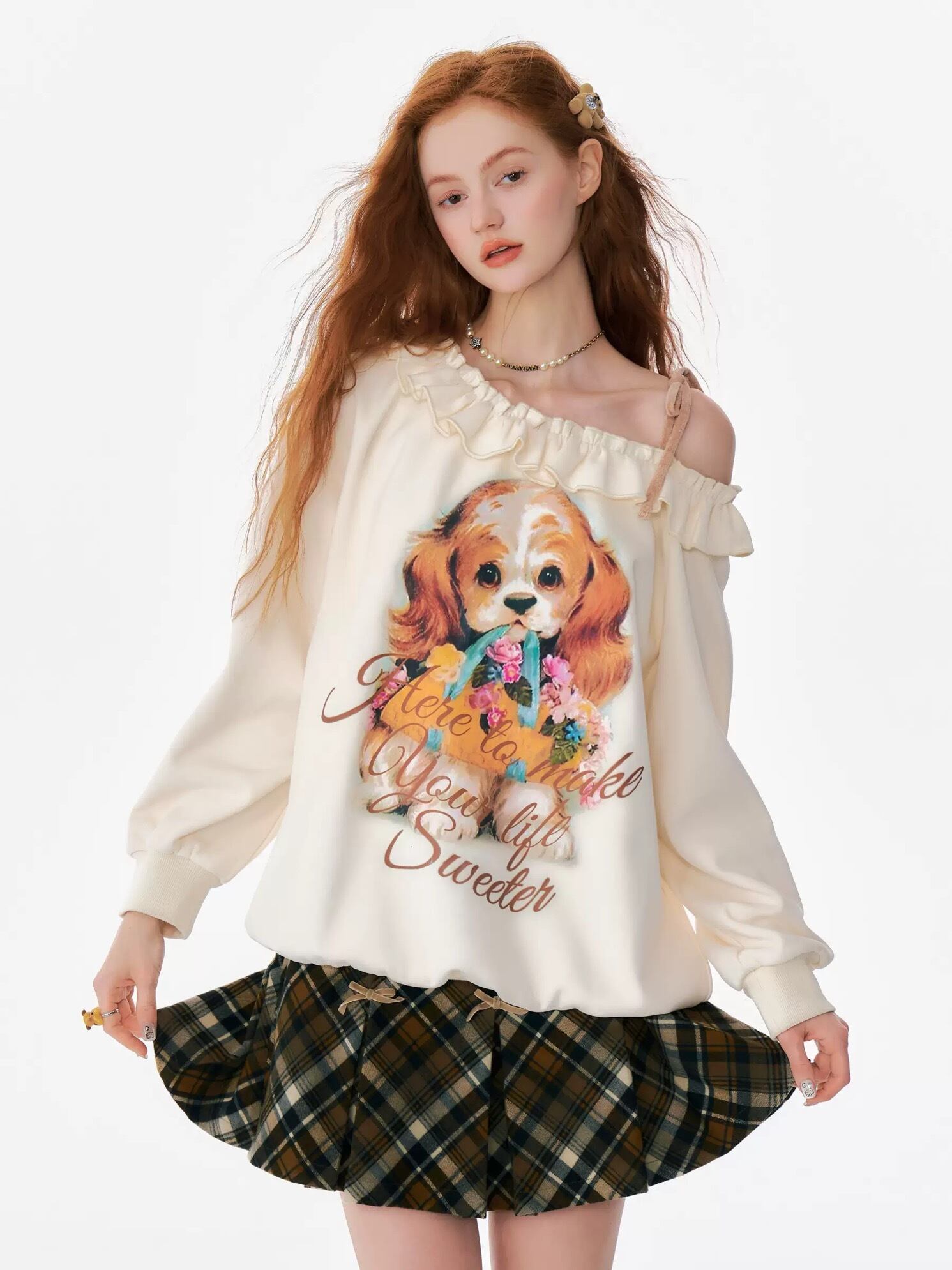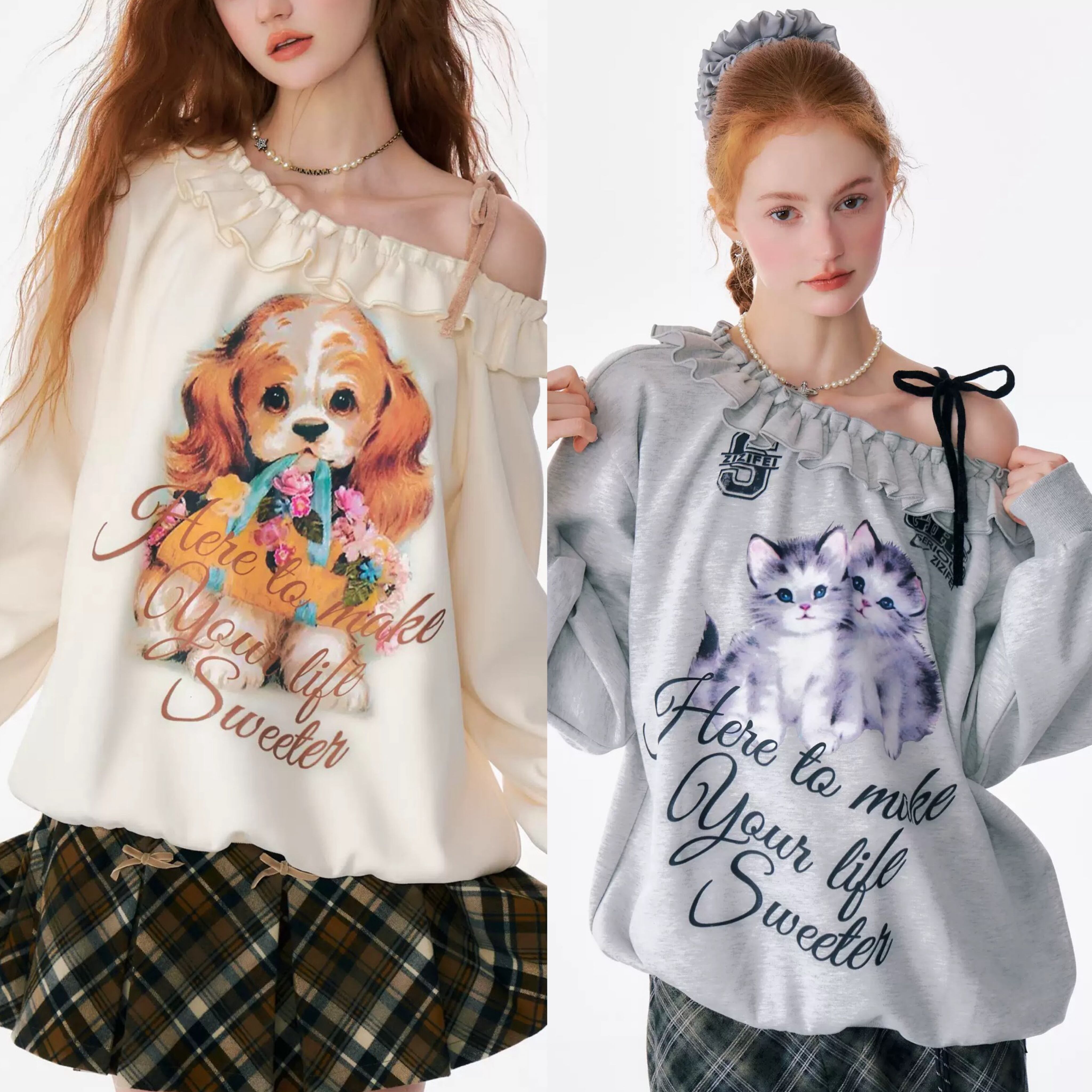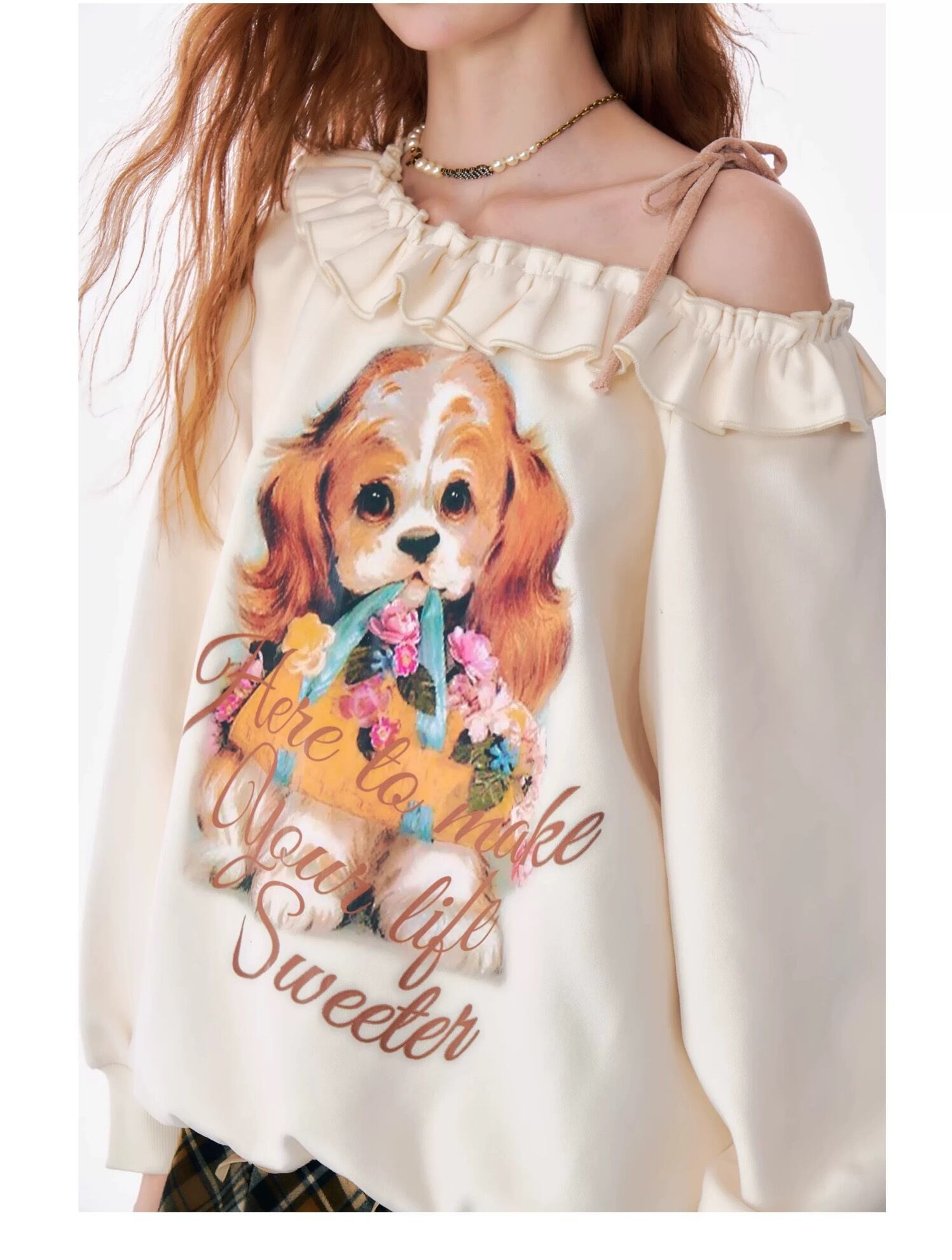 オフショルダー オレンジ いぬ ねこ ブラウス スウェット 原宿 ガーリー