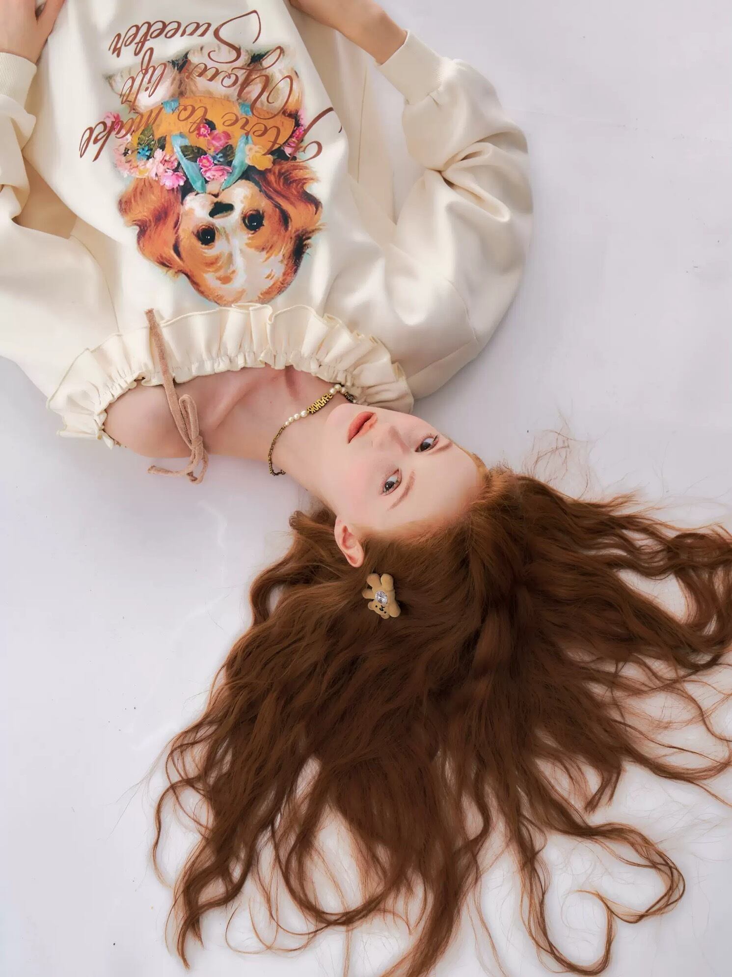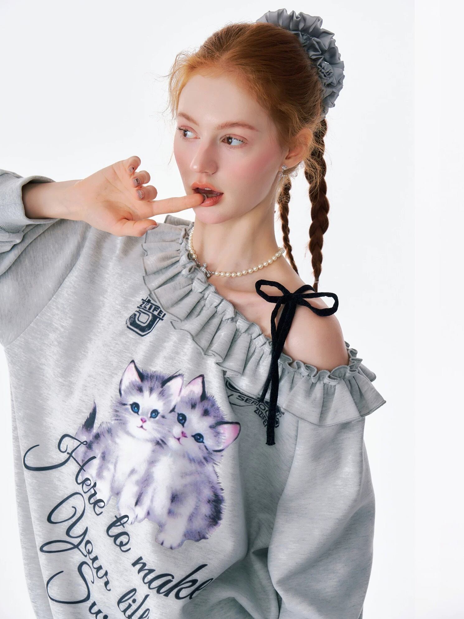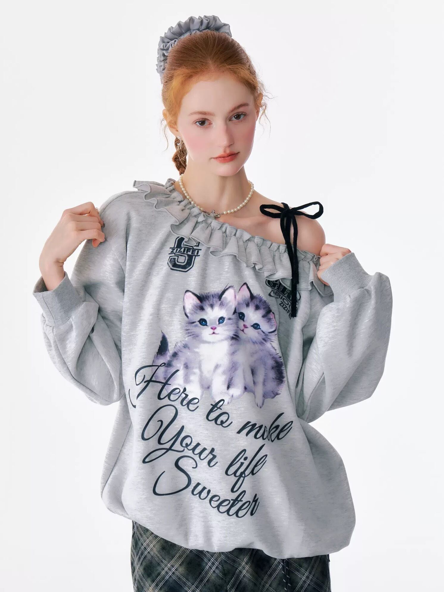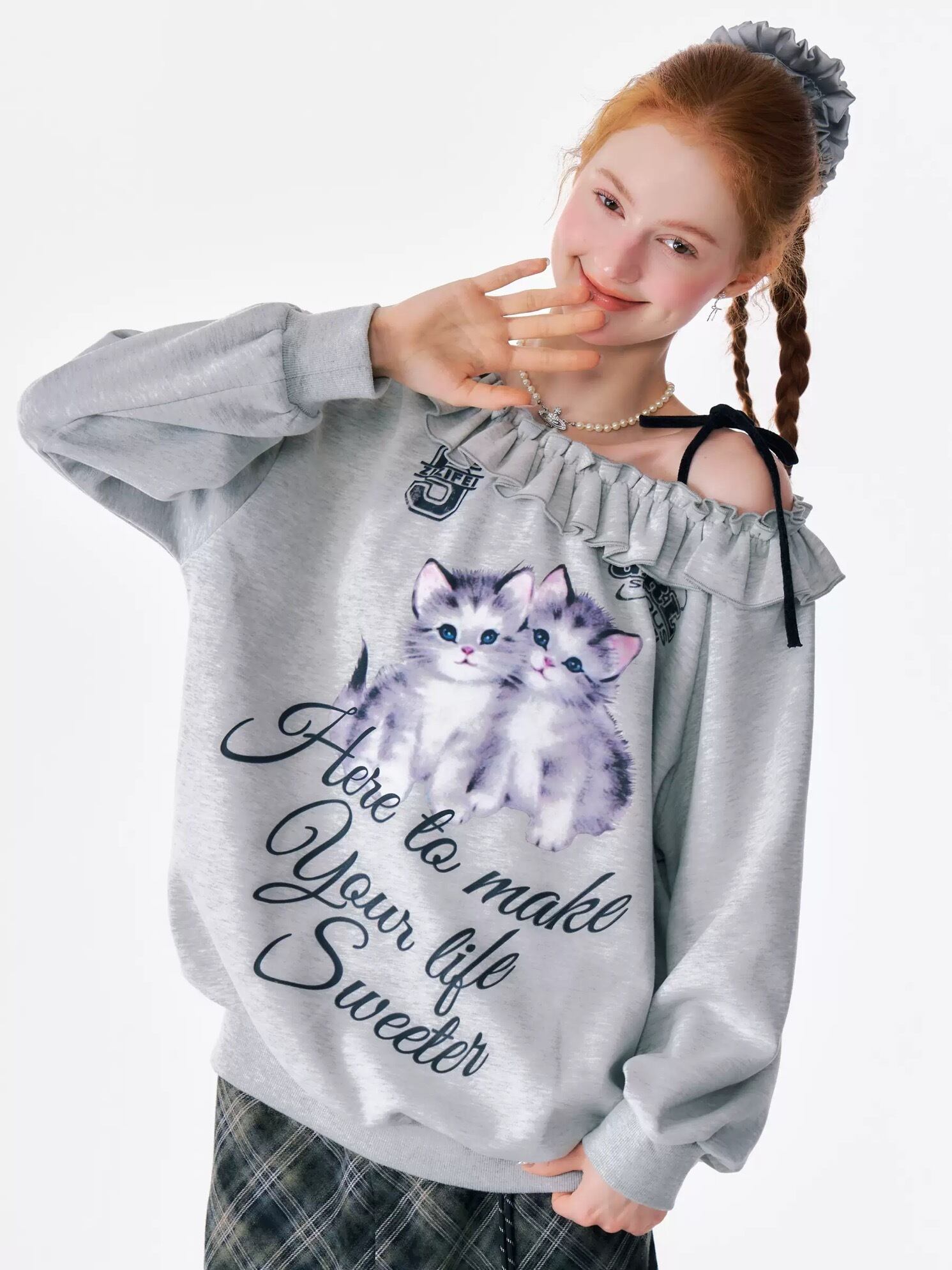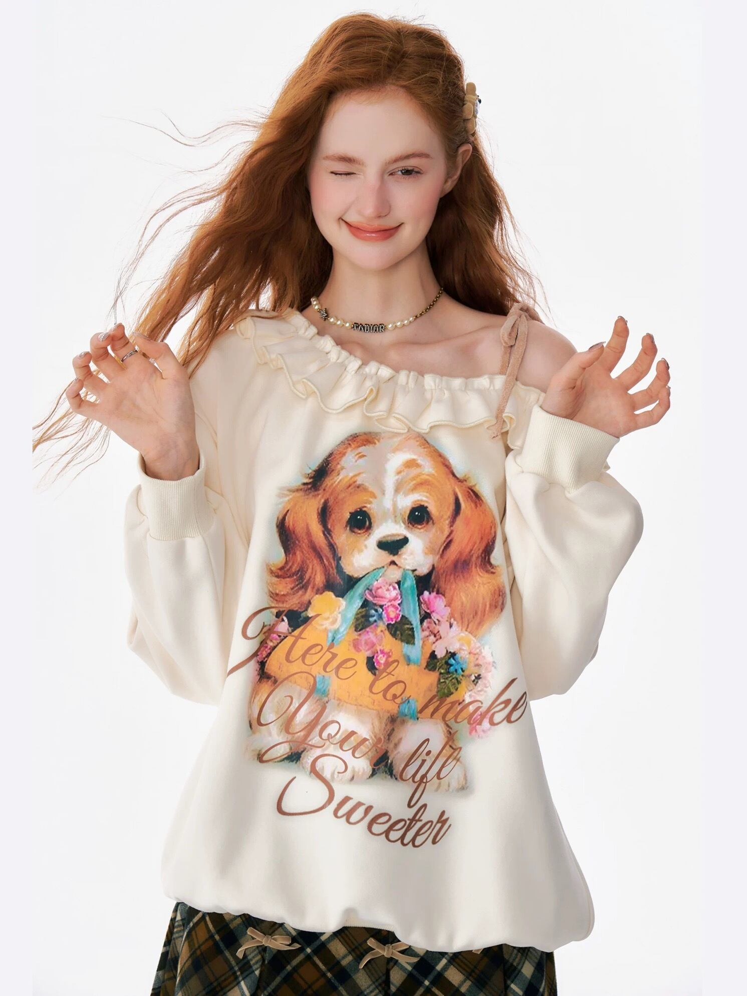 オフショルダー オレンジ いぬ ねこ ブラウス スウェット 原宿 ガーリー