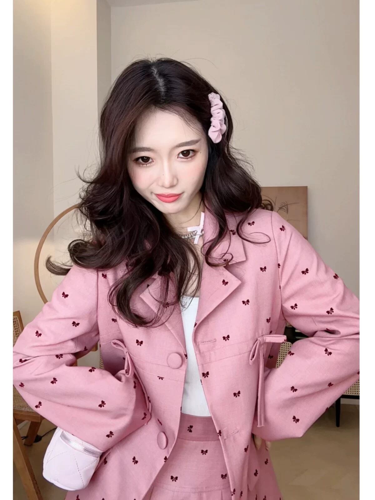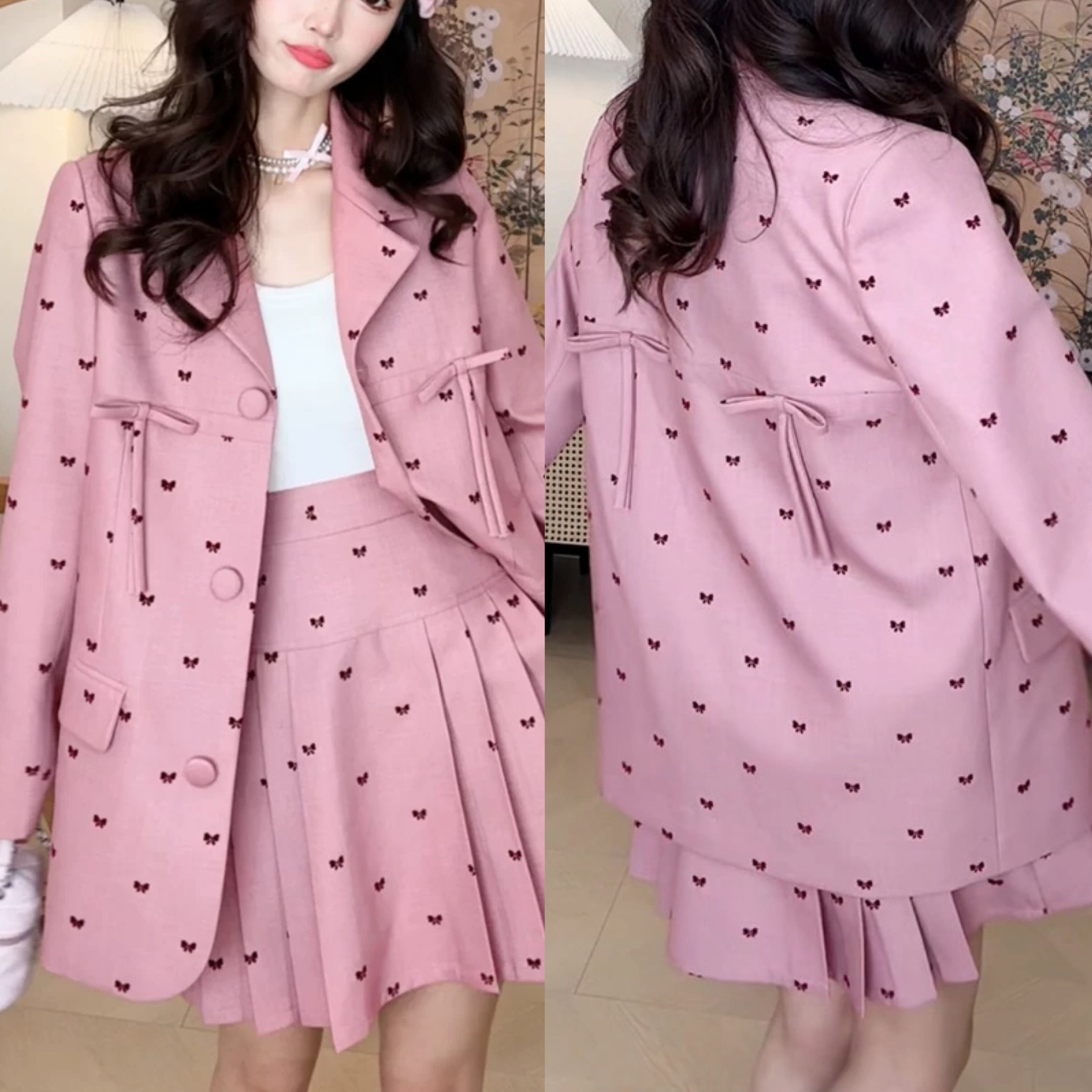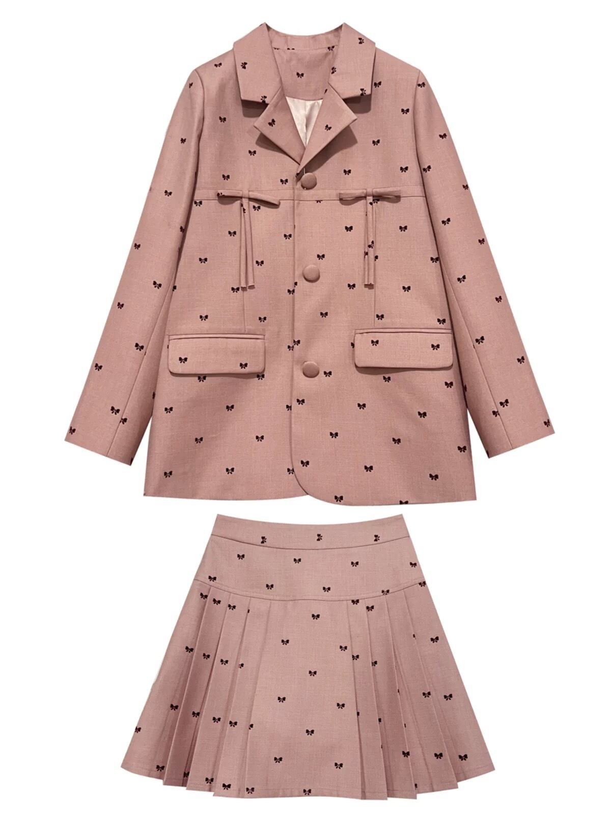 【セットアップ】ピンク ガーリー スーツ ツーピース リボン 可愛い ジャケット ミニスカート 可愛い