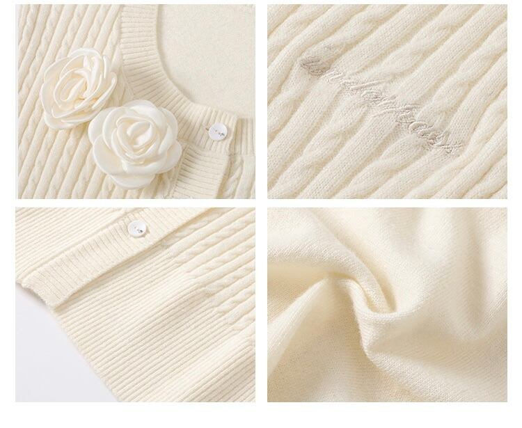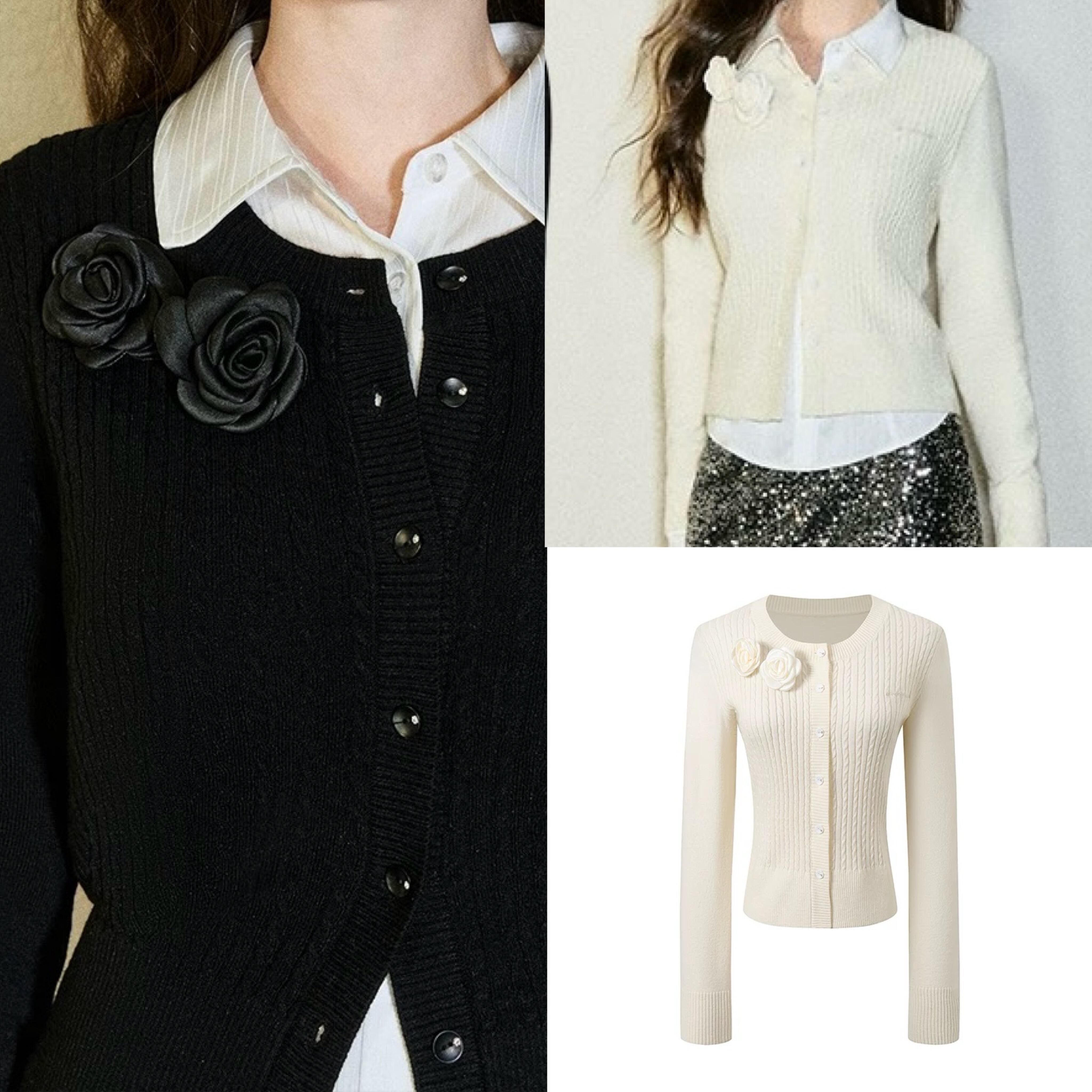 カーディガン 白 黒 カメリア 薔薇 フラワー セーター トップス ガーリー お嬢様