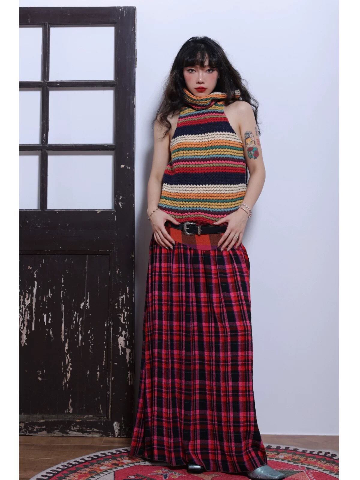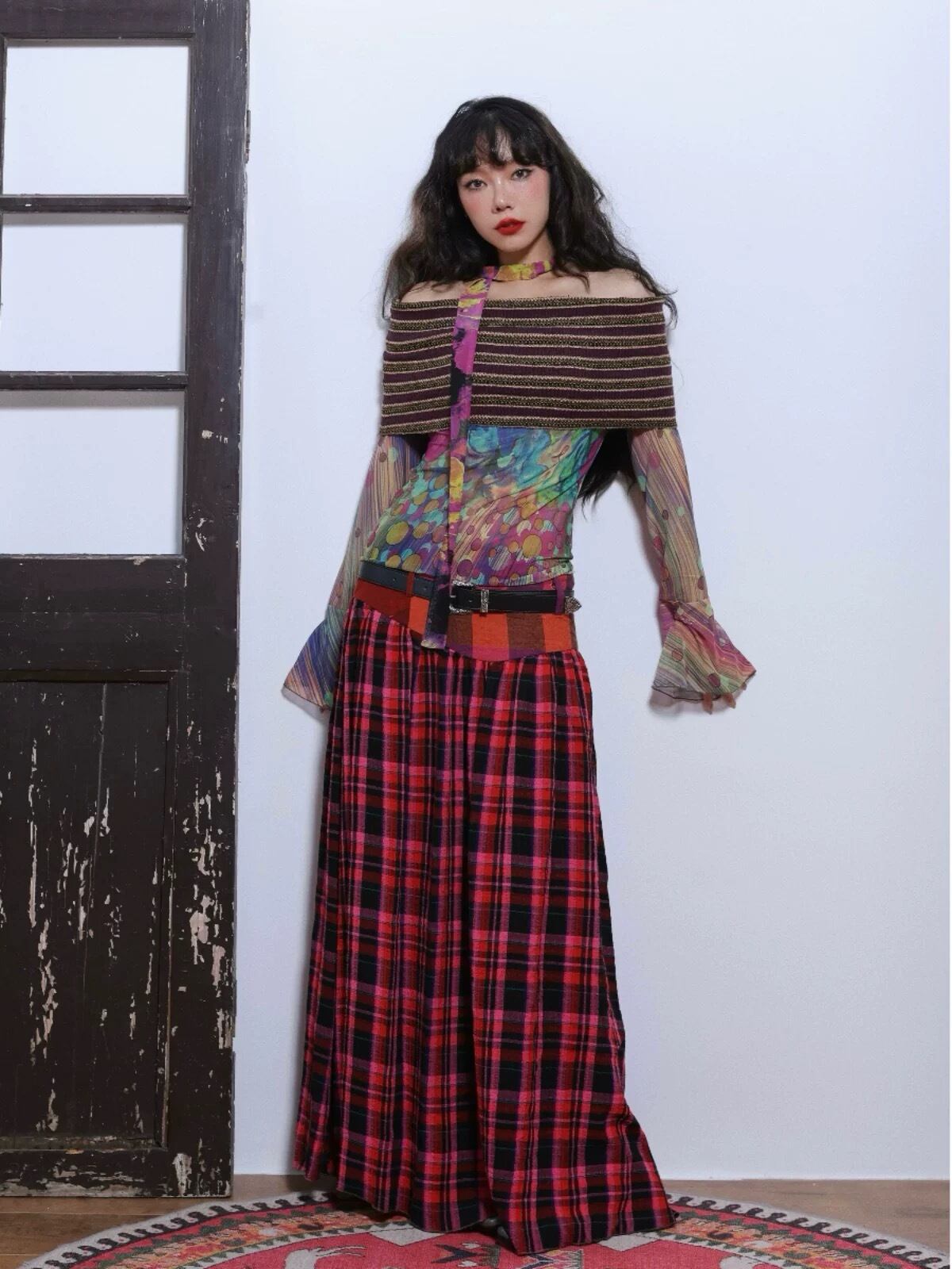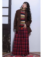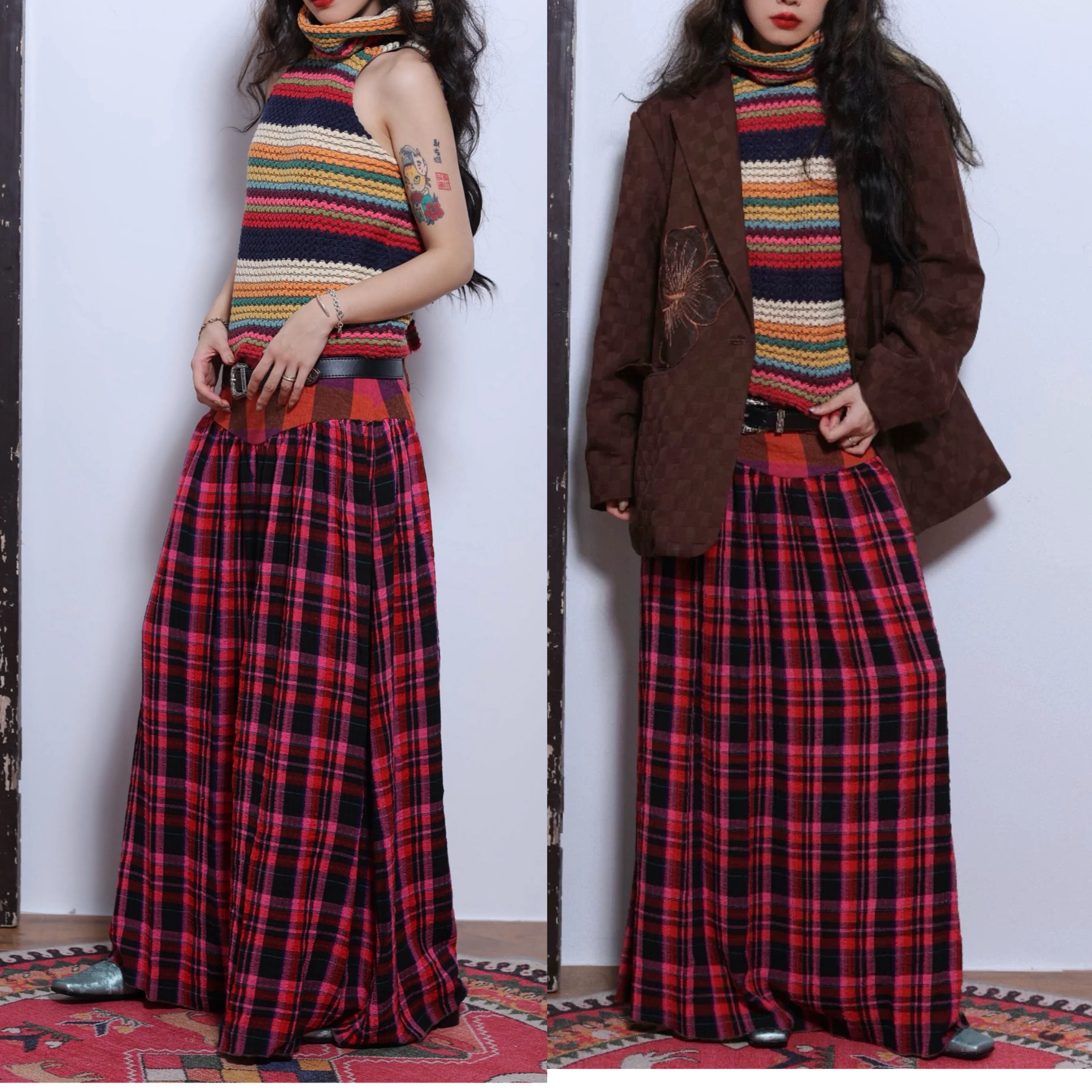 赤 黒 チェック 太め ボトムス ズボン パンツ スカート ロック マキシ