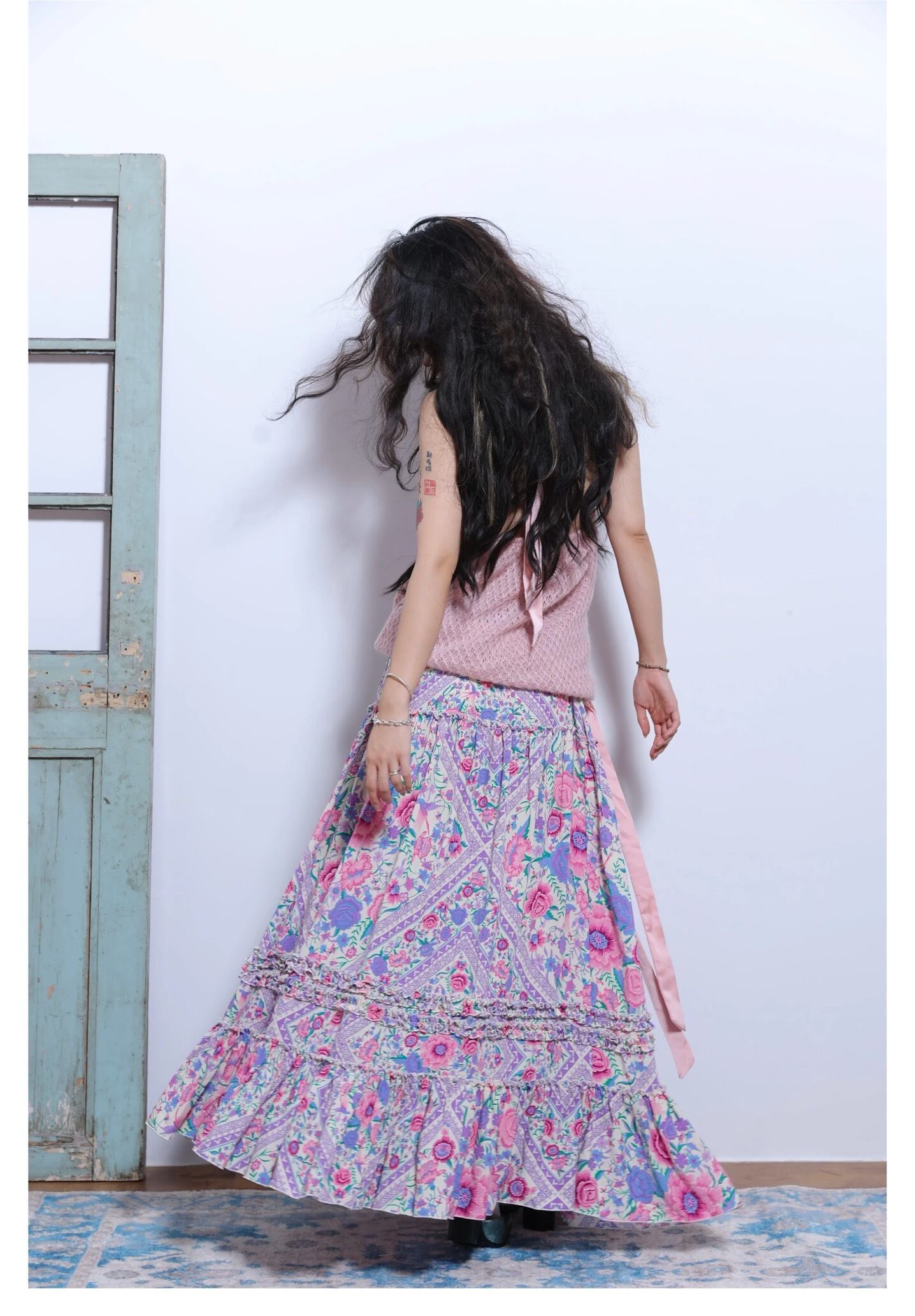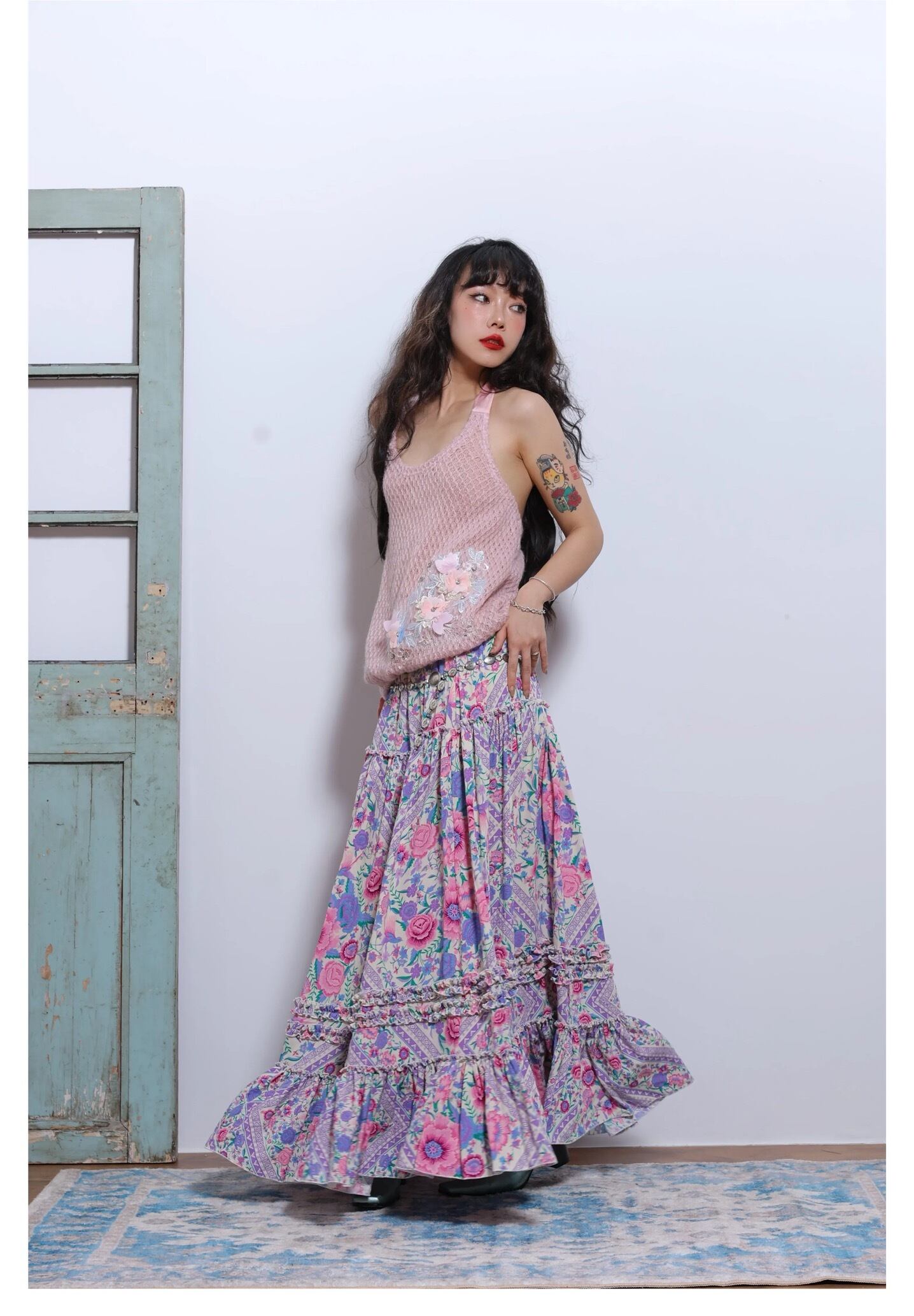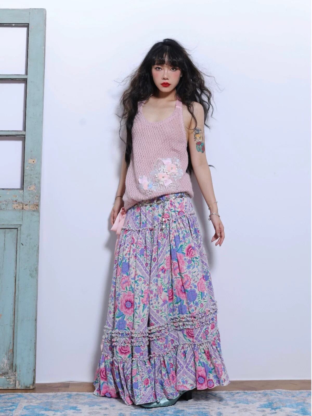 ピンク トップス ホルダーネック 花柄 フラワー セーター ブラウス トップス カーディガン