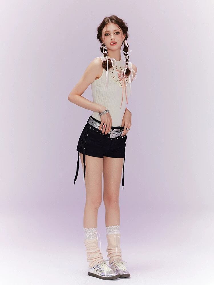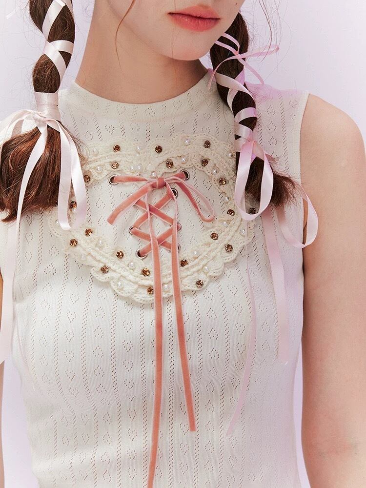 白 ハート トップス ブラウス リボン ガーリー 原宿 姫 カーディガン