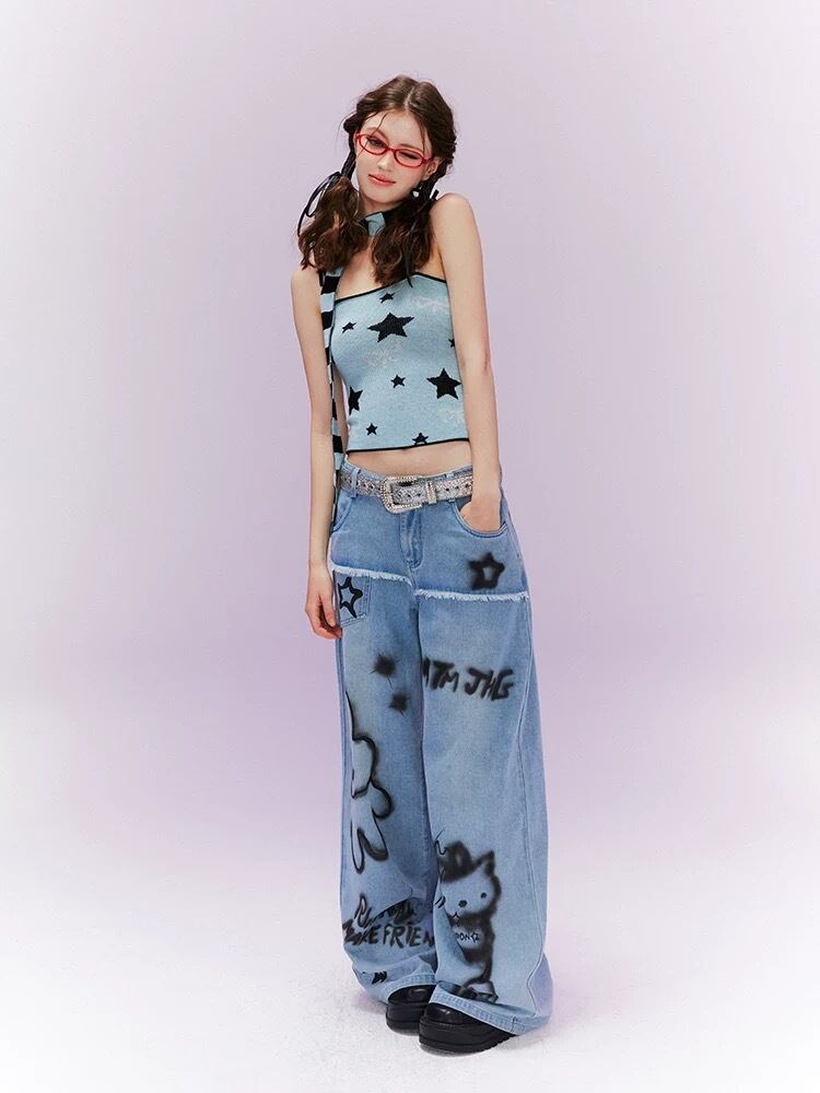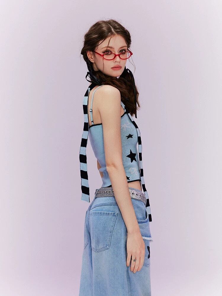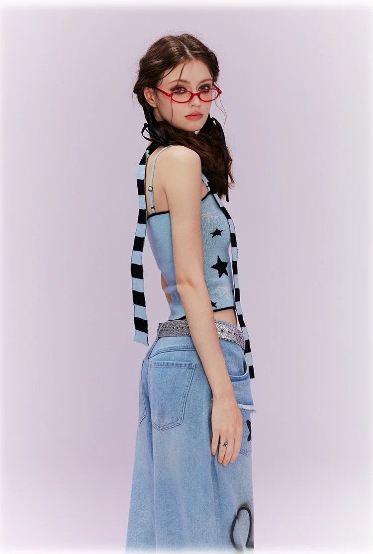 マフラー スカーフ 水色 トップス ブラウス ダンス 星 クラブ ベアトップ チューブトップ 原宿 ストリート