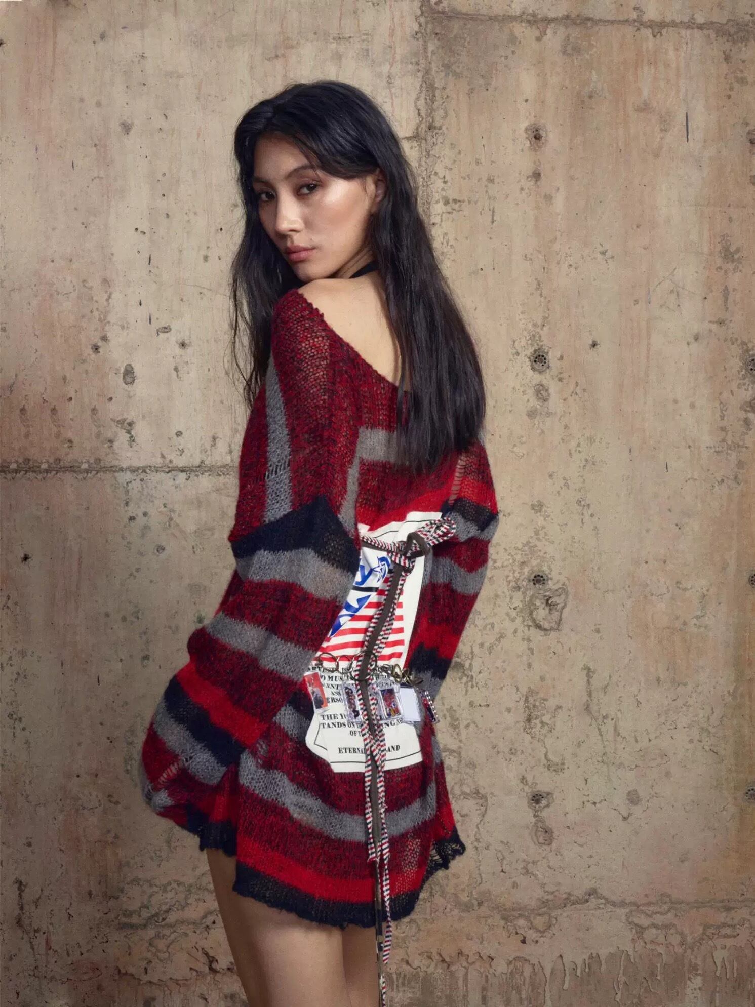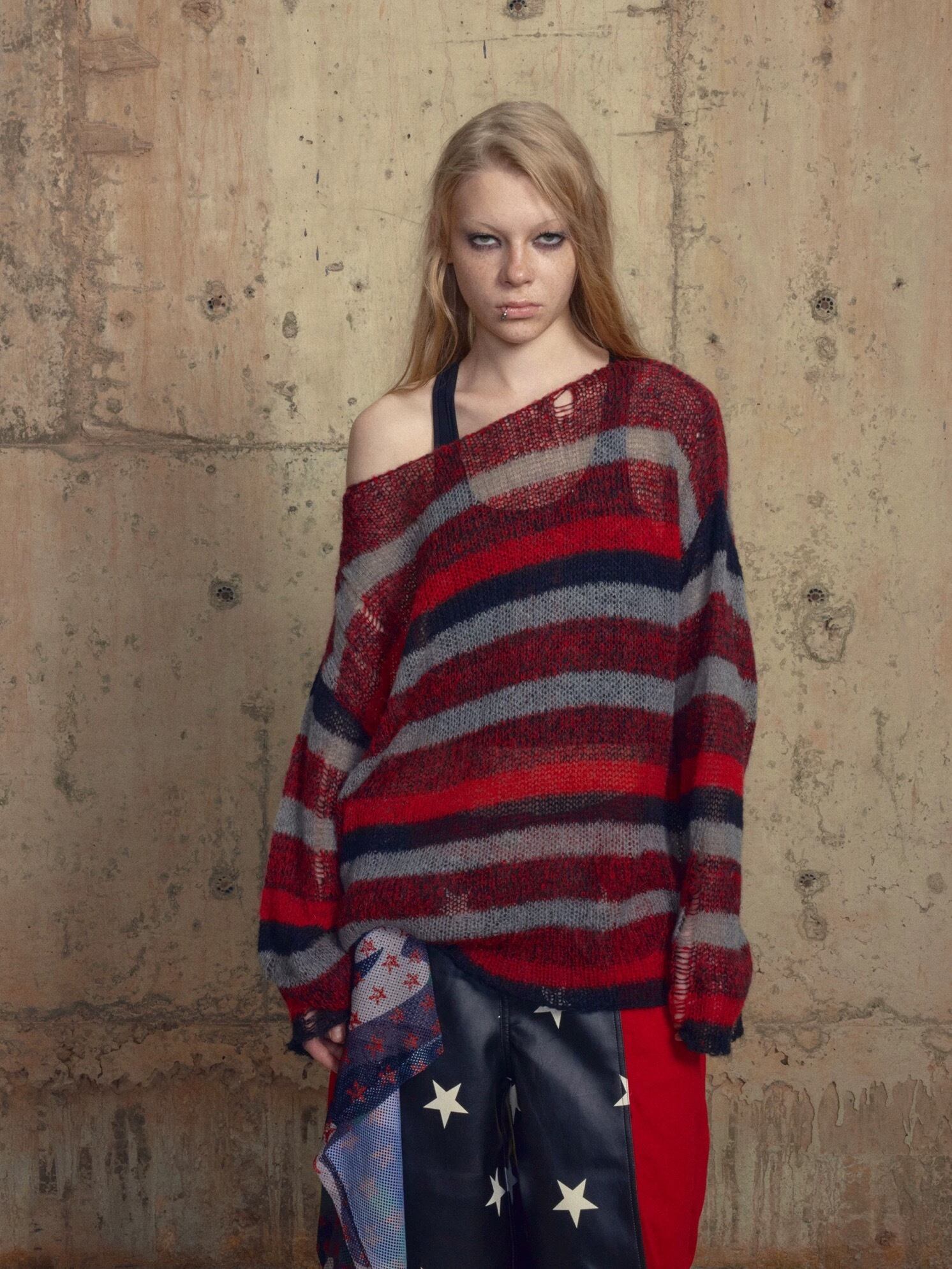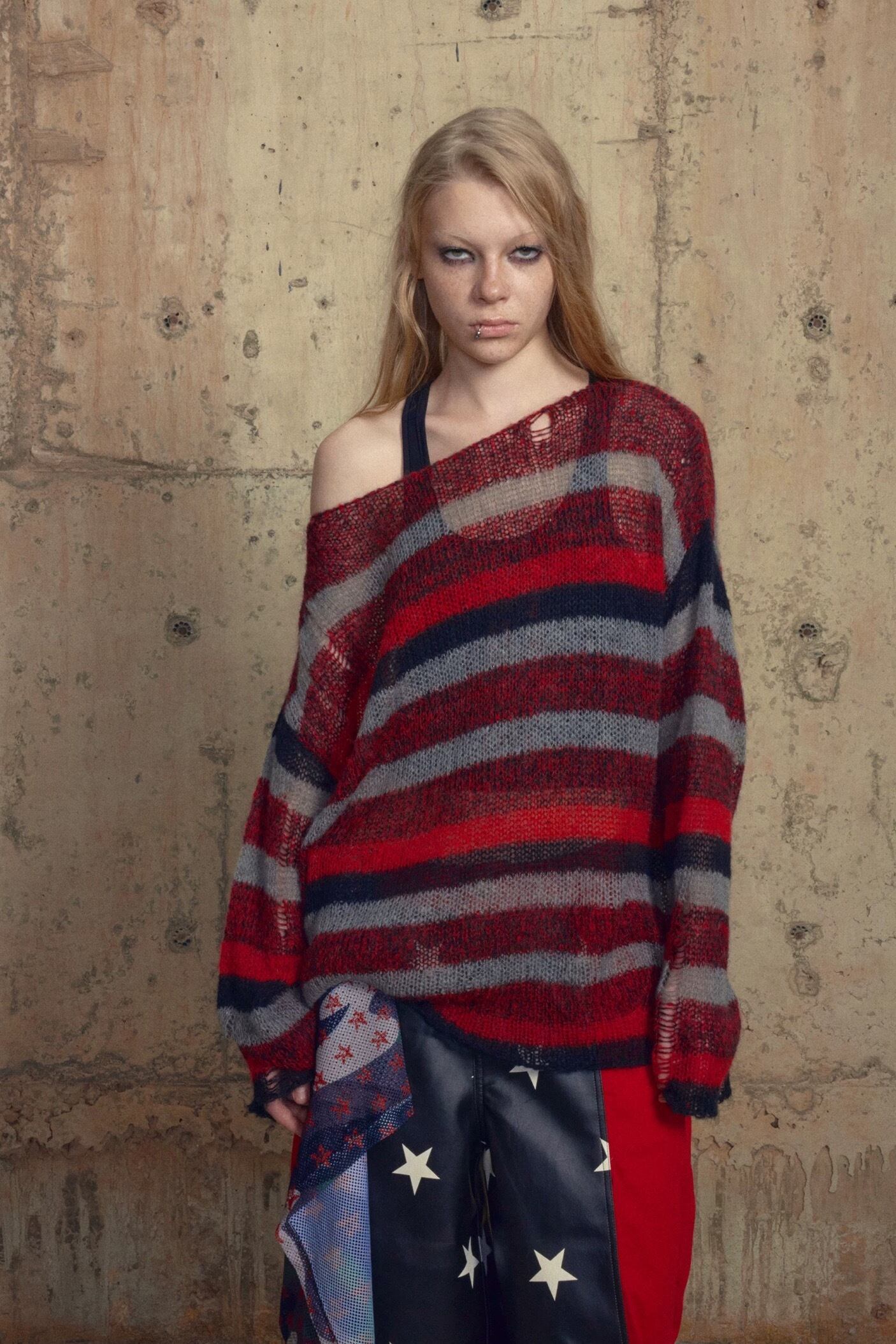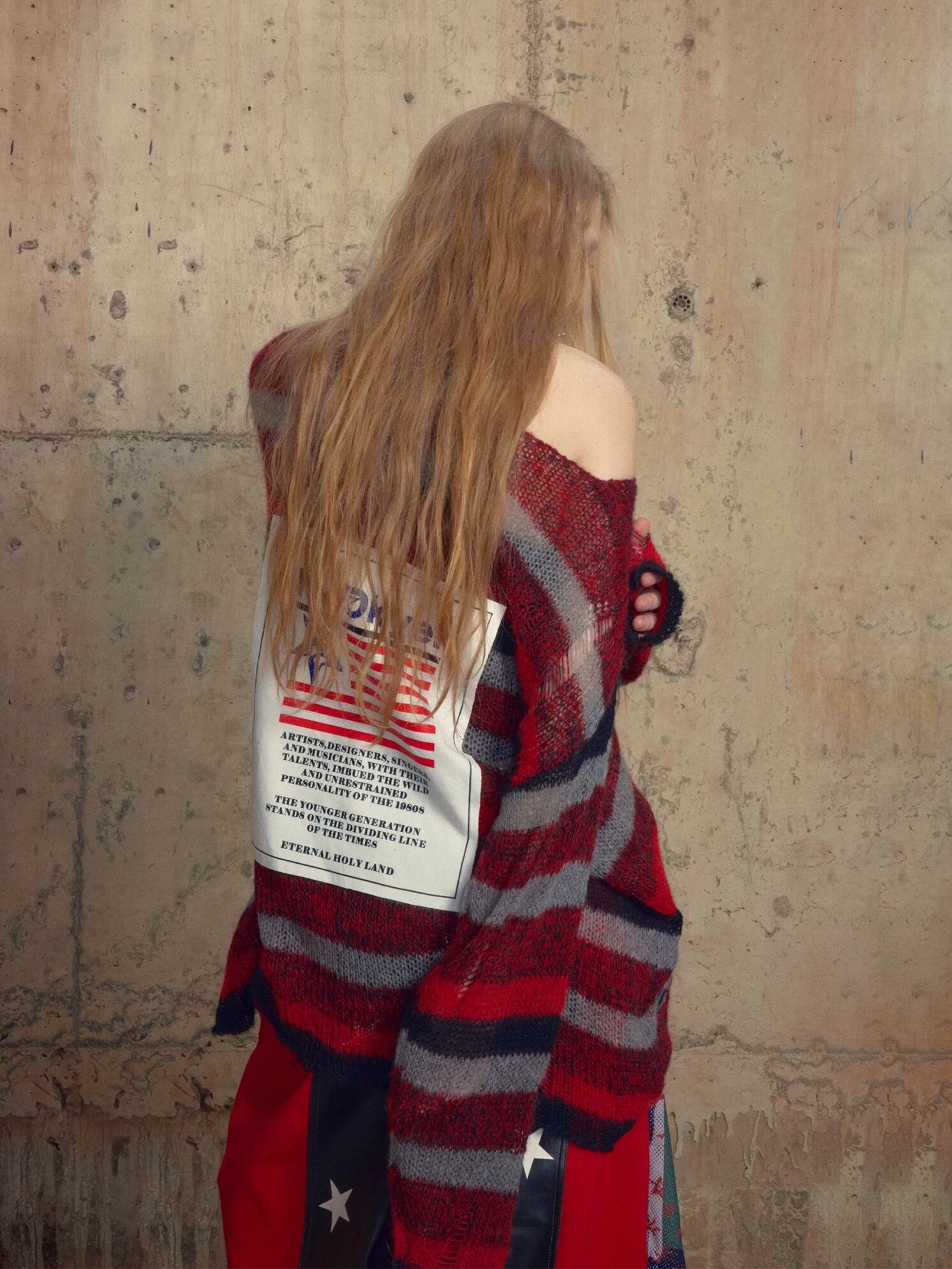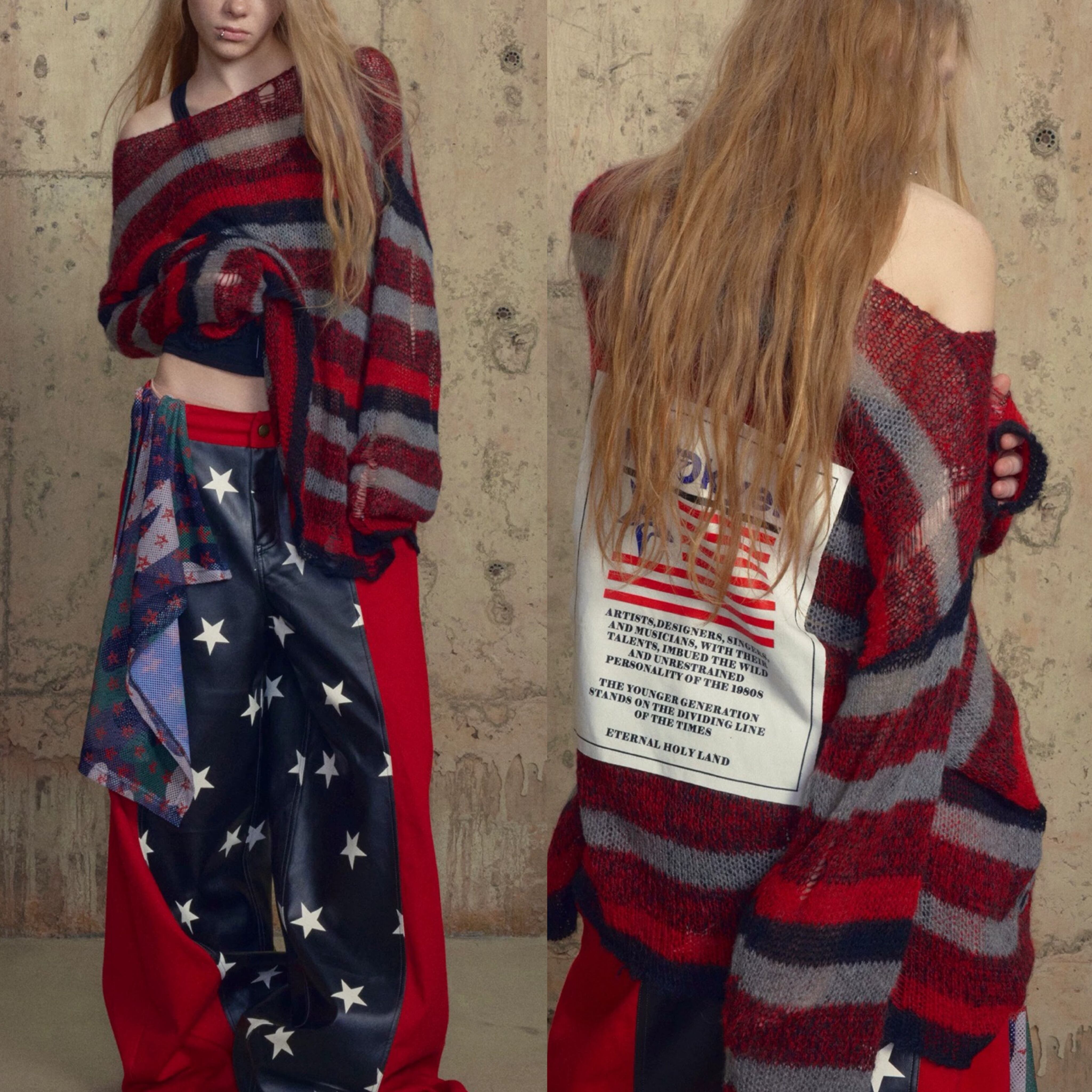 セーター 赤 ニット ワンピース ダメージ ボーダー チェック ブラウス カーディガン スウェット ストリート オフショルダー ダンス クラブ