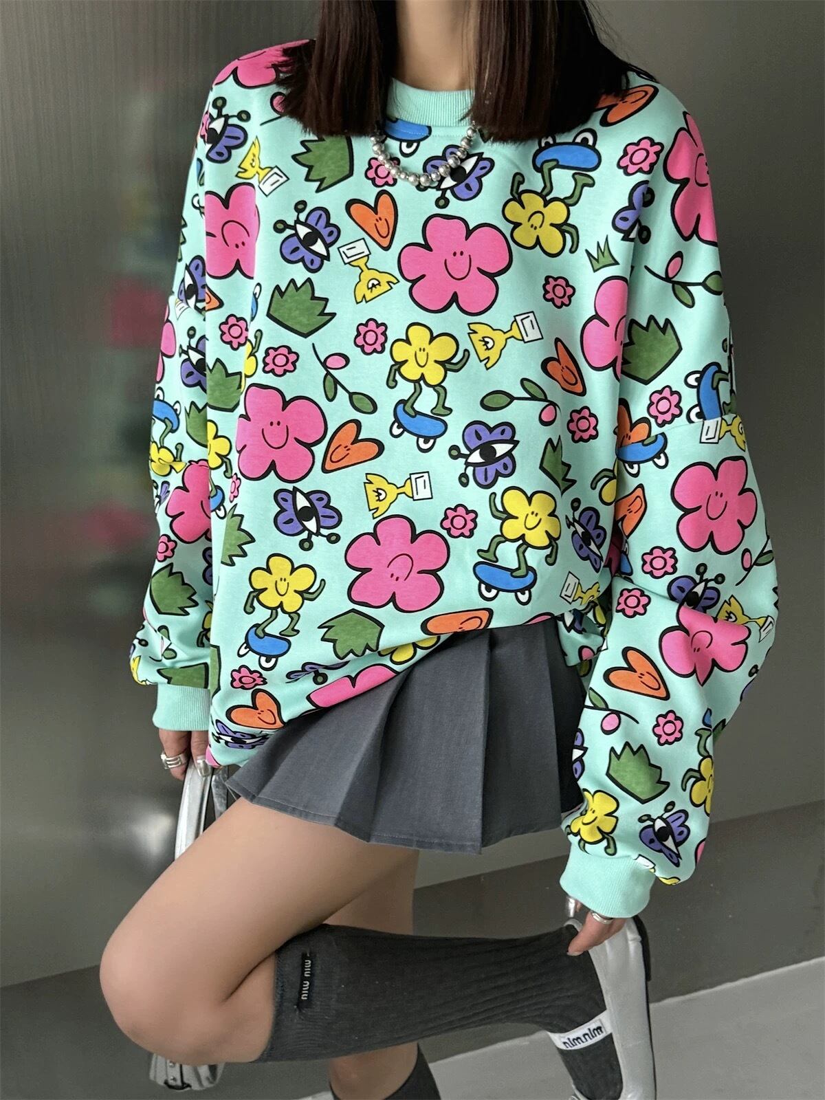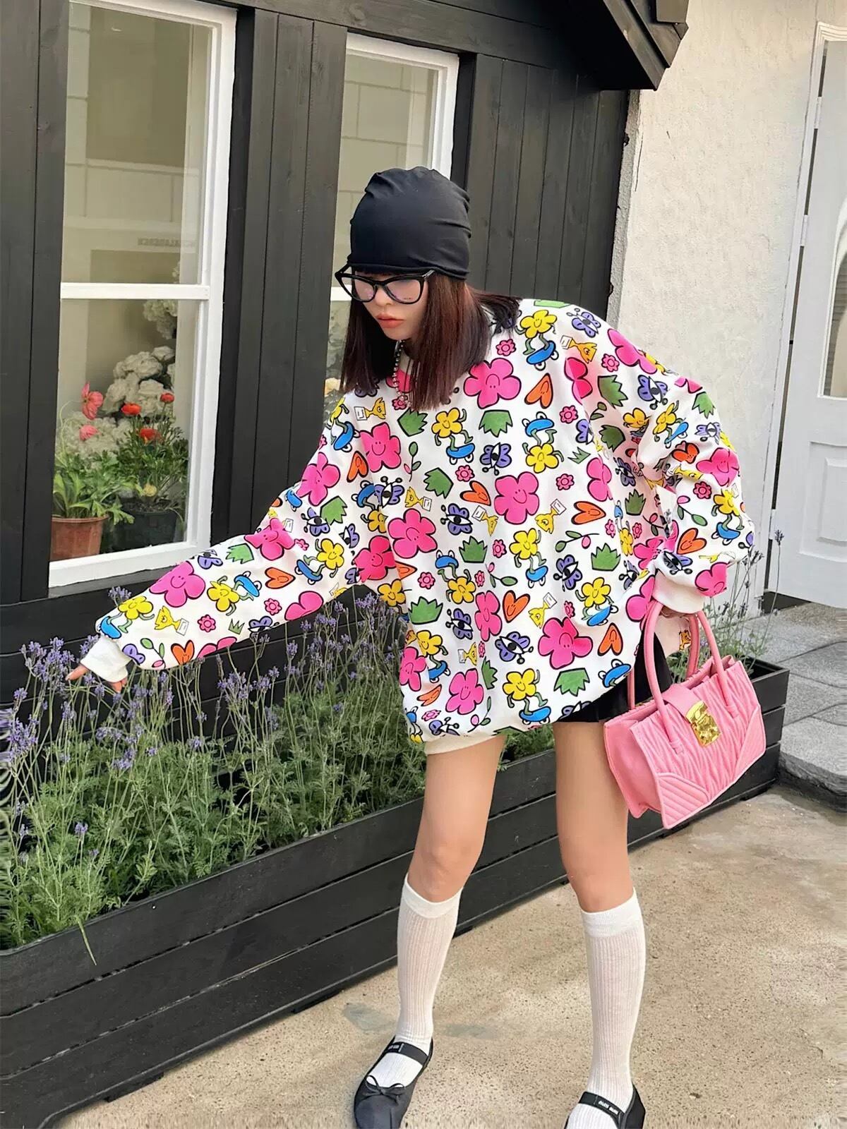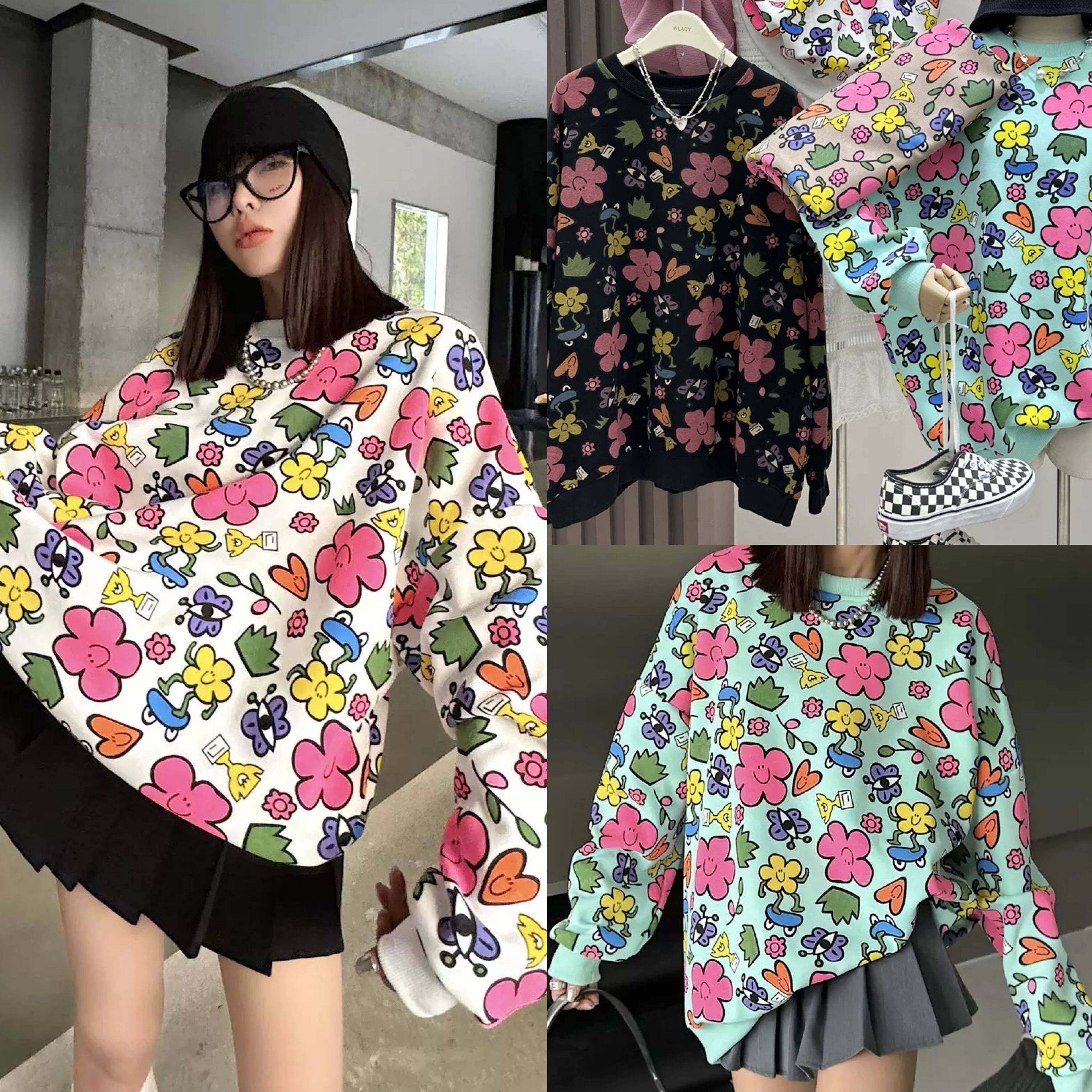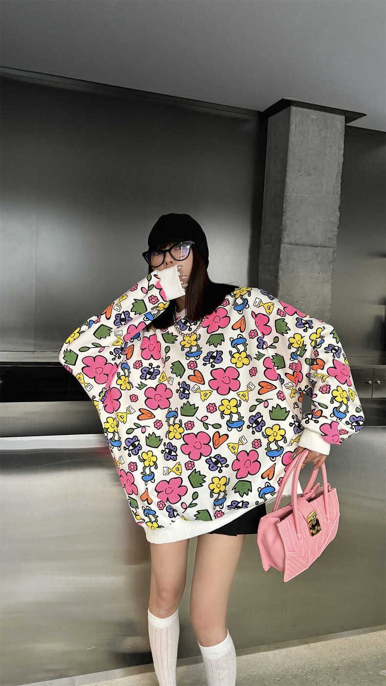 トレーナー 花柄 カラフル ピンク 白 黒 緑 スウェット