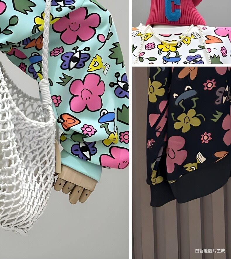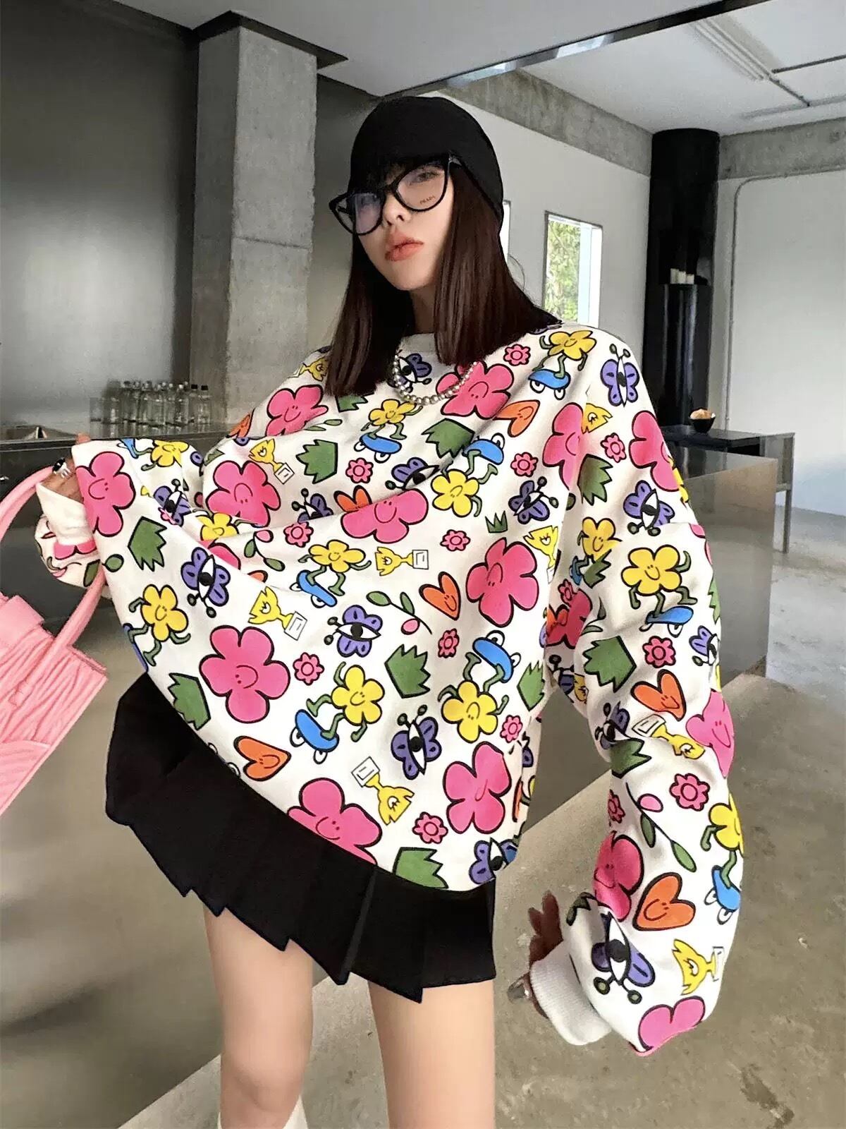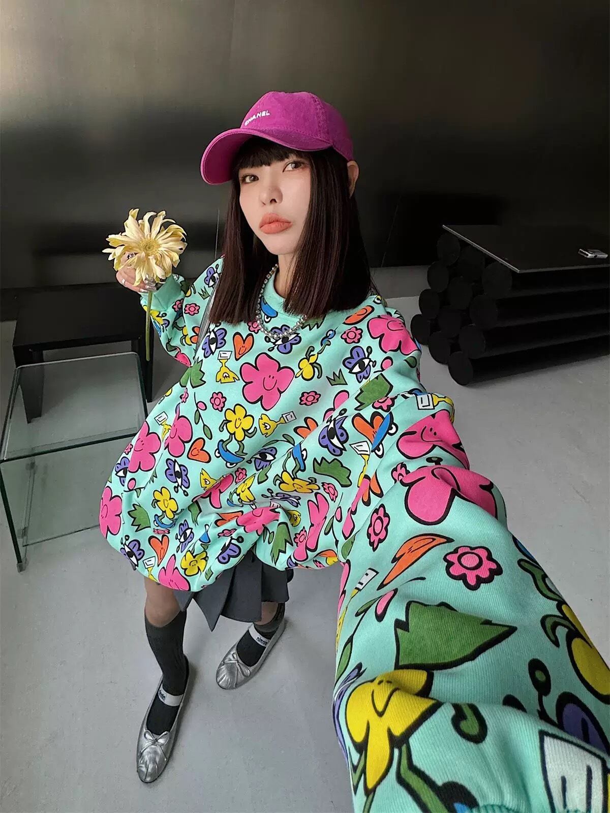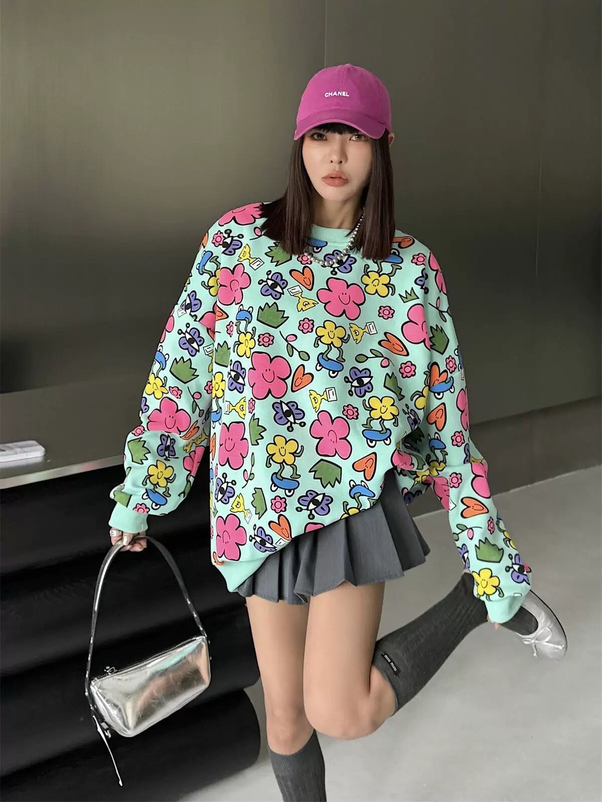 トレーナー 花柄 カラフル ピンク 白 黒 緑 スウェット