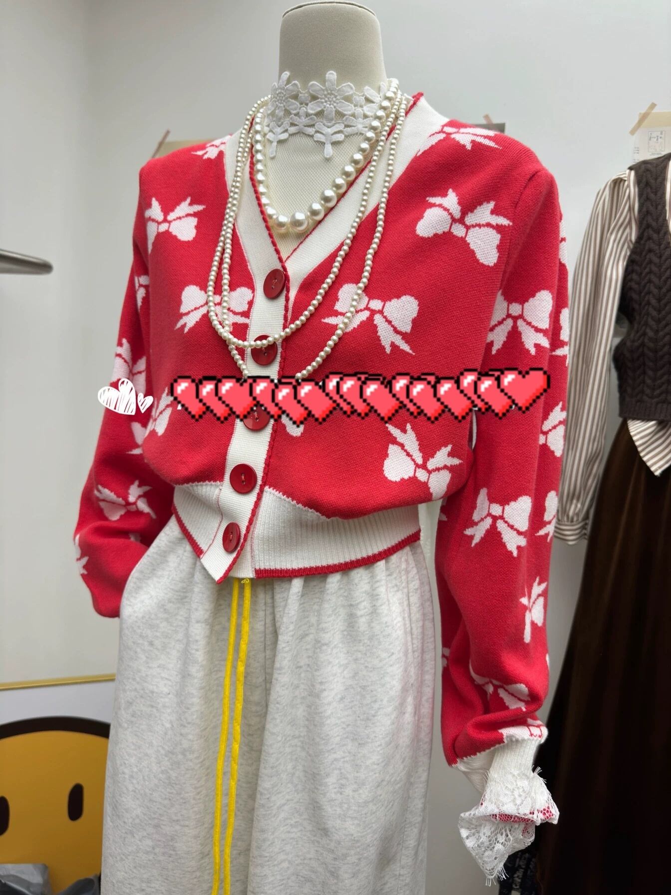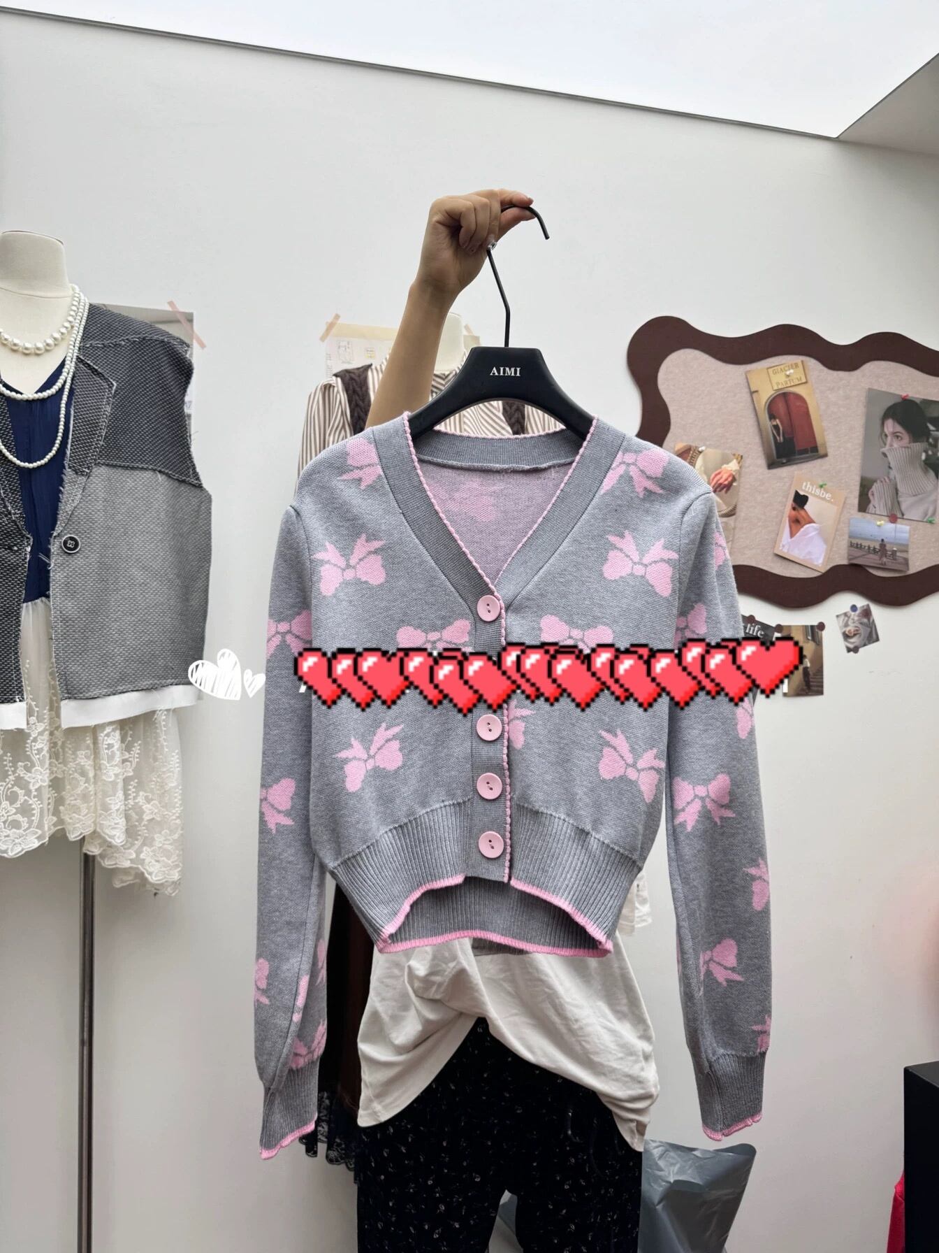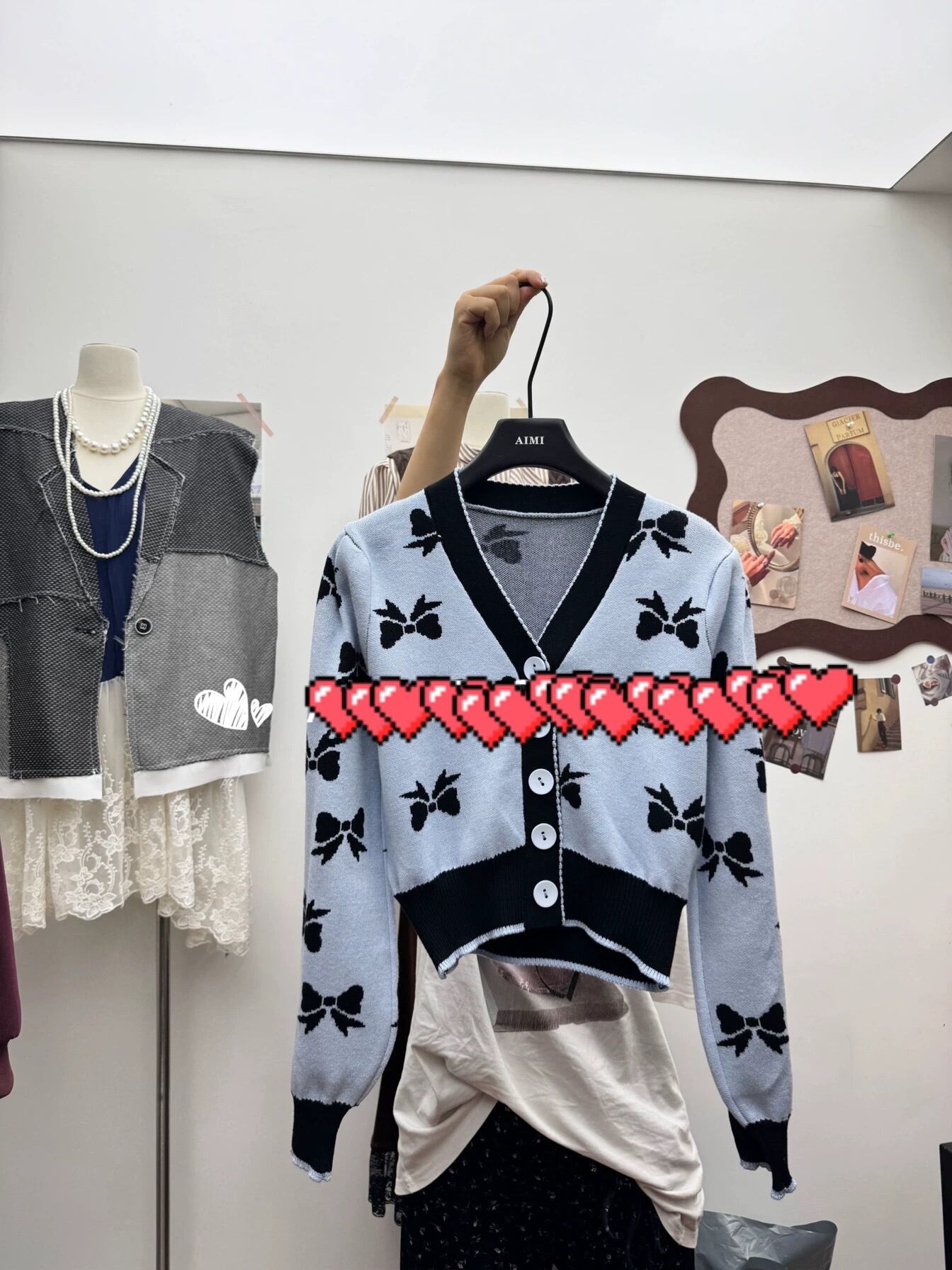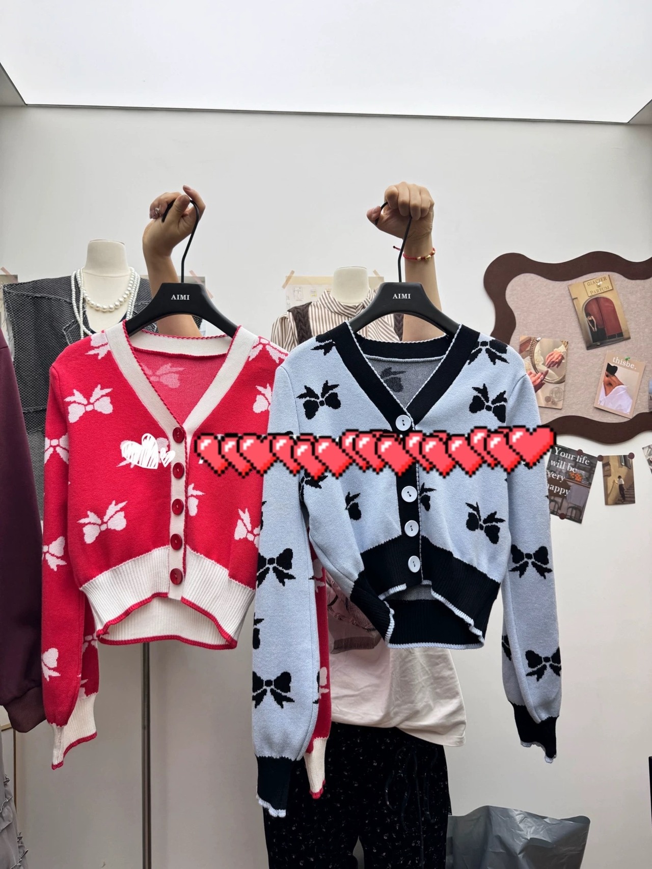 リボン カジュアル 赤 ピンク グレー 可愛い シンプル ガーリー 水色 カーディガン