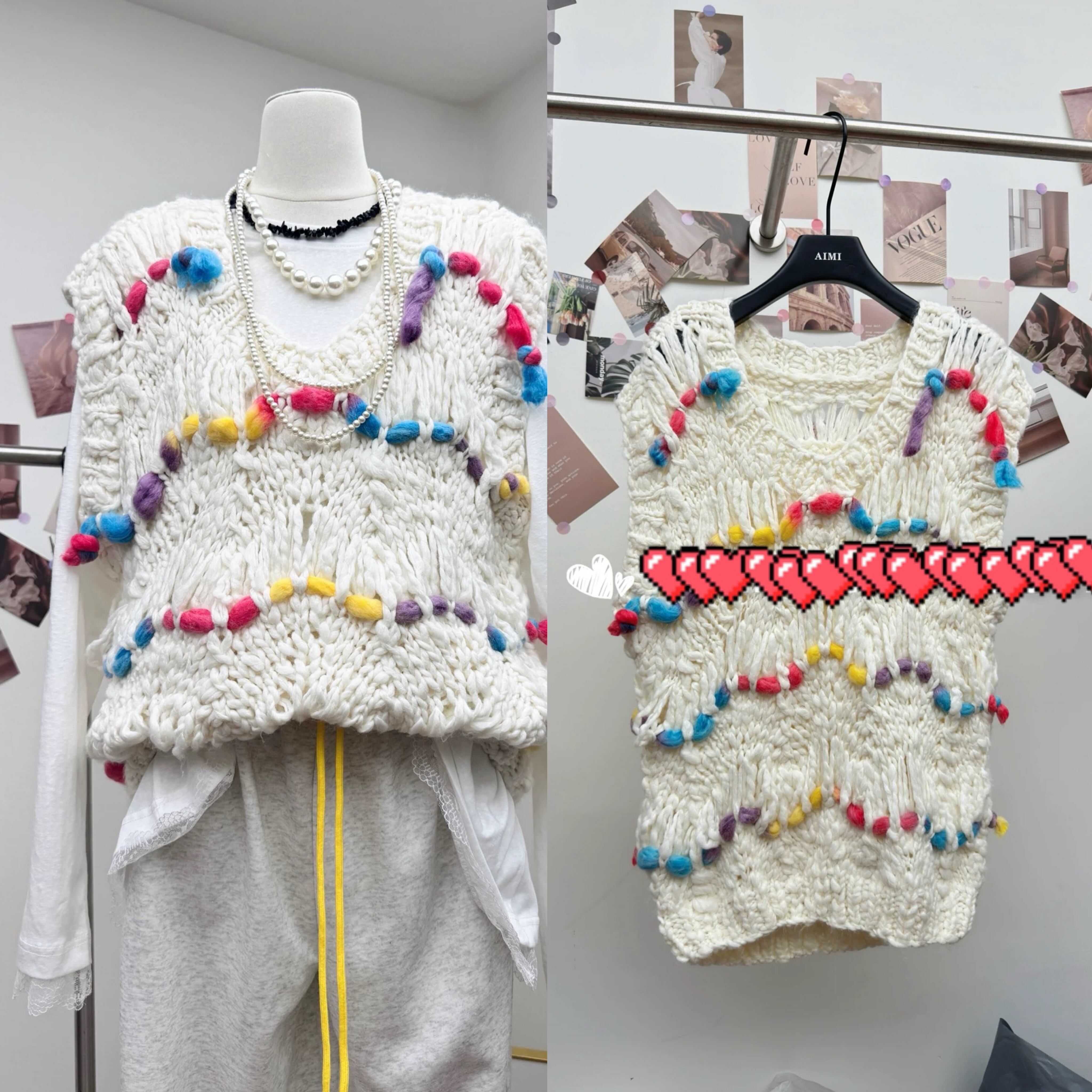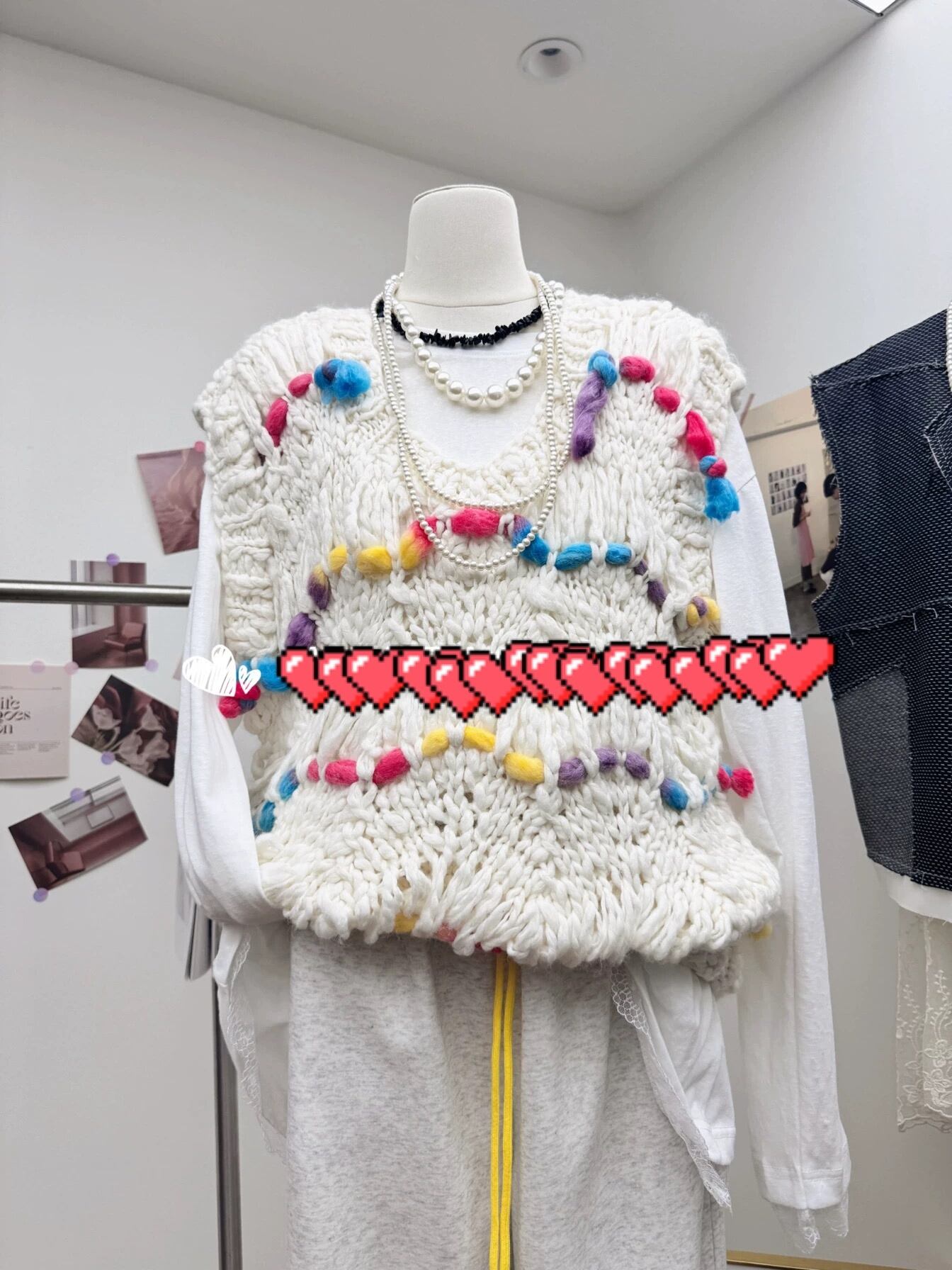 ニット あみあみ 白 カラフル カーディガン ジャケット ベスト ブラウス トップス セーター