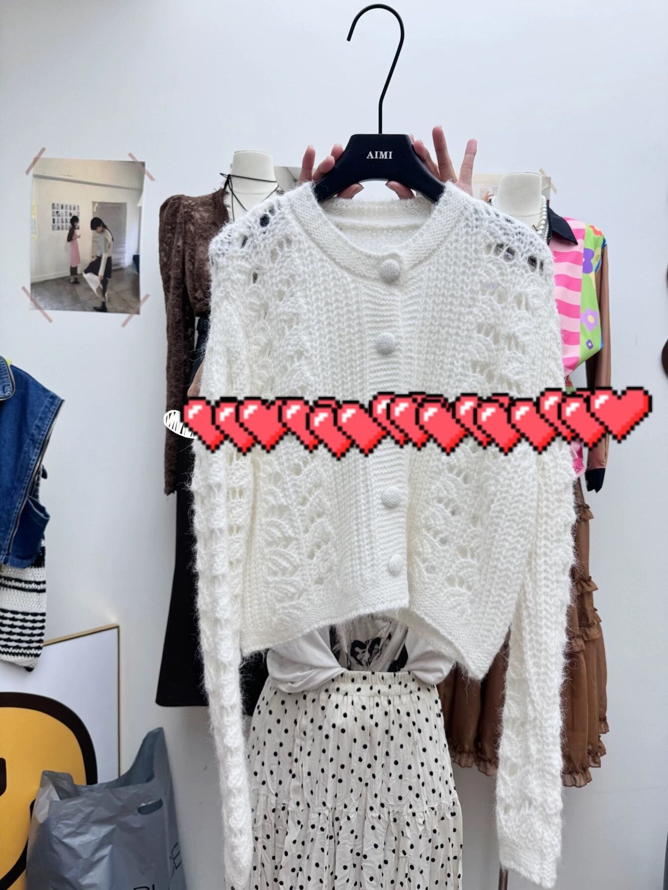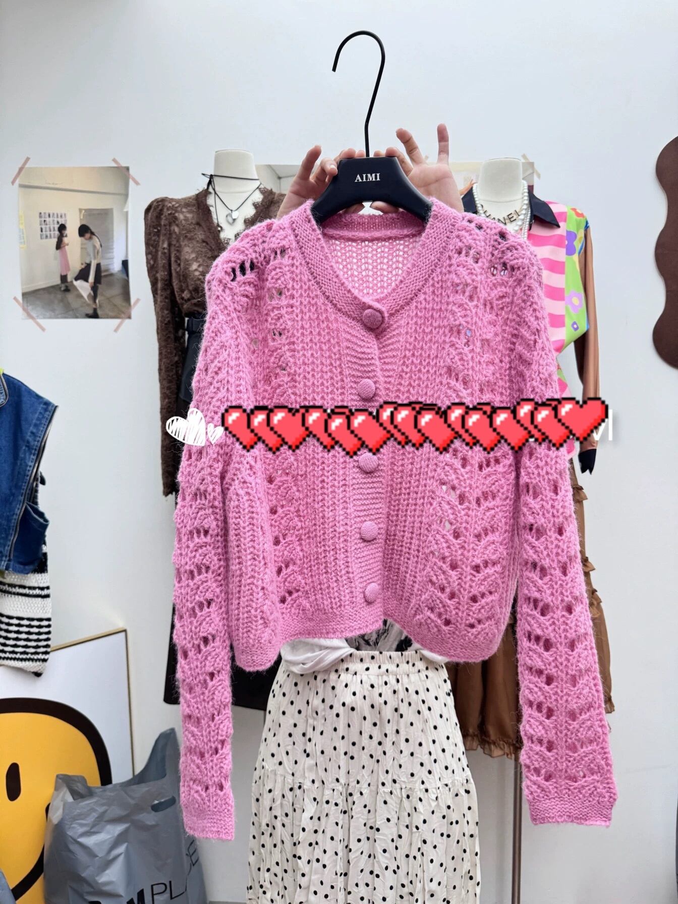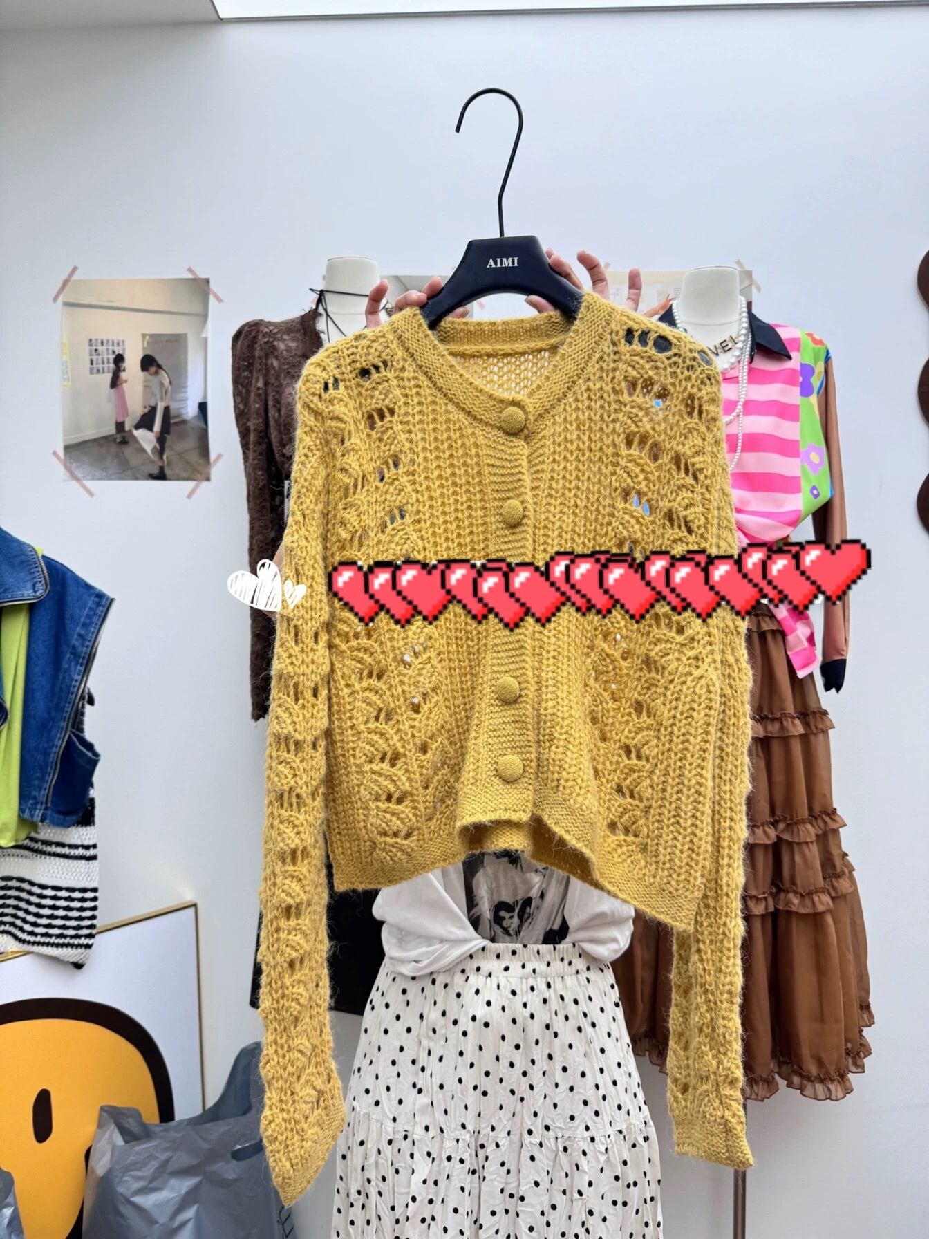シンプル カーディガン 黄色 白 ピンク 水色 アウター セーター ガーリー シンプル 可愛い
