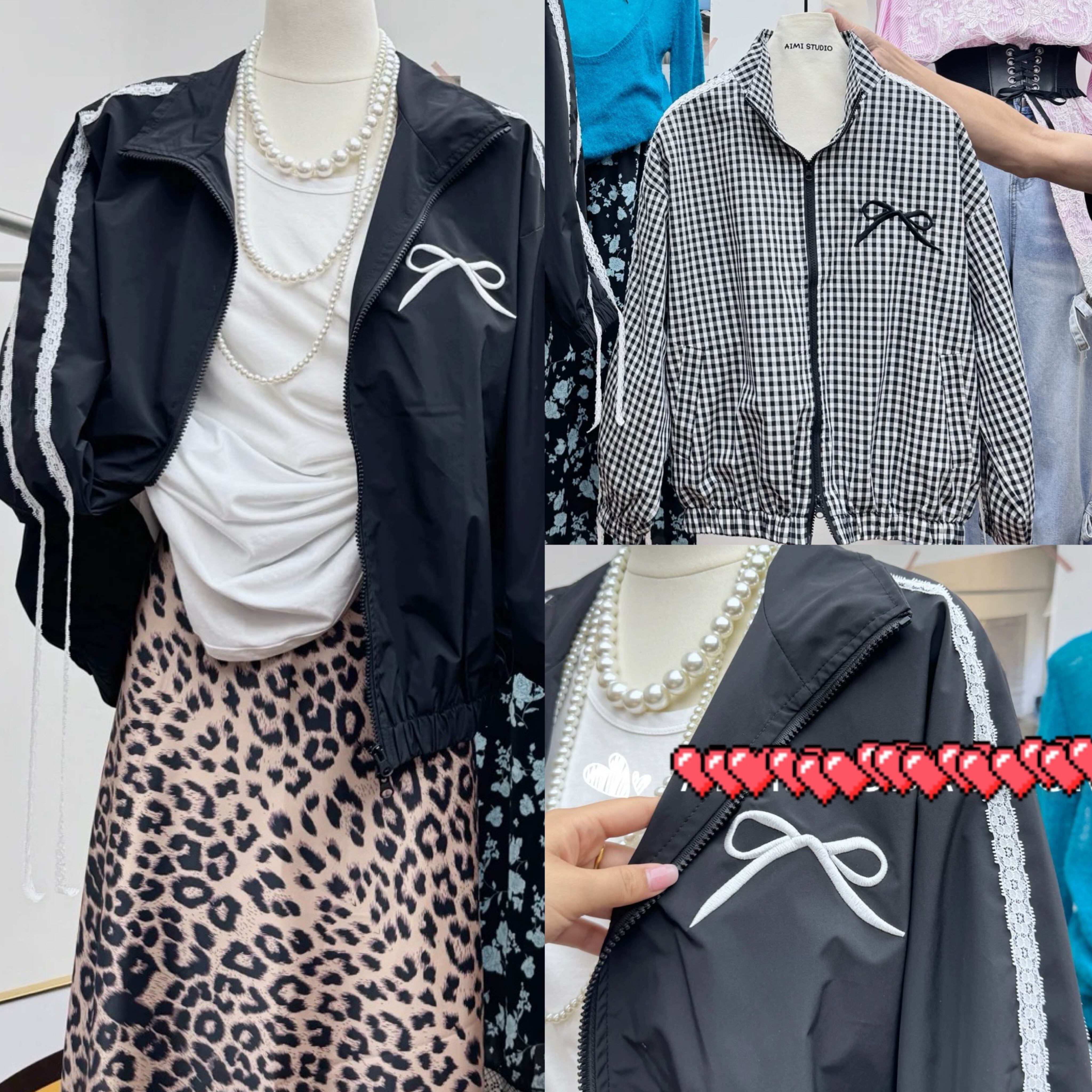 ジャンパー ジャケット ブルゾン コート リボン 黒 ネイビー チェック カーディガン 可愛い アウター コート