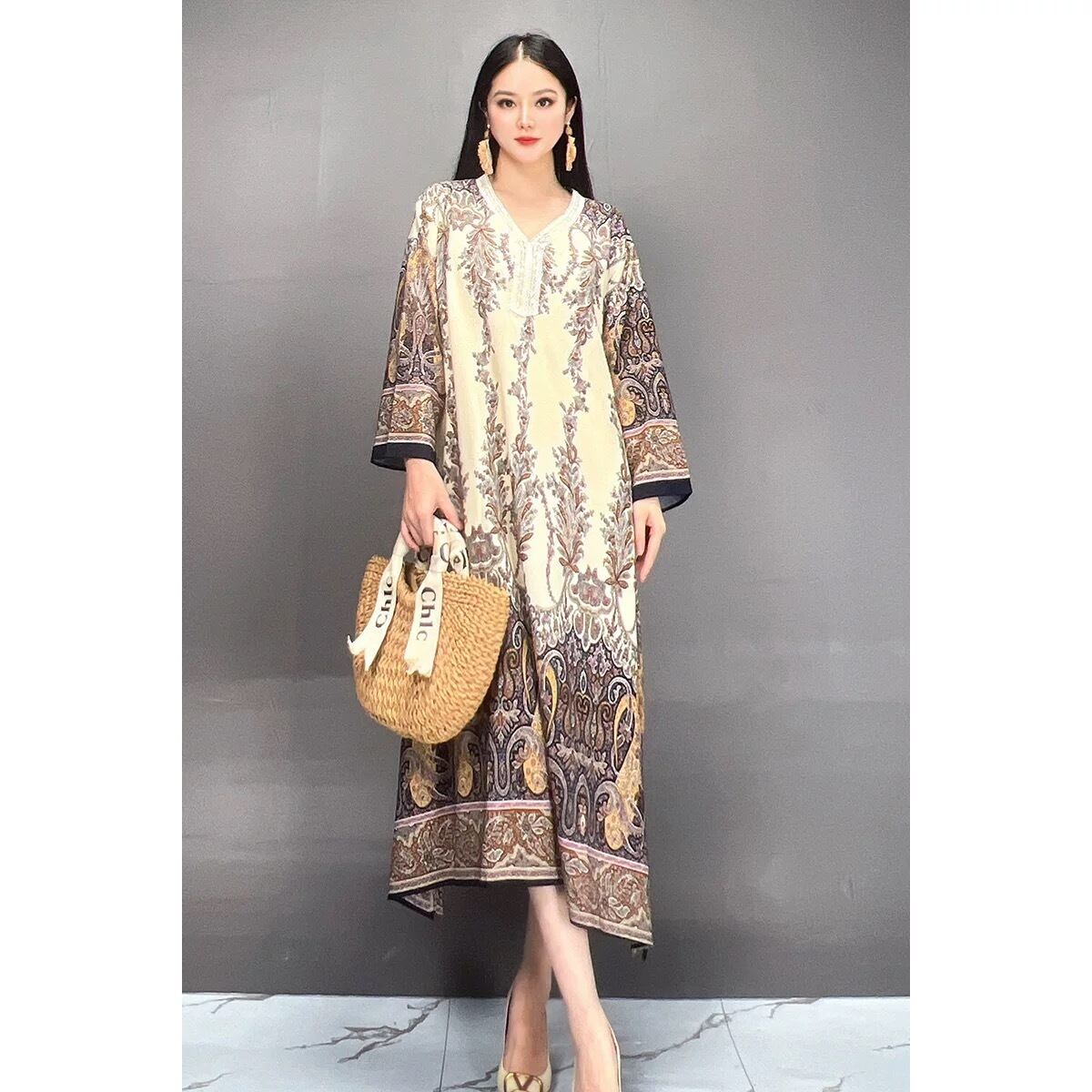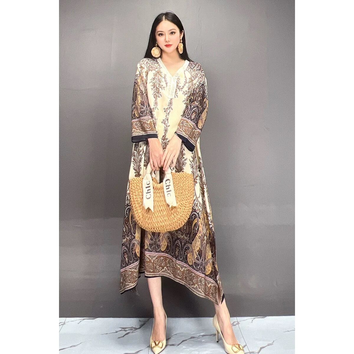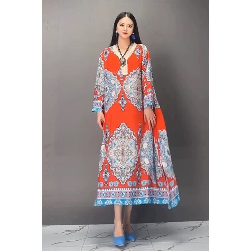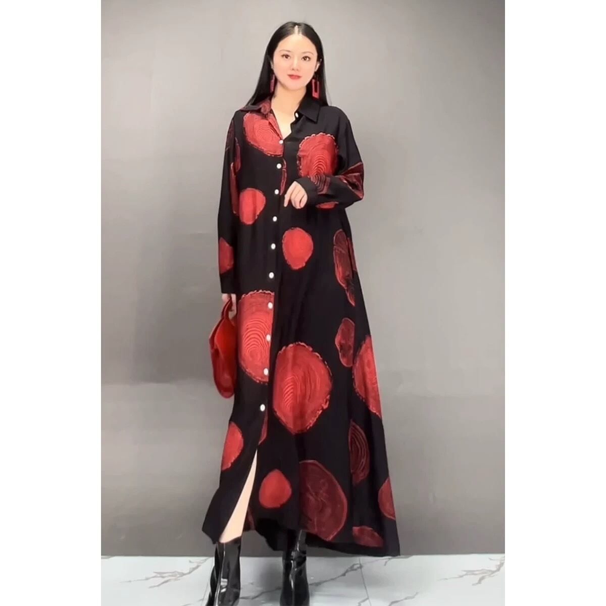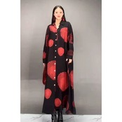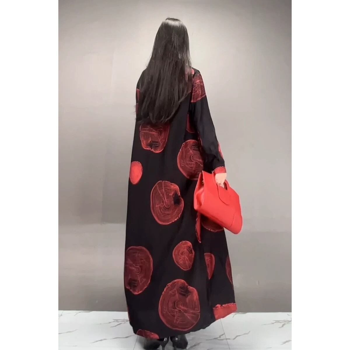 ベージュ 黒 赤 アジアン エスニック ブラウス ワンピース XL 丸 うずまき 茶色 マダム ワンピース