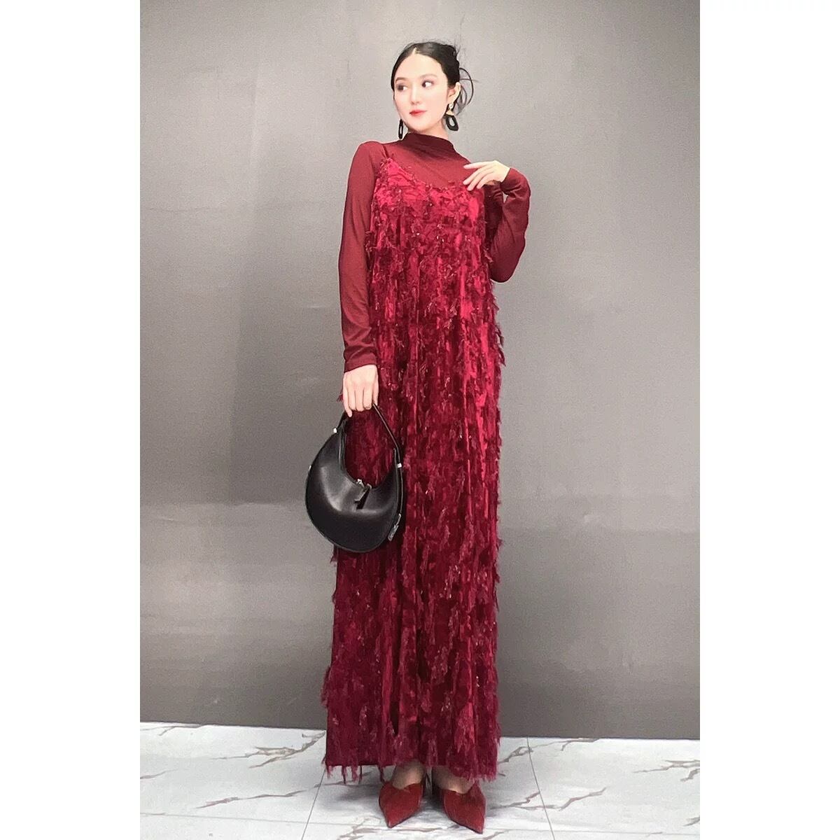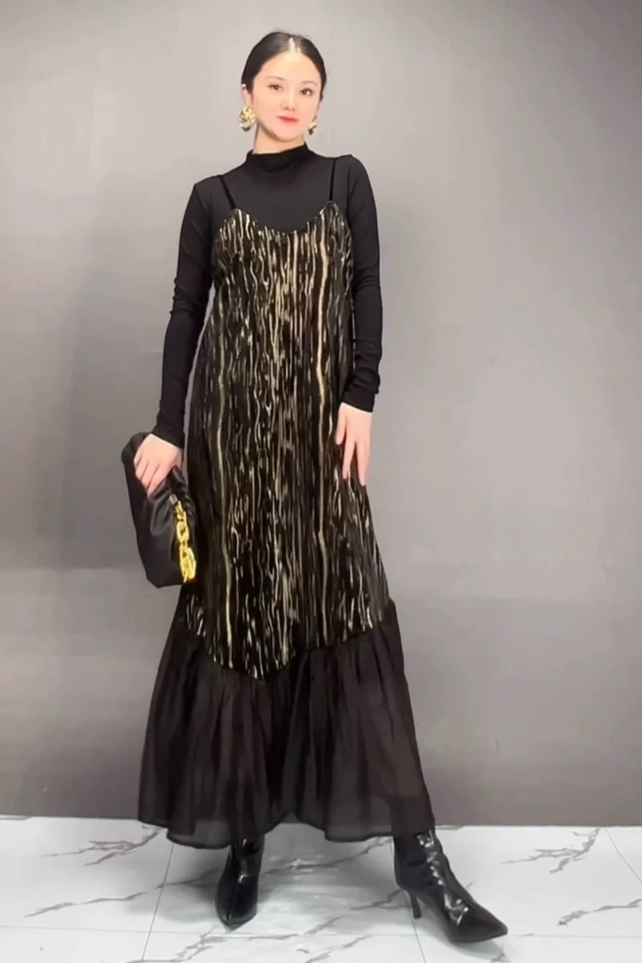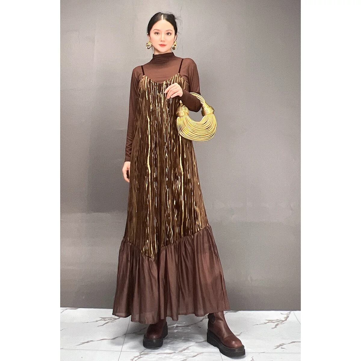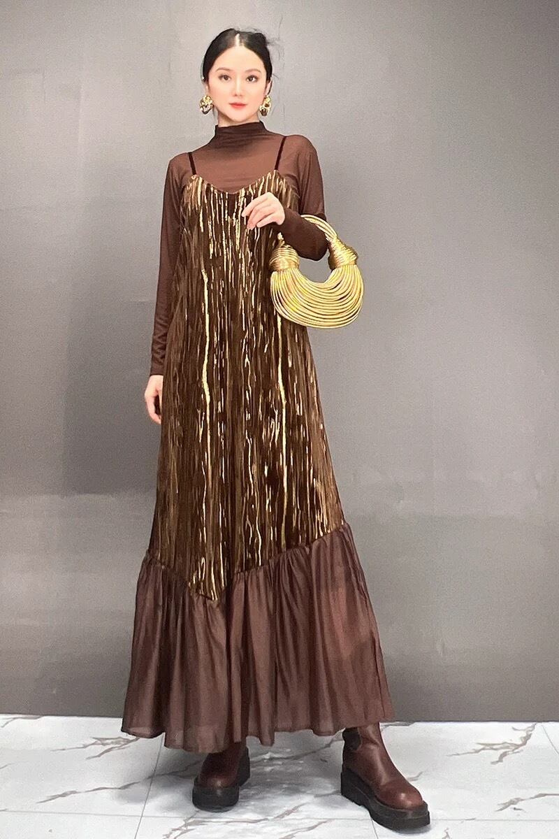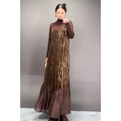 ハイネック ブラウス 黒 ゴールド プリーツ 赤 エレガント マダム 茶色 赤 キャミソール ワンピース エレガント マキシ XL