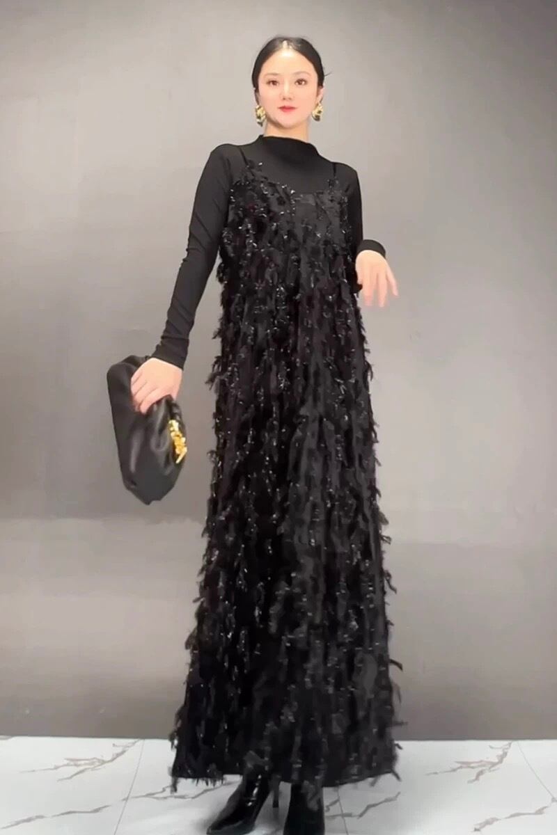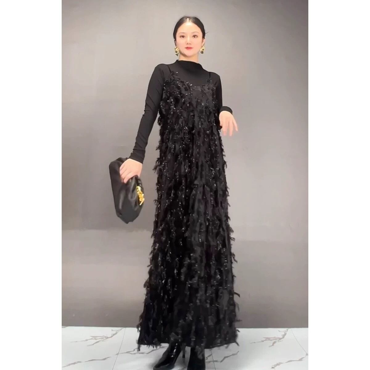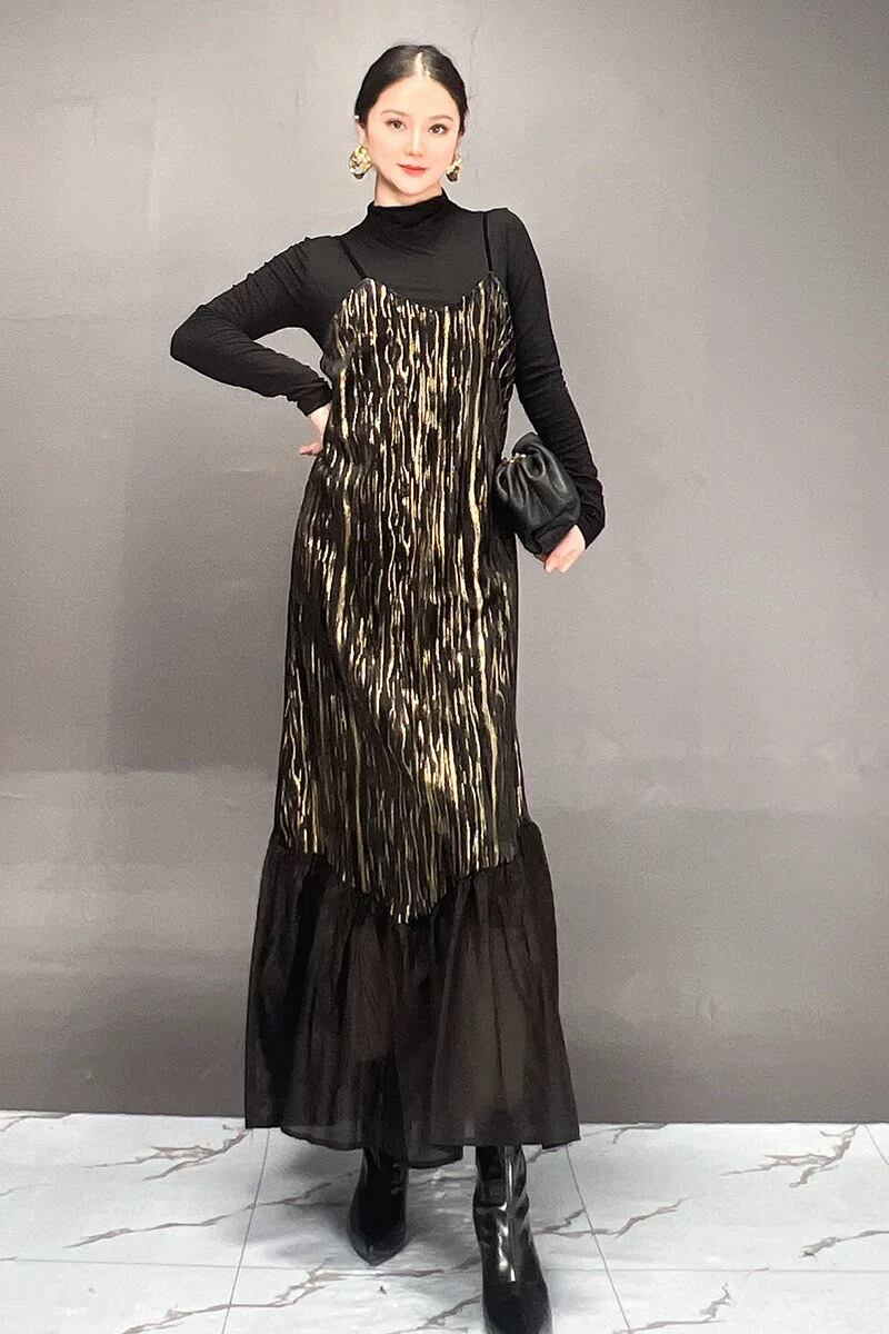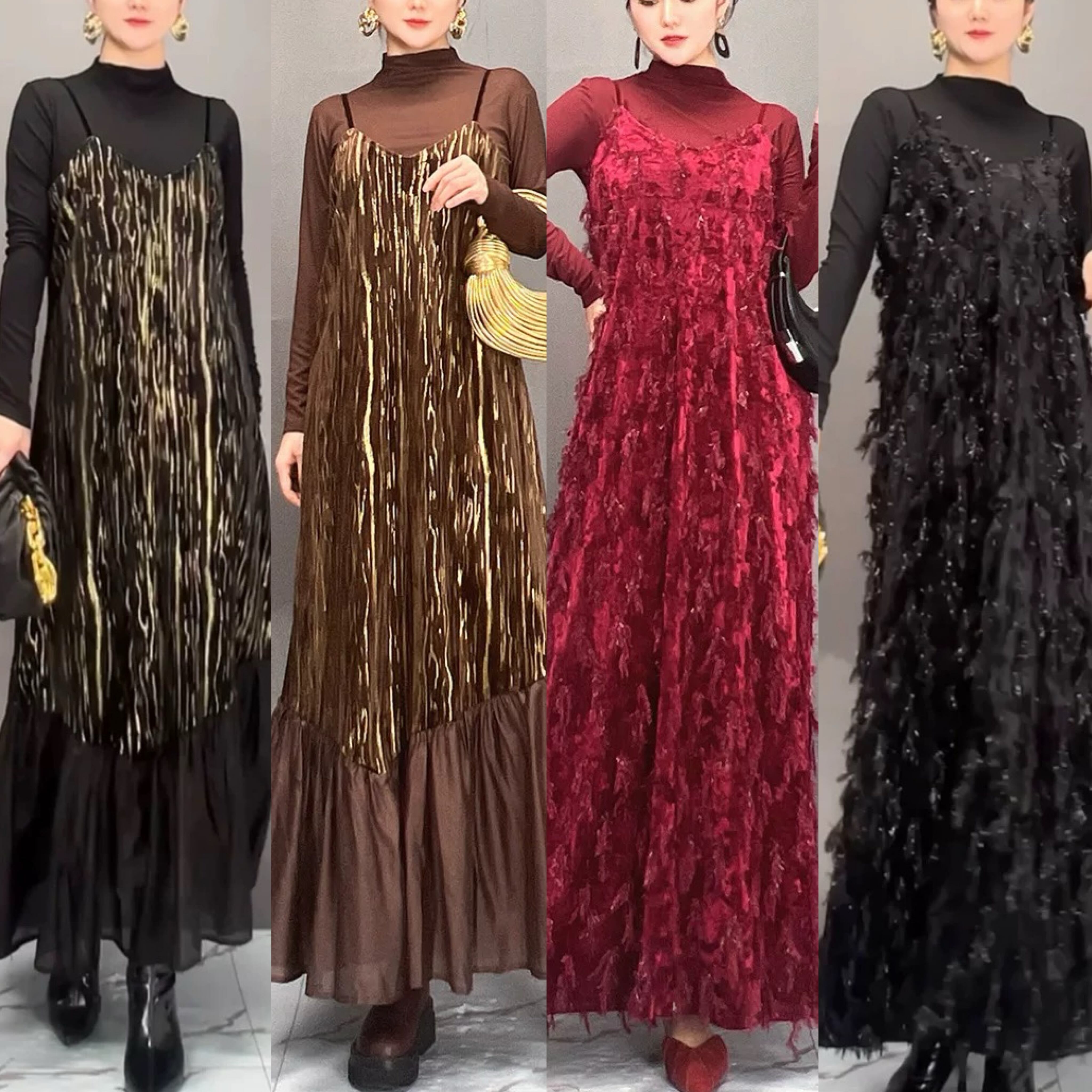 ハイネック ブラウス 黒 ゴールド プリーツ 赤 エレガント マダム 茶色 赤 キャミソール ワンピース エレガント マキシ XL