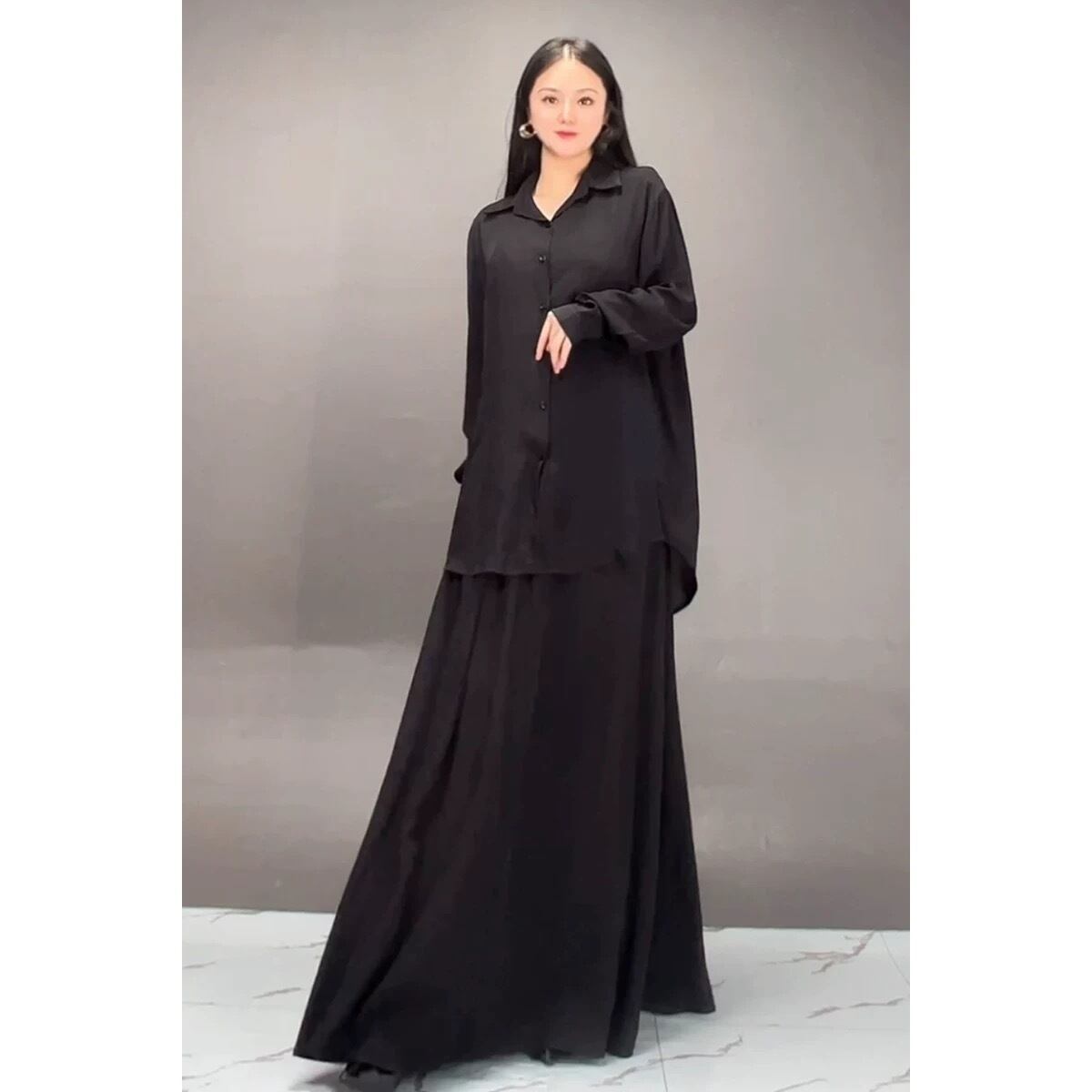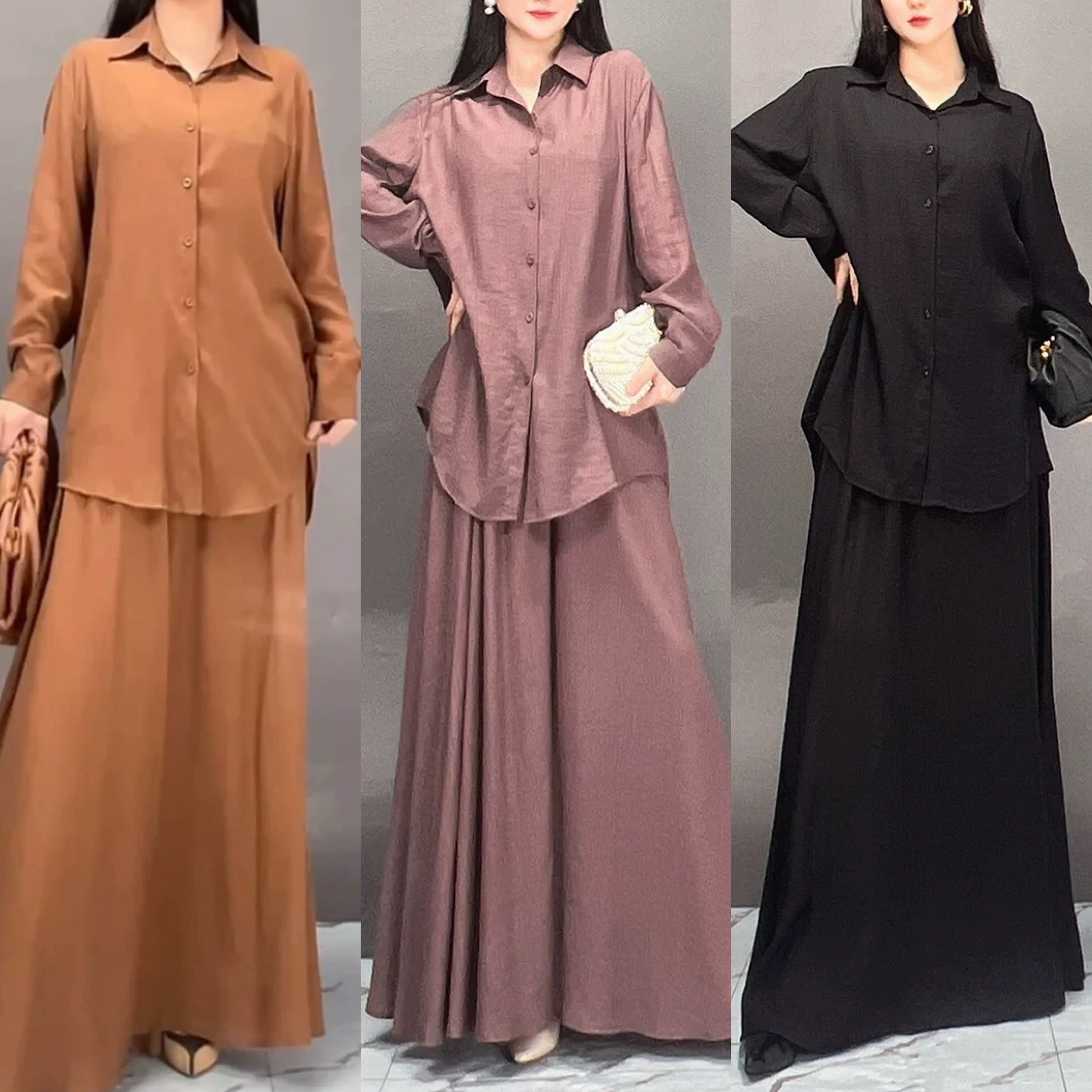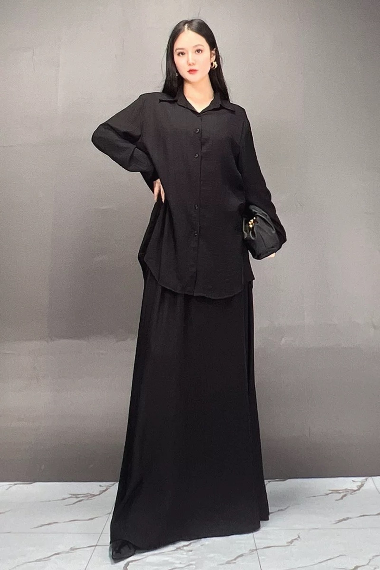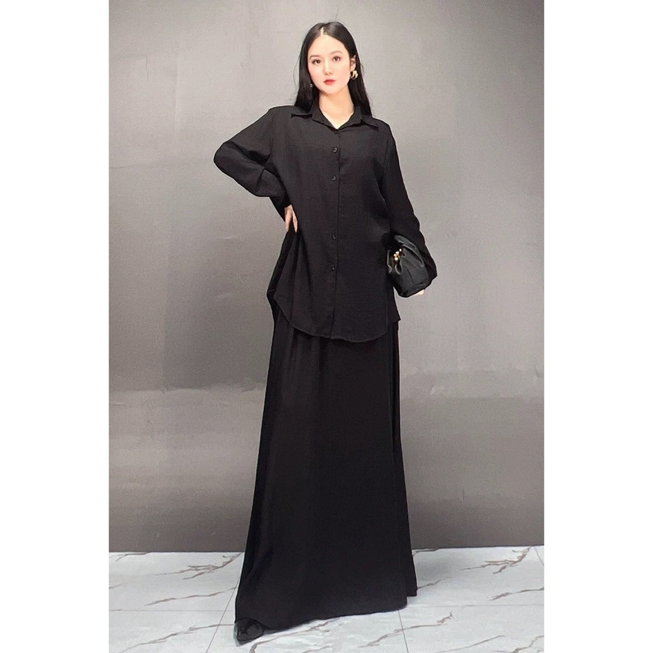 【セットアップ】ブラウス マキシ スカート ツーピース 黒 キャラメル ピンク シンプル XL