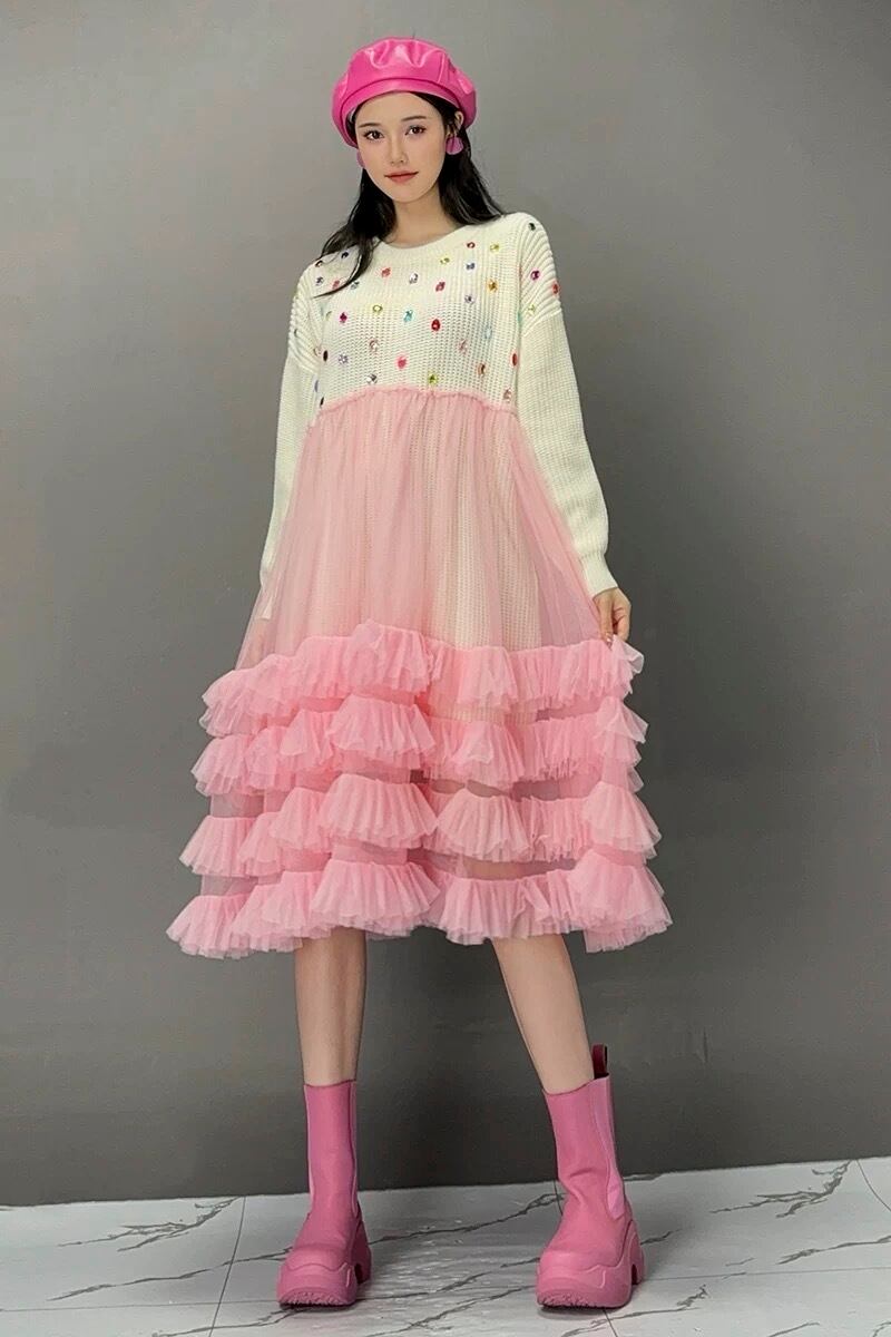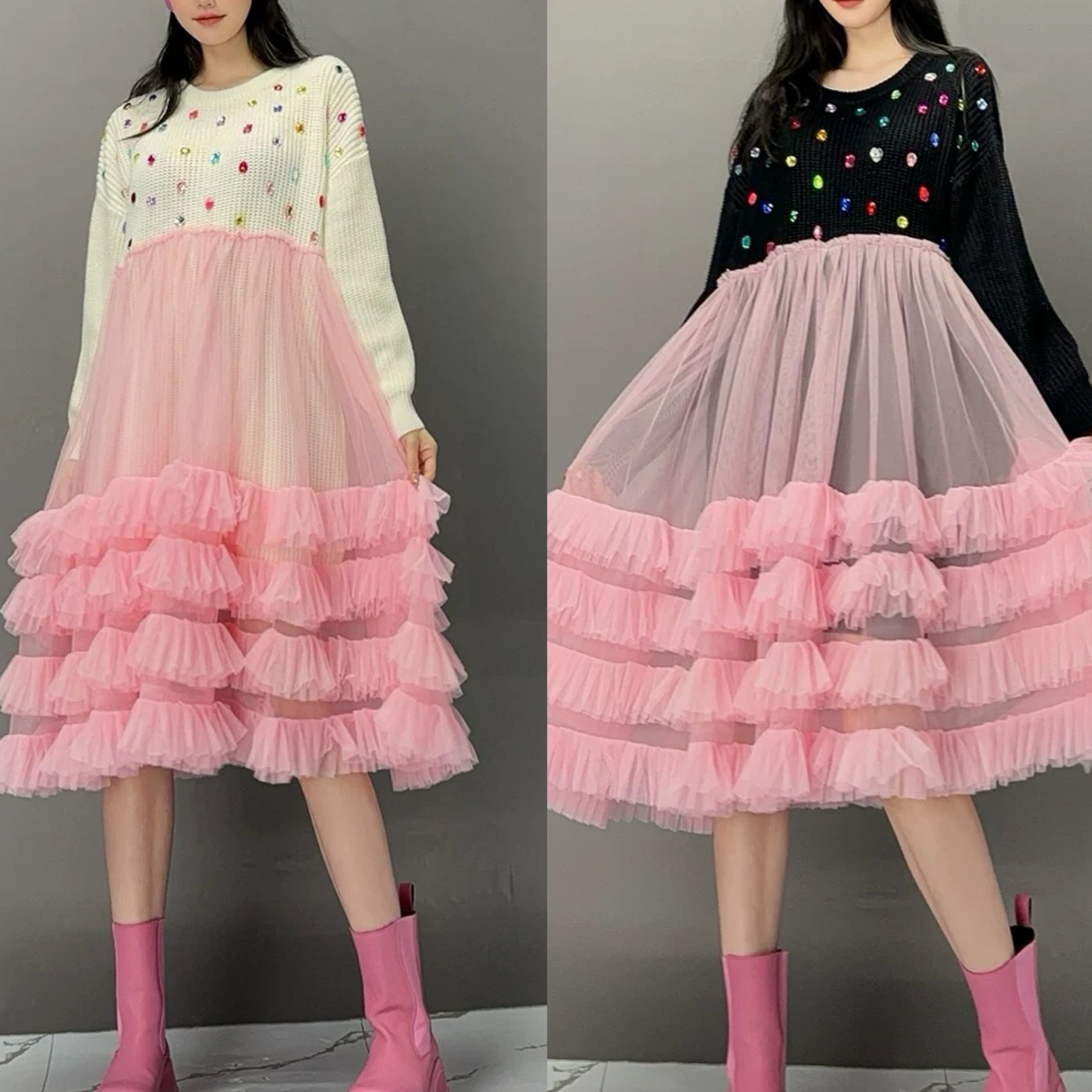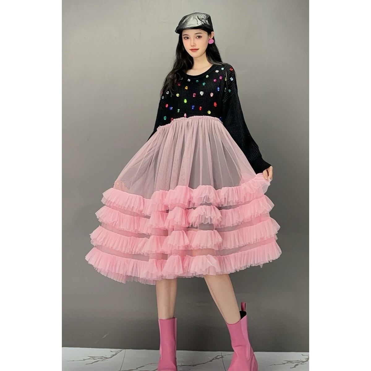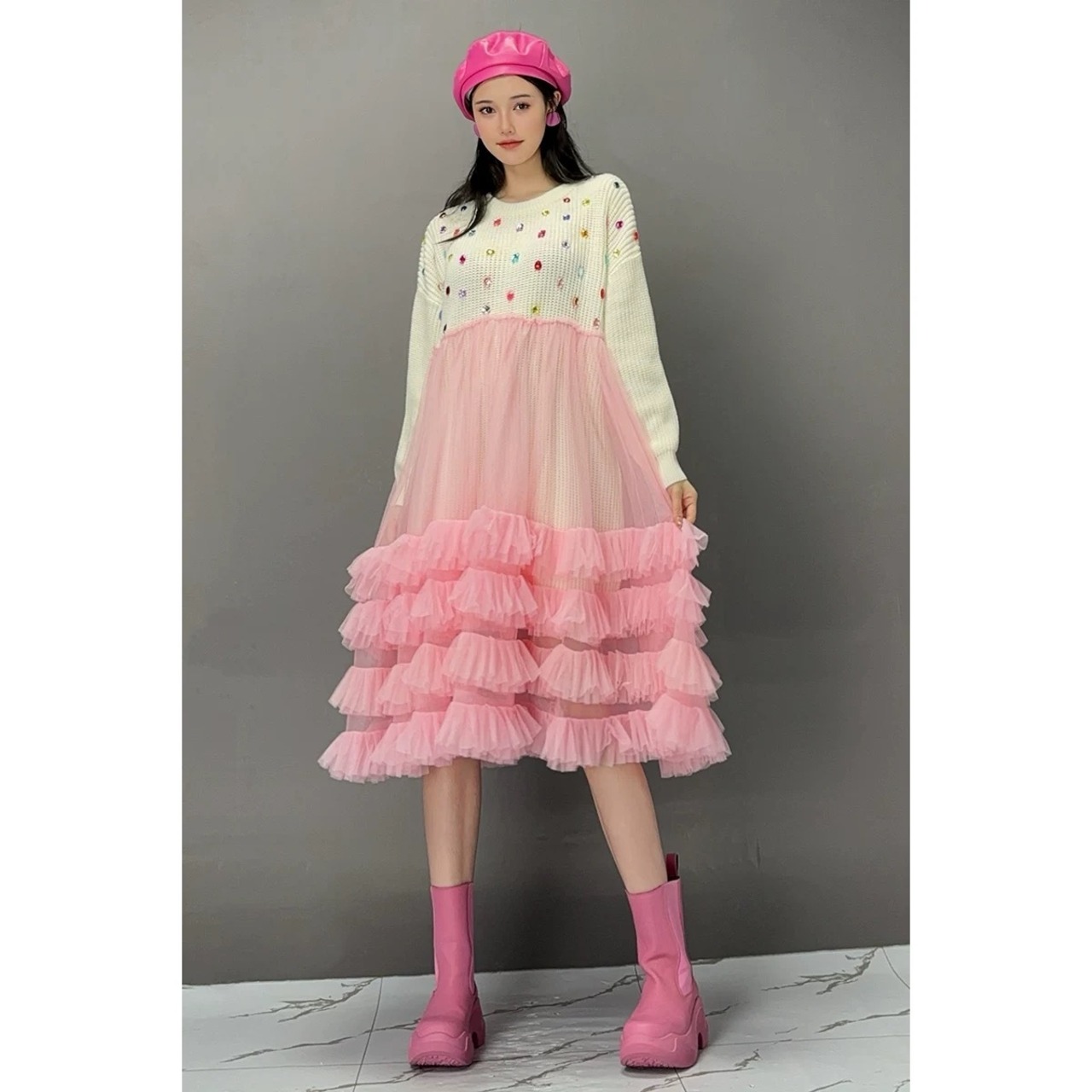 ピンク 白 黒 ゆったり XL ワンピース ラインストーン キラキラ カジュアル ブラウス