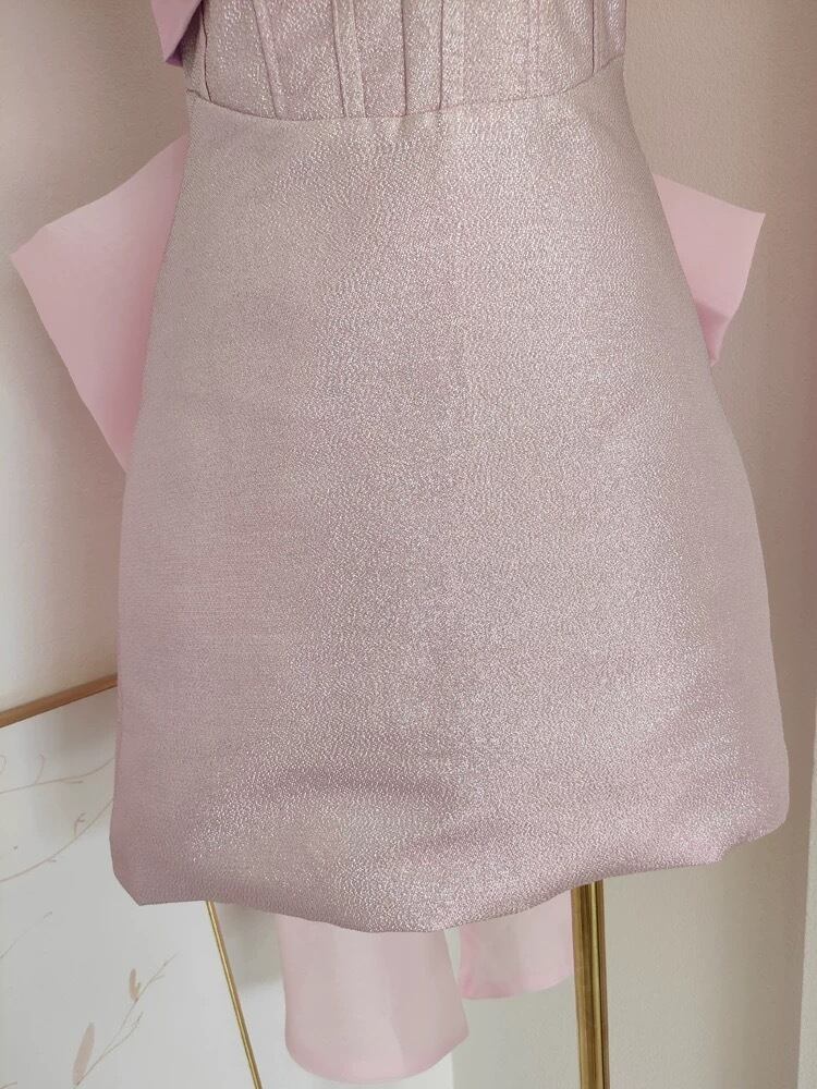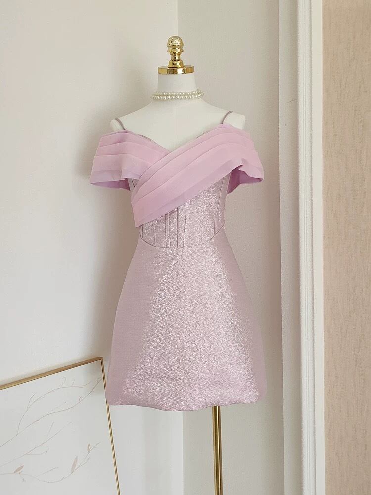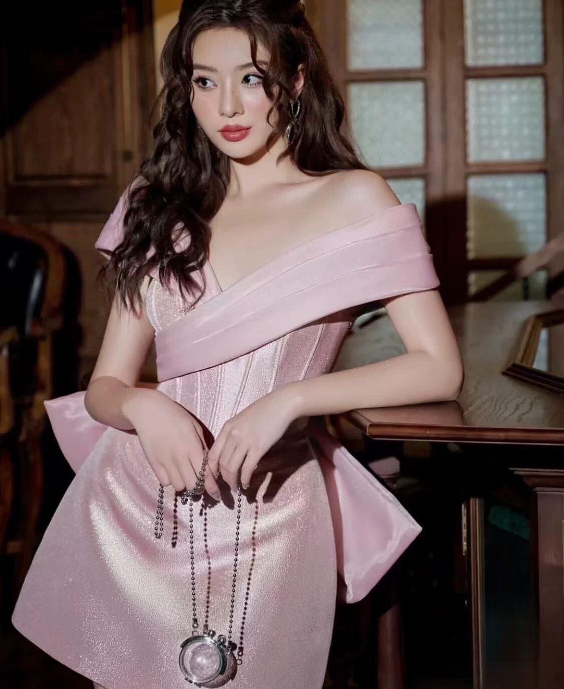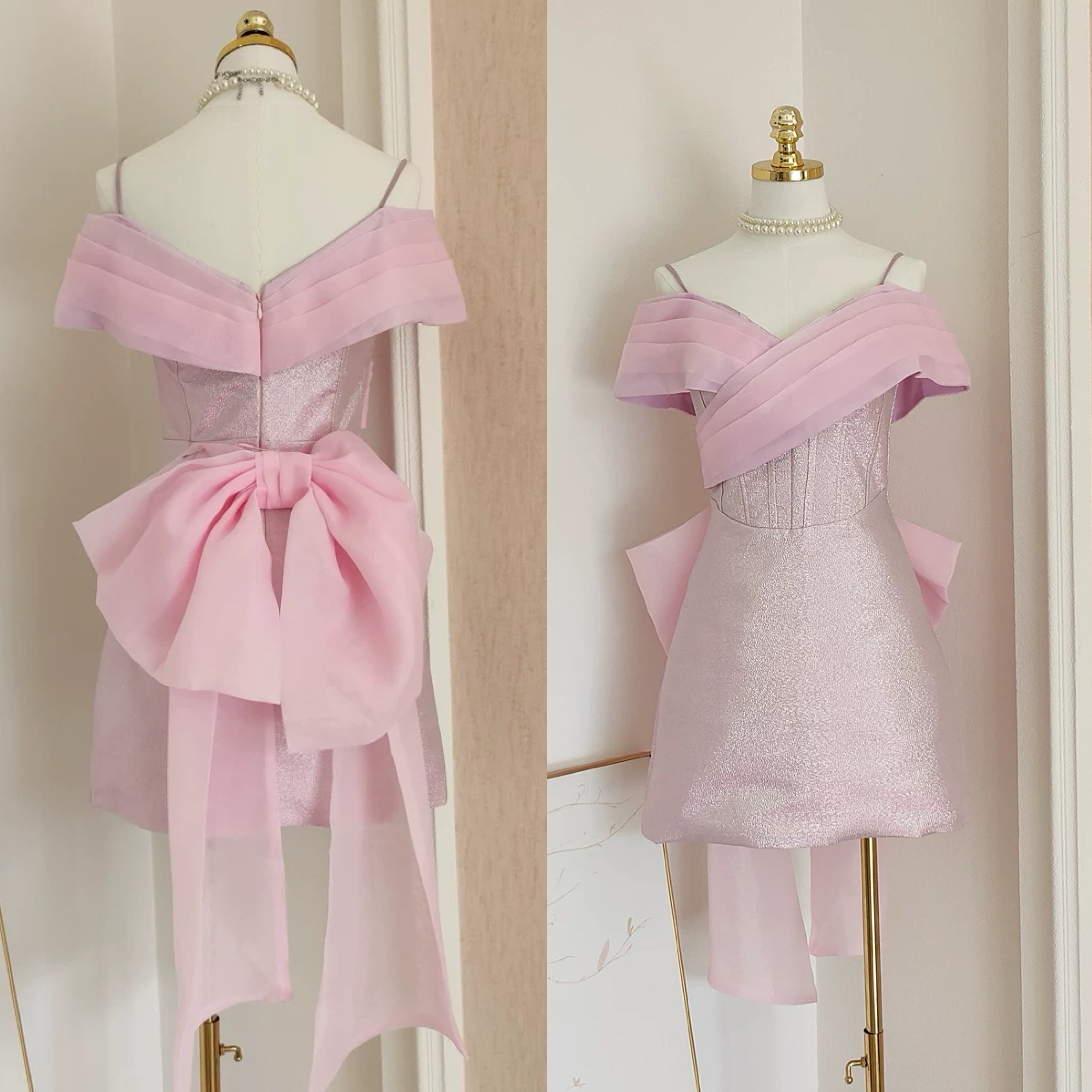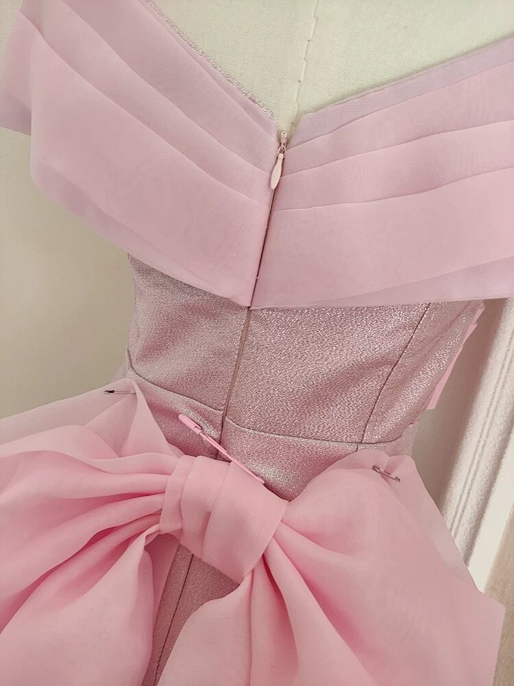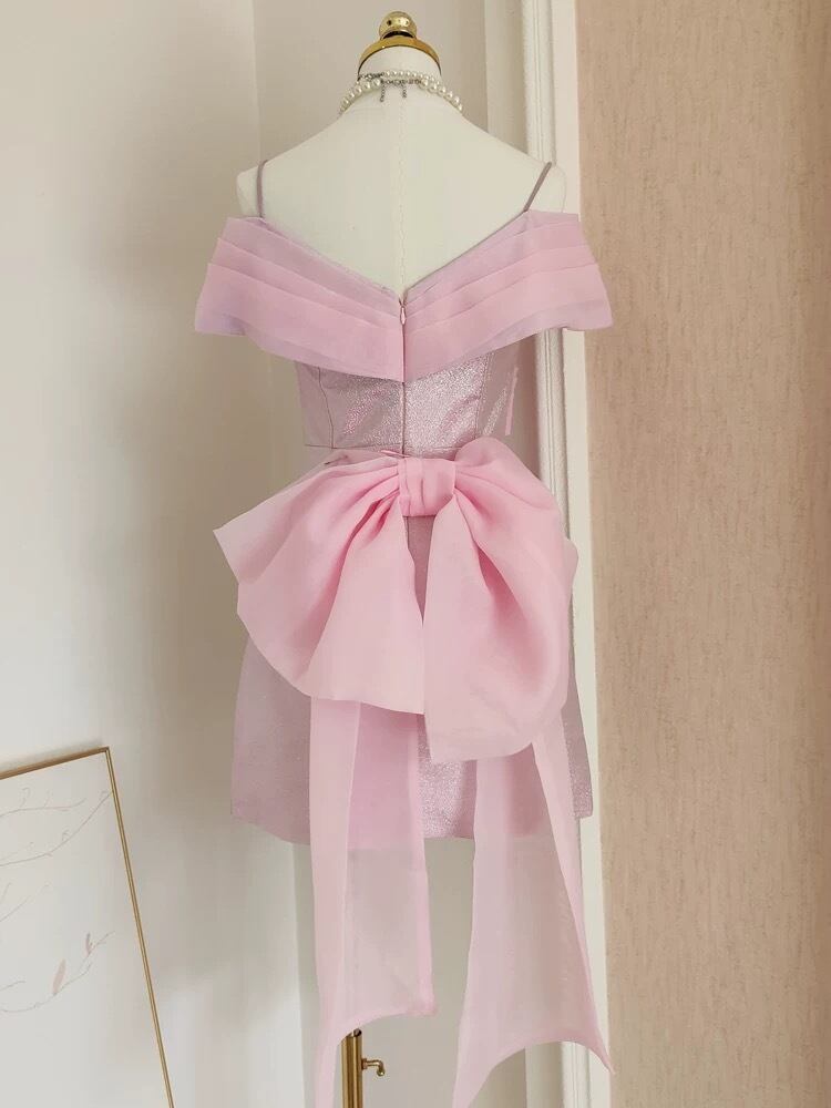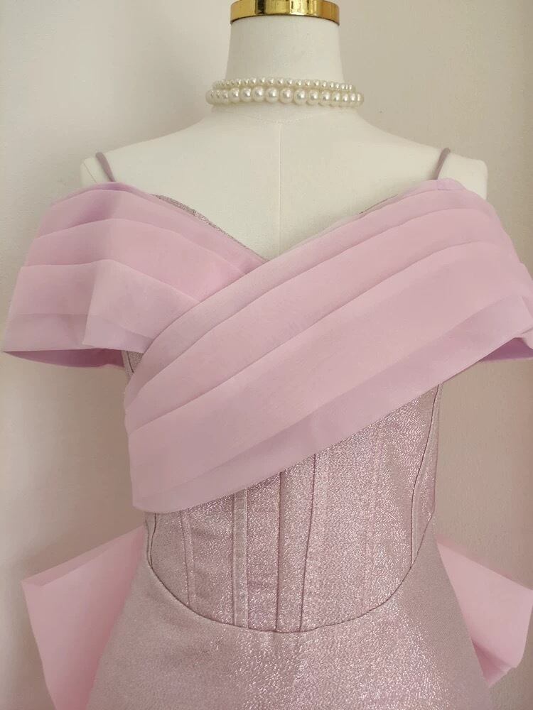 ピンク オフショルダー リボン ドレス ワンピース ガーリー エレガント 可愛い パーティー
