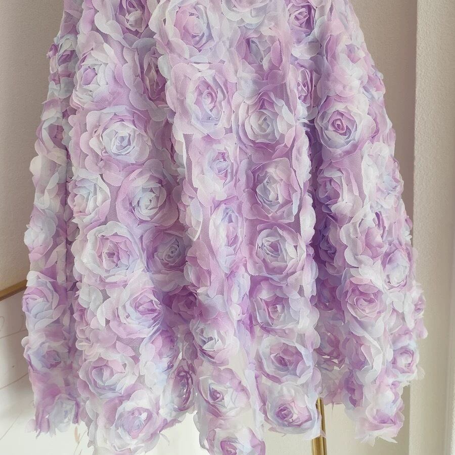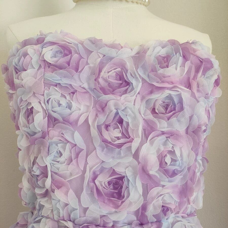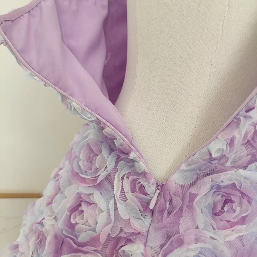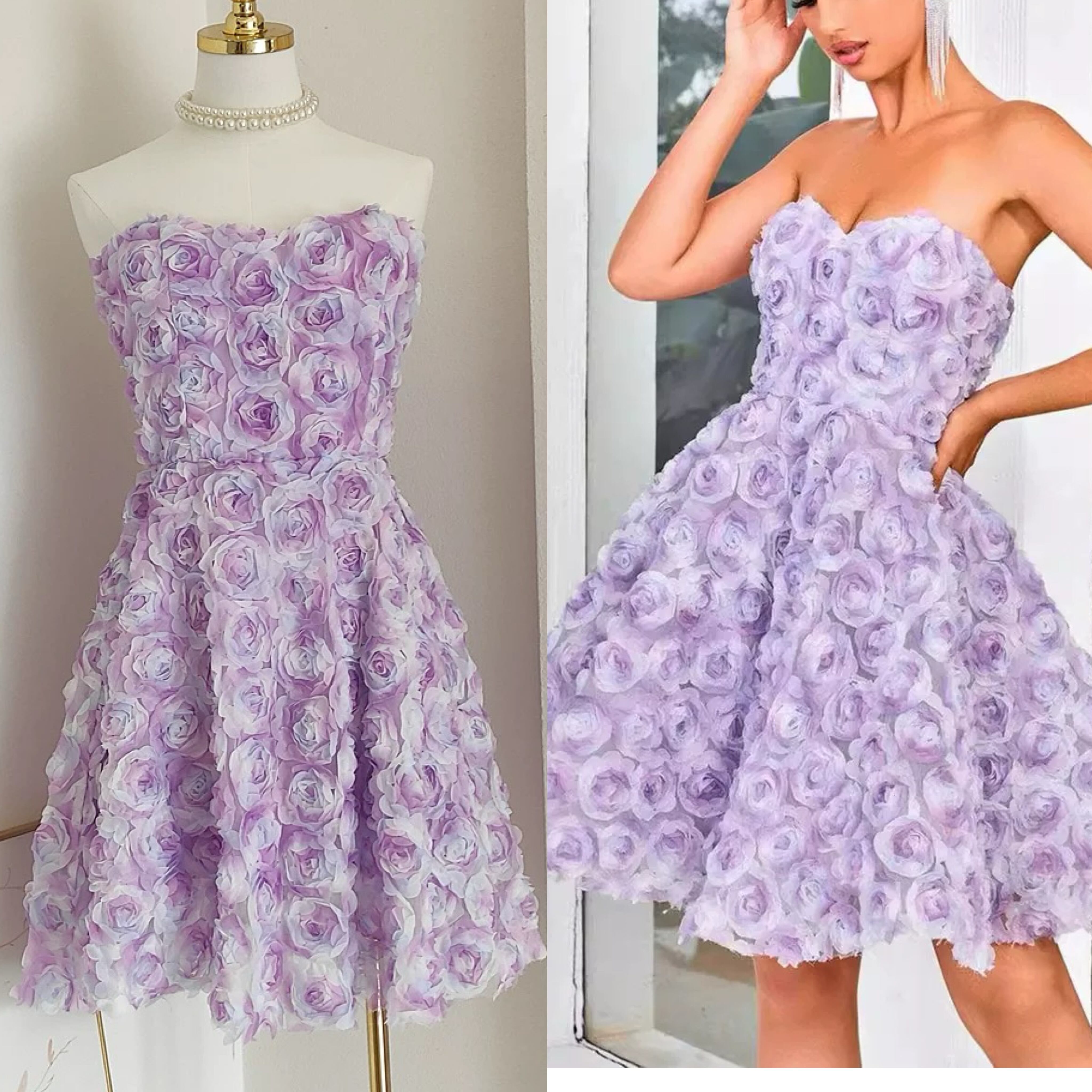 フラワー ドレス 紫 薔薇 エレガント ワンピース カメリア ベアトップ パーティー