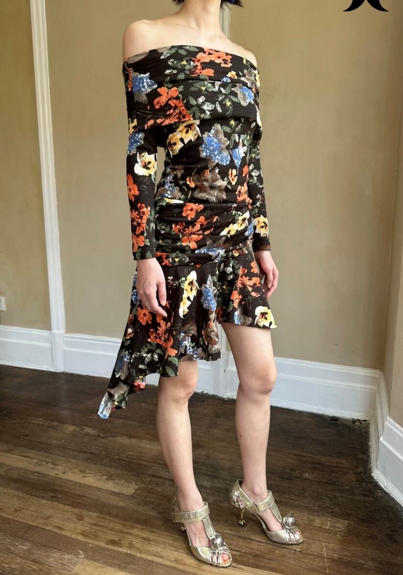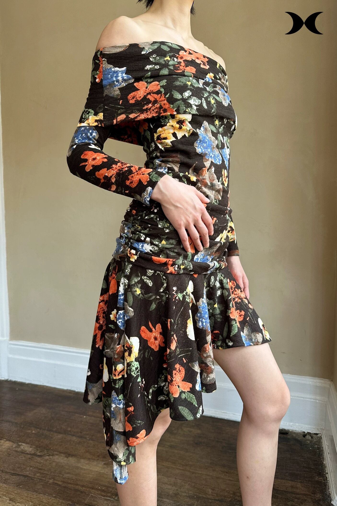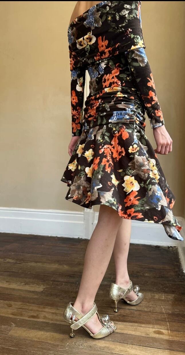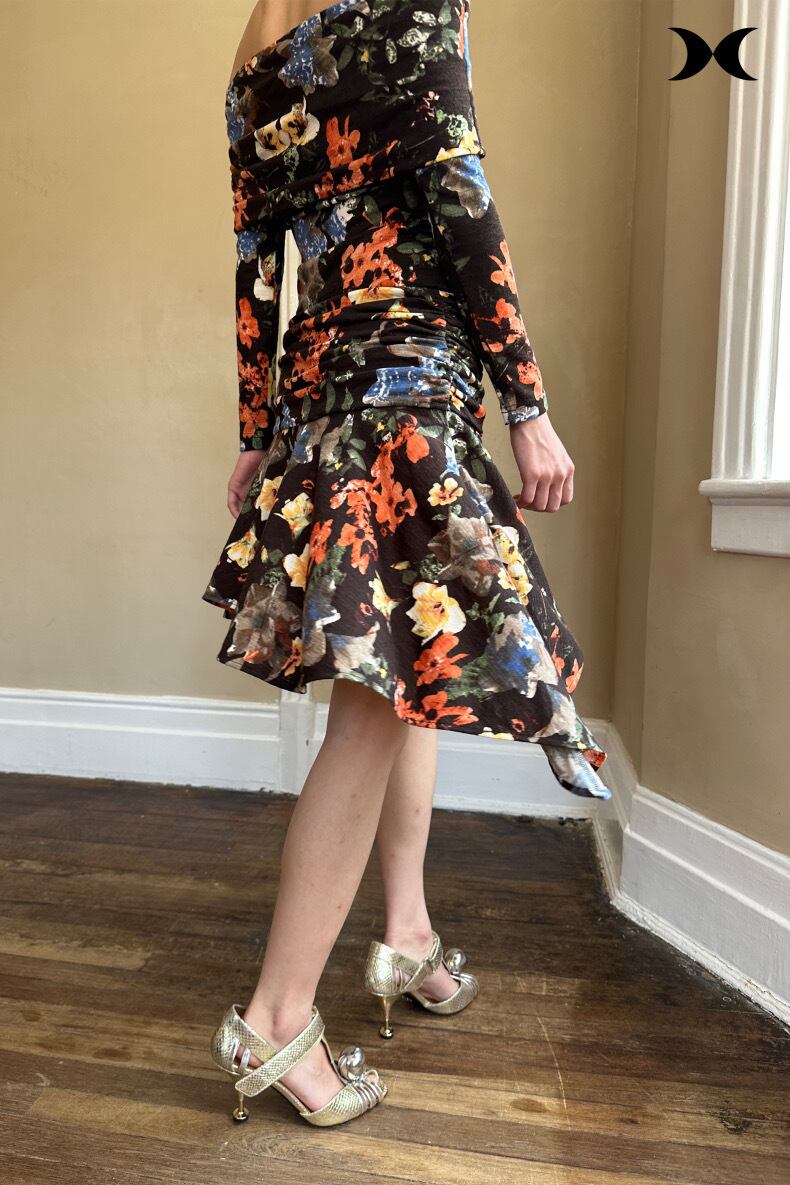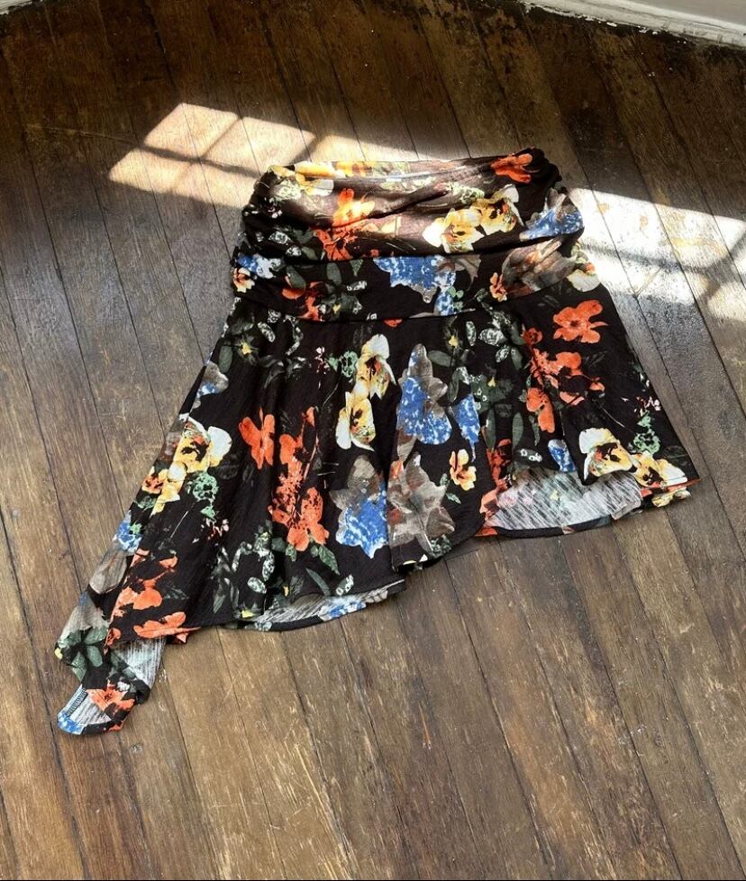 【スカート】ミニスカート アシンメトリー 黒 オレンジ ストリート ボトムス