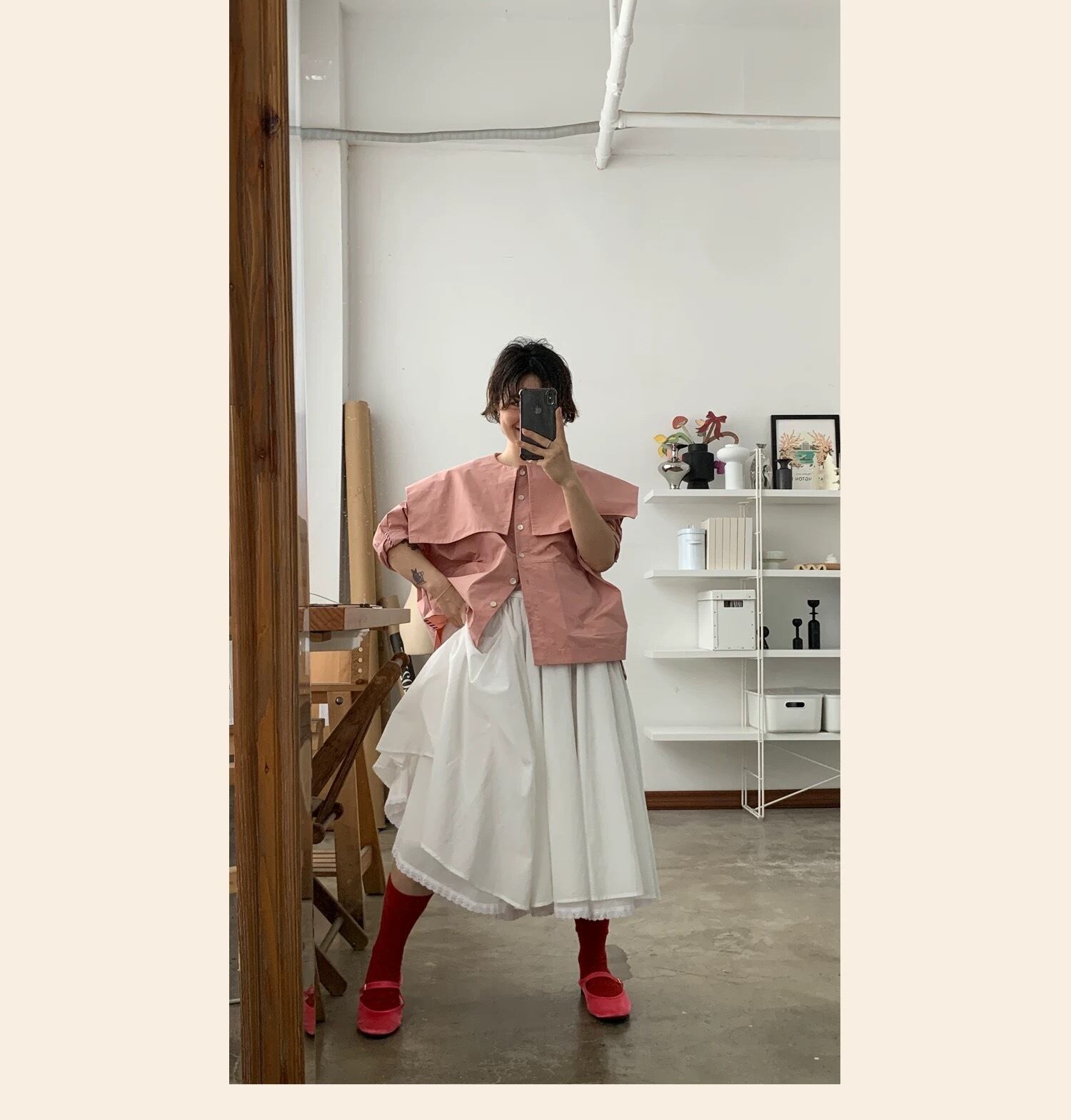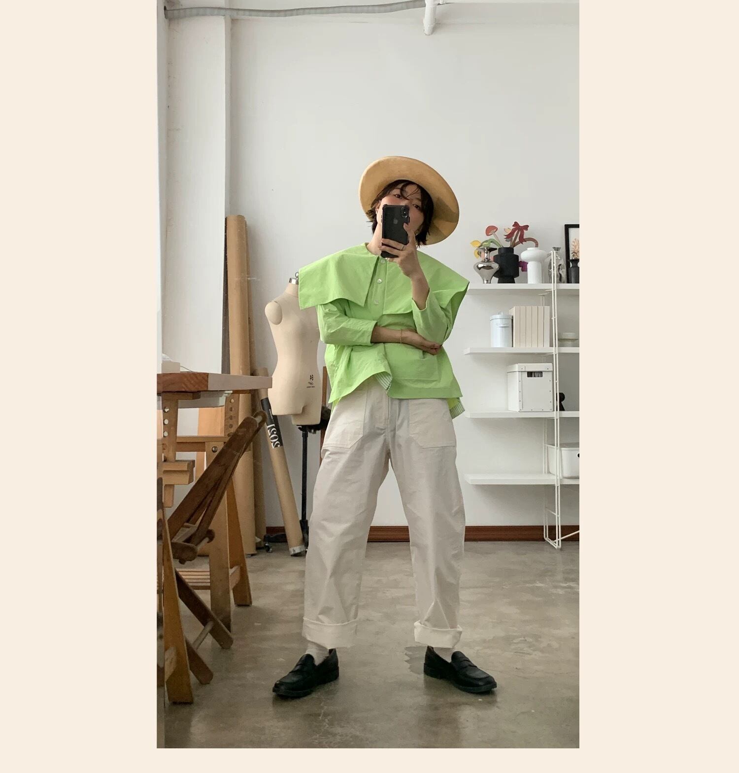 緑 デカ襟 ピンク セーラー ゆったり オーバーサイズ オレンジ シャツ カーディガン アウター ジャケット トップス シャツ